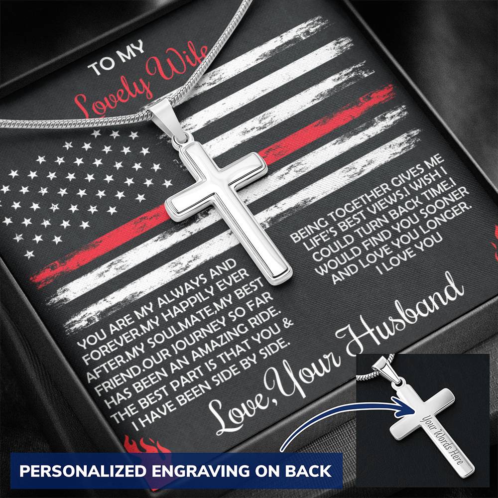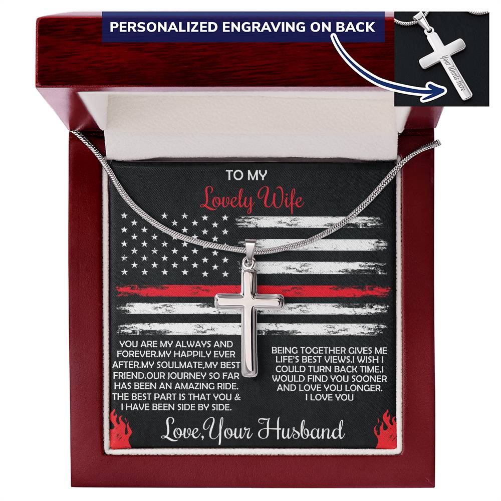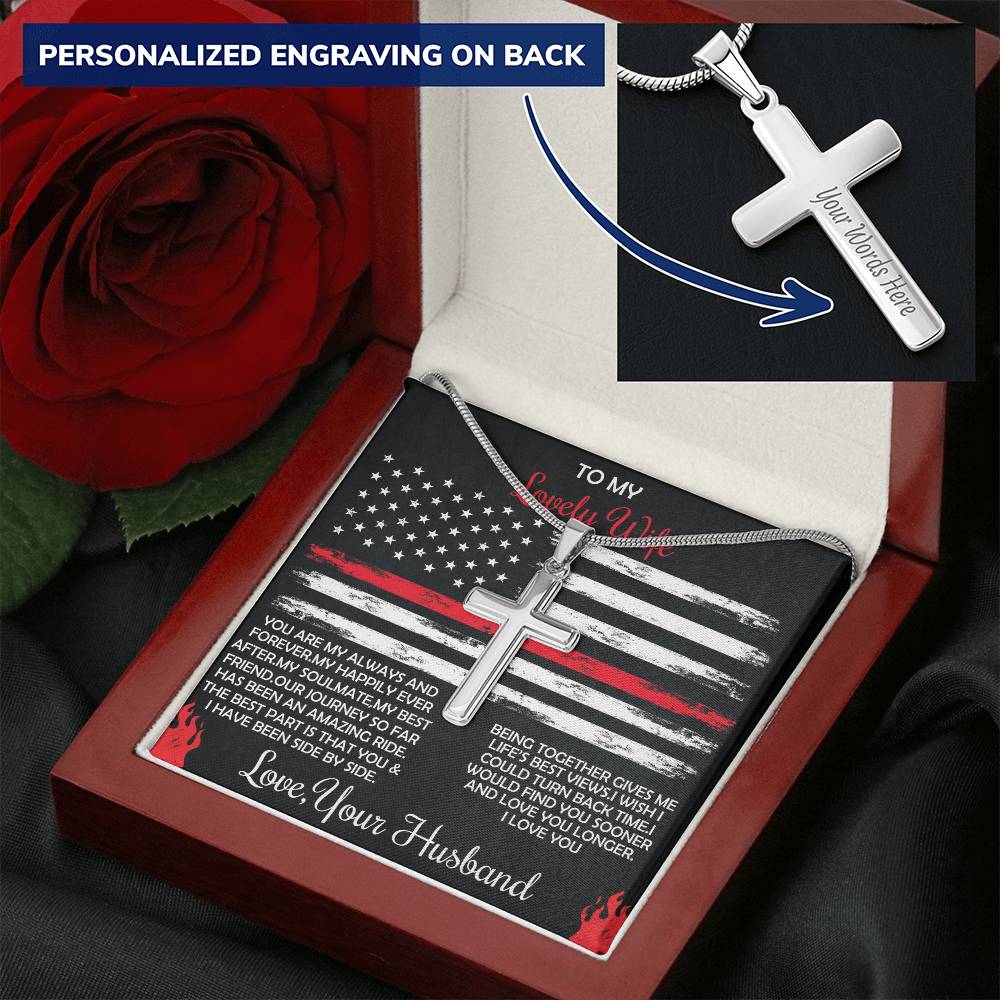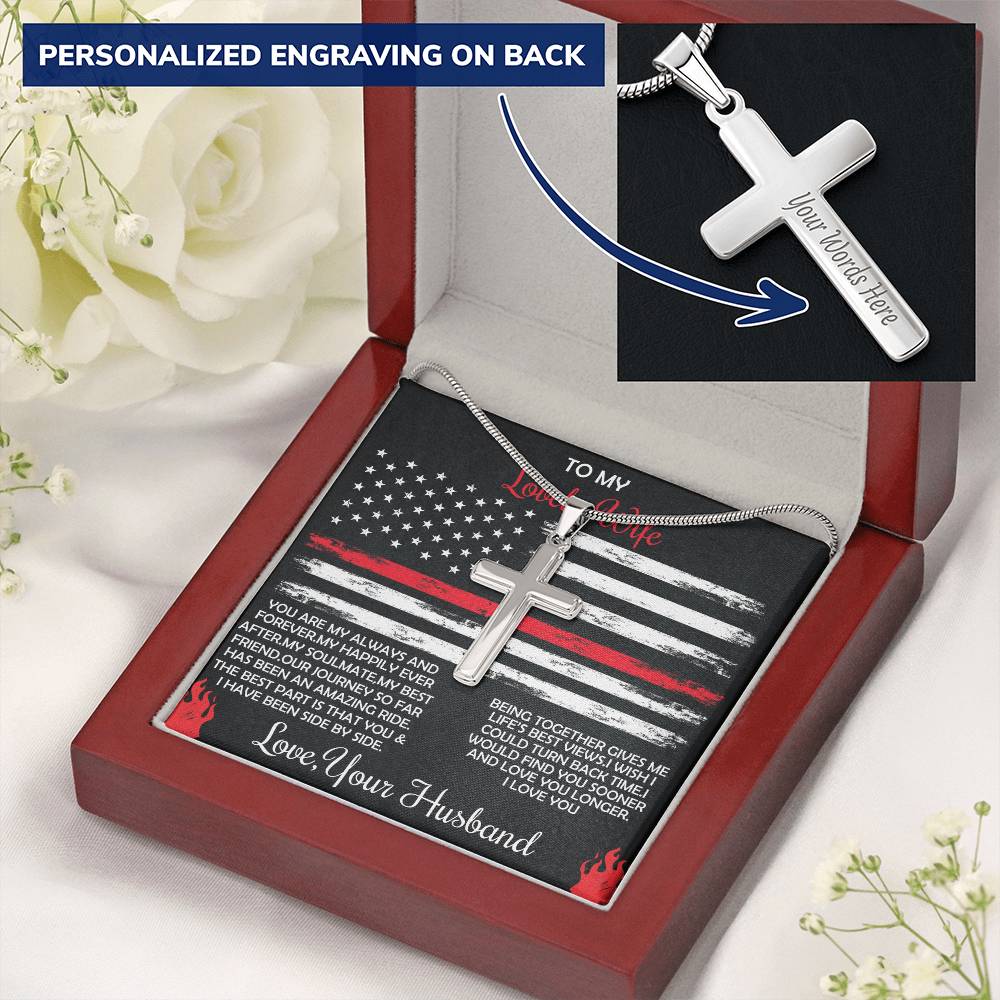 Personalized Our Journey So Far Has Been an Amazing Ride Stainless Steel Cross Necklace Engraved Perfect Anniversary Gift for Firefighter Husband