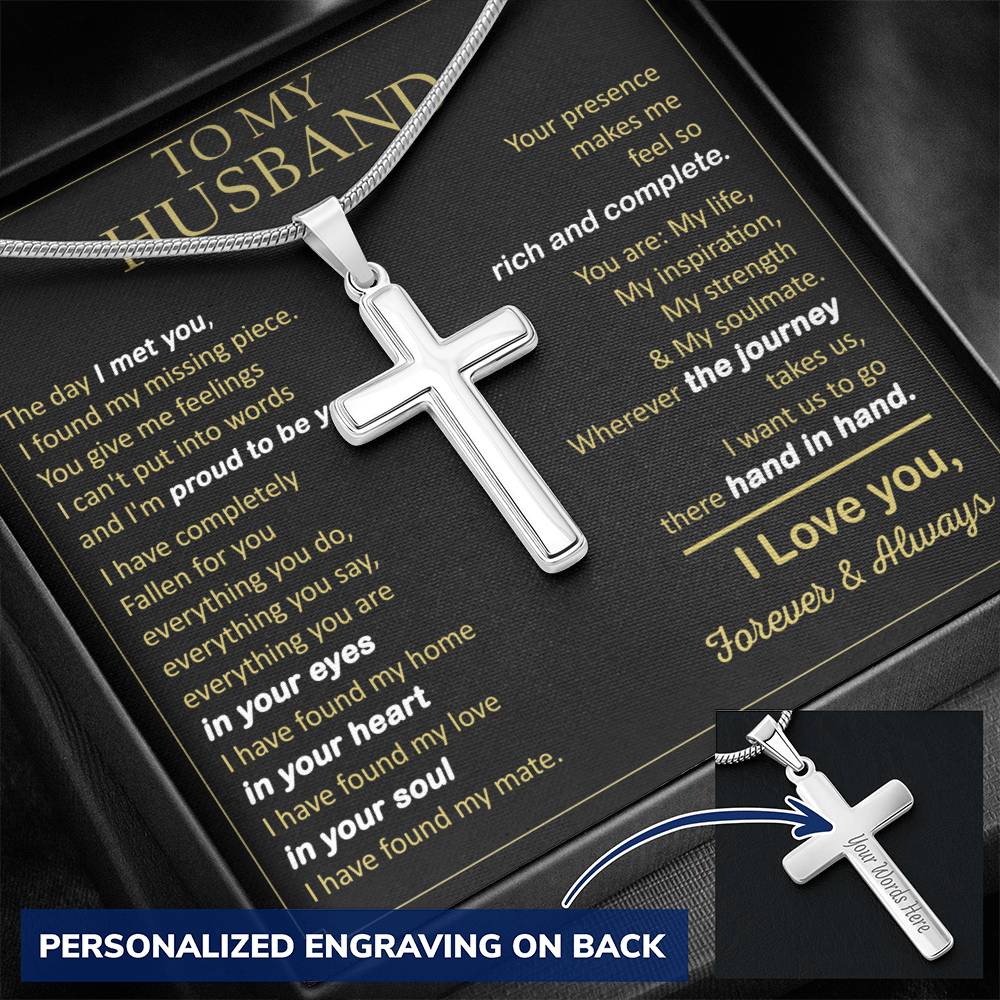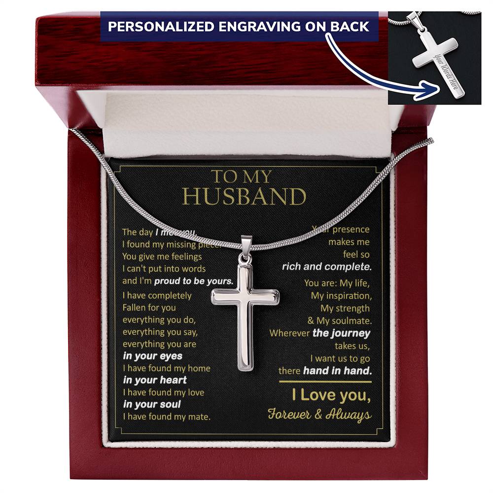 Show your beloved husband how much he means to you with this Personalized Cross Necklace for Husband. This custom engraved cross necklace makes the perfect anniversary gift or romantic present for the faithful man in your life.