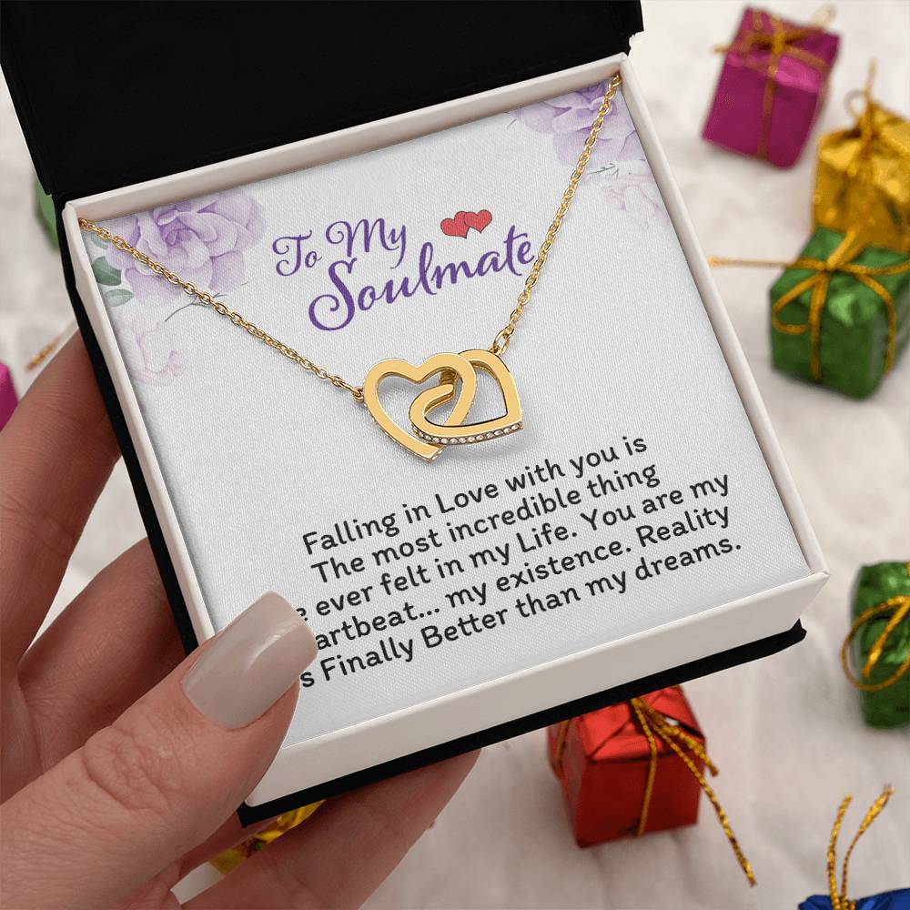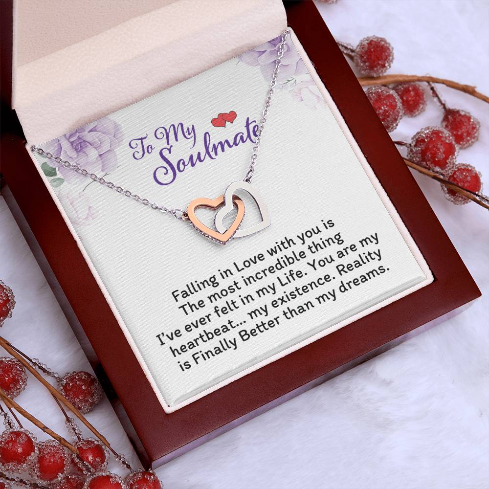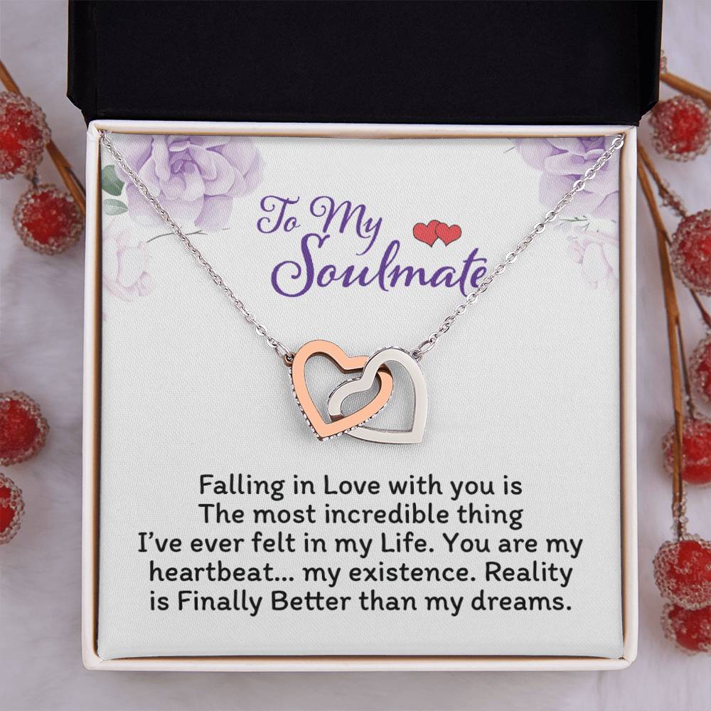 Reality Is Better Than My Dreams 18K Rose Gold Interlocking Hearts Necklace Jewelry Romantic Gift for Soulmate Girlfriend Anniversary