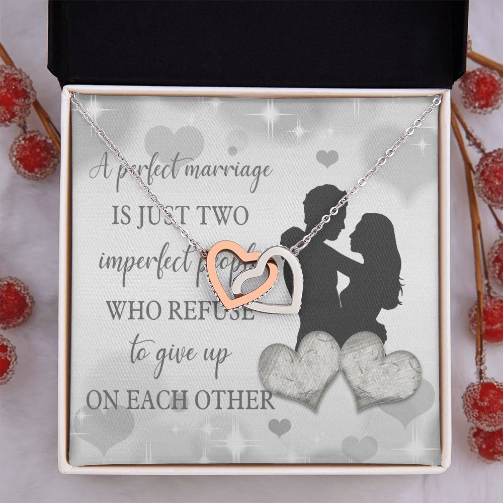 Refuse To Give Up On Each Other 18K Rose Gold Interlocking Hearts Necklace Jewelry – Special Wedding Anniversary Gift