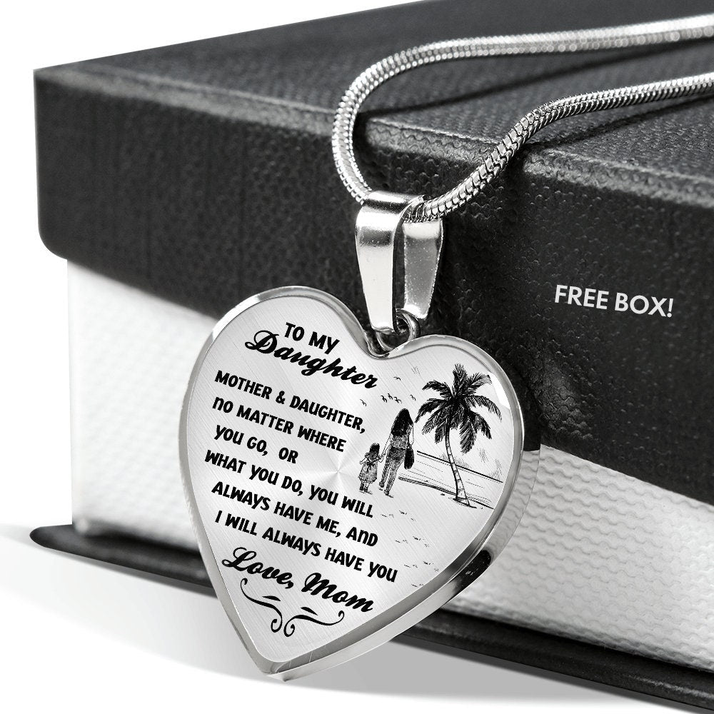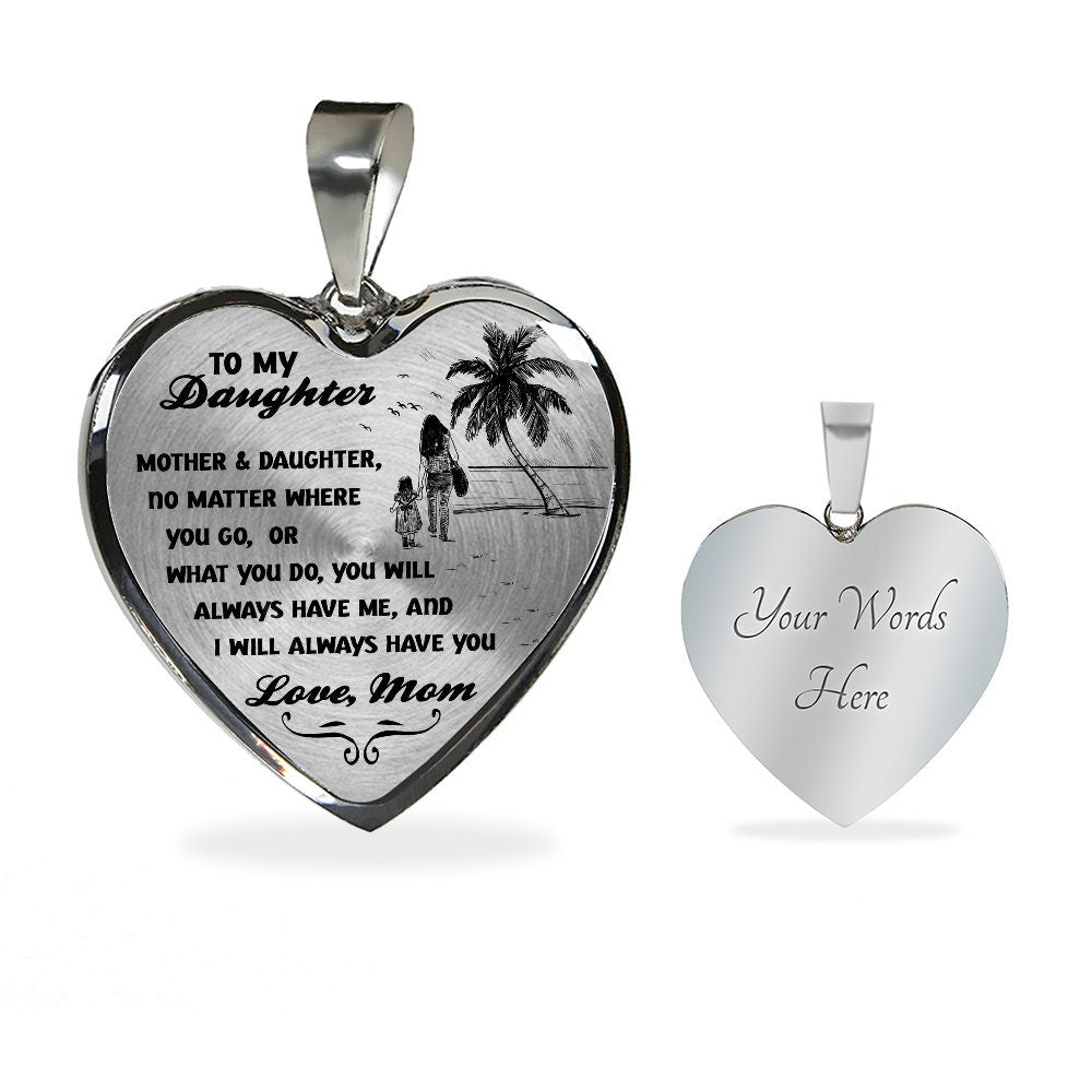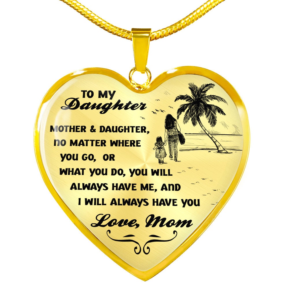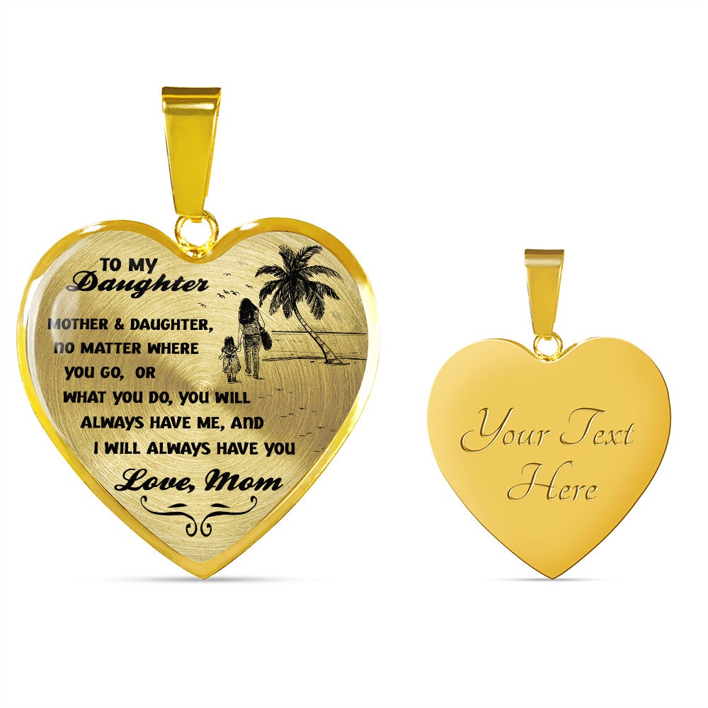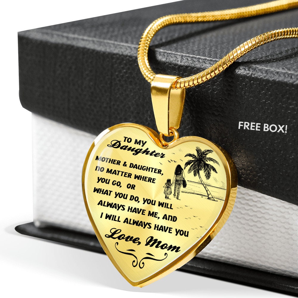 Daughter Necklace, Daughter Gift, Gift For Daughter, Mother Daughter Gift, Daughter Birthday, Birthday Gift, Gift From Mom, Mother Daughter, Daughter From Mom, Gift From Mum. To My Daughter Jewelry, Personalized Gift For Daughter From Mom, Heart Necklace, Daughter Gift From Mom, Valentines Day Gift To Daughter, daughter necklace, mother daughter gift, daughter gift mom, to my daughter, valentines day gift, to daughter personalized gift, daughters from momPurchase This Best-seller and We Guarantee It Will Exceed Your Highest Expectations! ? Our patent-pending jewelry is made of high quality surgical steel with a shatterproof liquid glass coating and 18k gold finish option. ? Our jewelry is personalized in the U.S.A by awesome working moms just like yours! We hire and train working mothers and pay a living wage. We are proud to support strong communities and keep jobs in America! This Jewelry Item Is the Perfect Keepsake! Whether for Yourself or a Loved One. ? If the custom engraving option is available, engrave onto the back of the pendant your loved one's name, your wedding date, an anniversary, or anything else you want to remember and keep you close to her heart. Each personalized piece offers exceptional craftsmanship that is fit to be an instant classic in your family. We Offer a 100% Happiness Guarantee ? If you’re not 100% satisfied with your purchase for any reason, please contact us and we will make it right. Your satisfaction is our ultimate goal. Product Dimensions ? Luxury Necklace: 18-22" (45-56cm) adjustable ? Heart Pendant: 24mm x 24mm