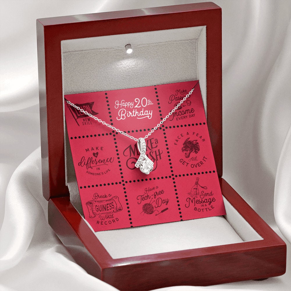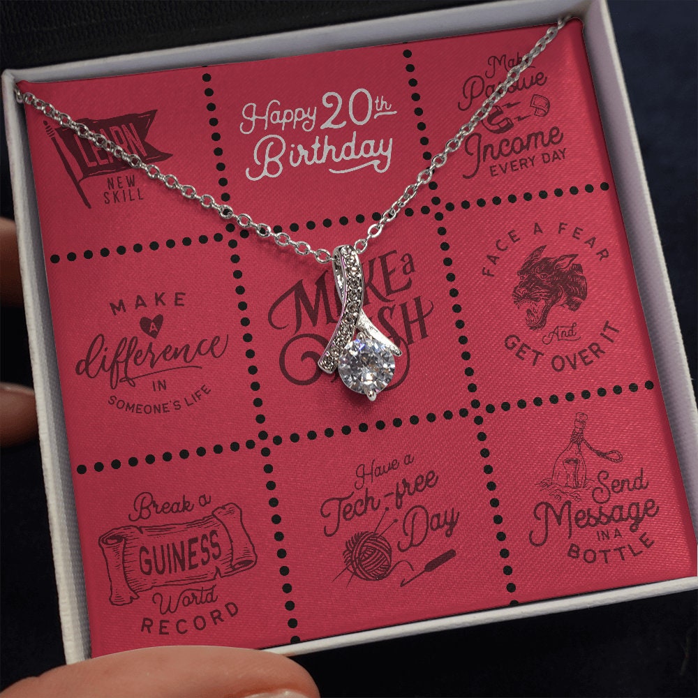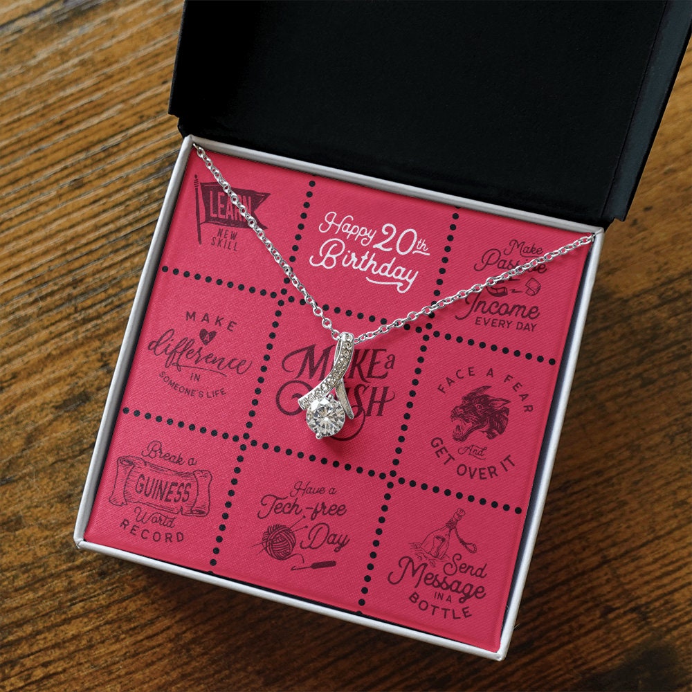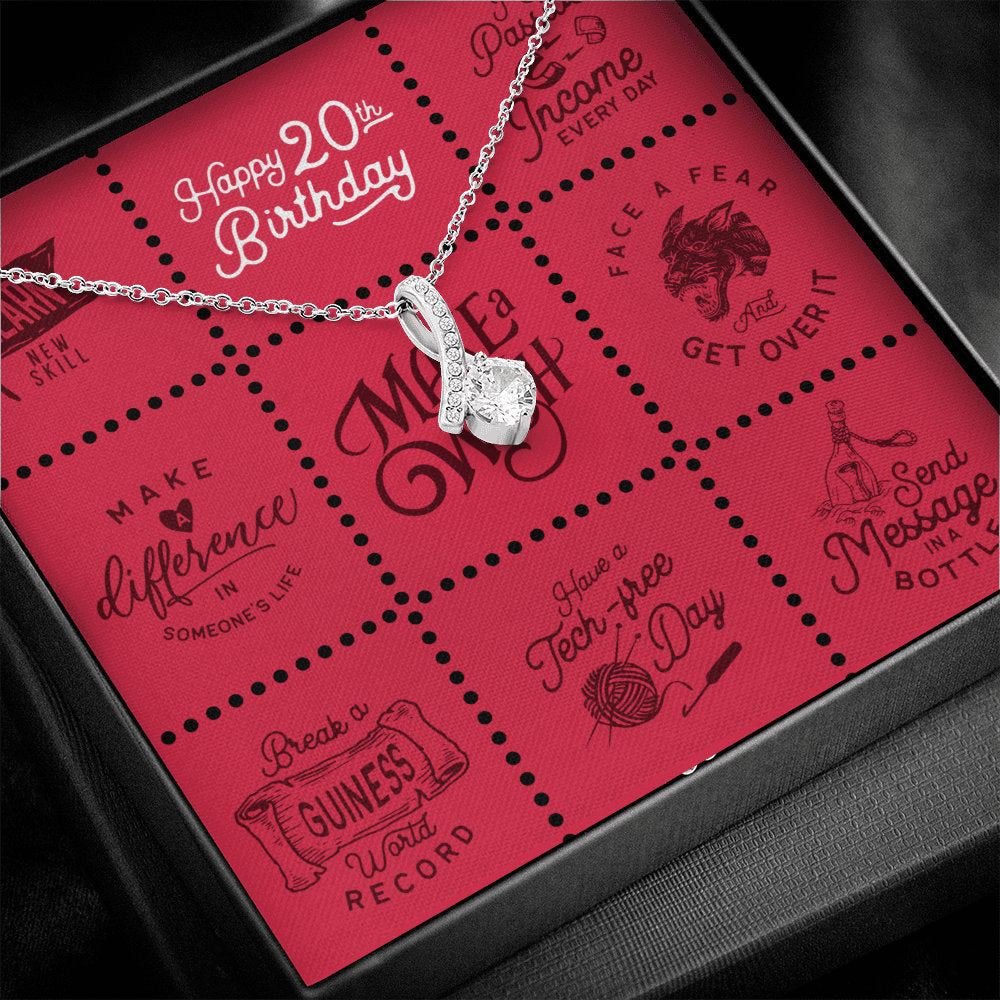 This beautiful sparkly pendant is truly is an alluring gift for your birthday girl. The ribbon design is embellished with dainty cubic zirconia, leading your eye down to the 7mm round cut Cubic Zirconia. Crafted with 14k White Gold over Stainless Steel, this necklace dresses up any occasion. The adjustable oblate cable chain allows the necklace to be worn at 18" to 22" in length. Product Dimensions: Height: 0.8" (20mm) x Width: 0.4" (10mm) 7mm cubic zirconia 18"-22" adjustable oblate cable chain with lobster clasp.