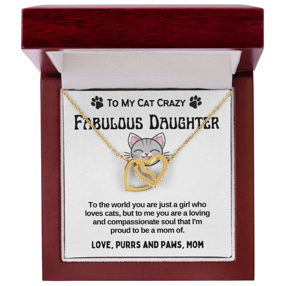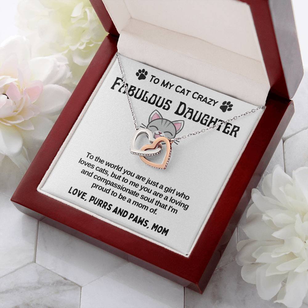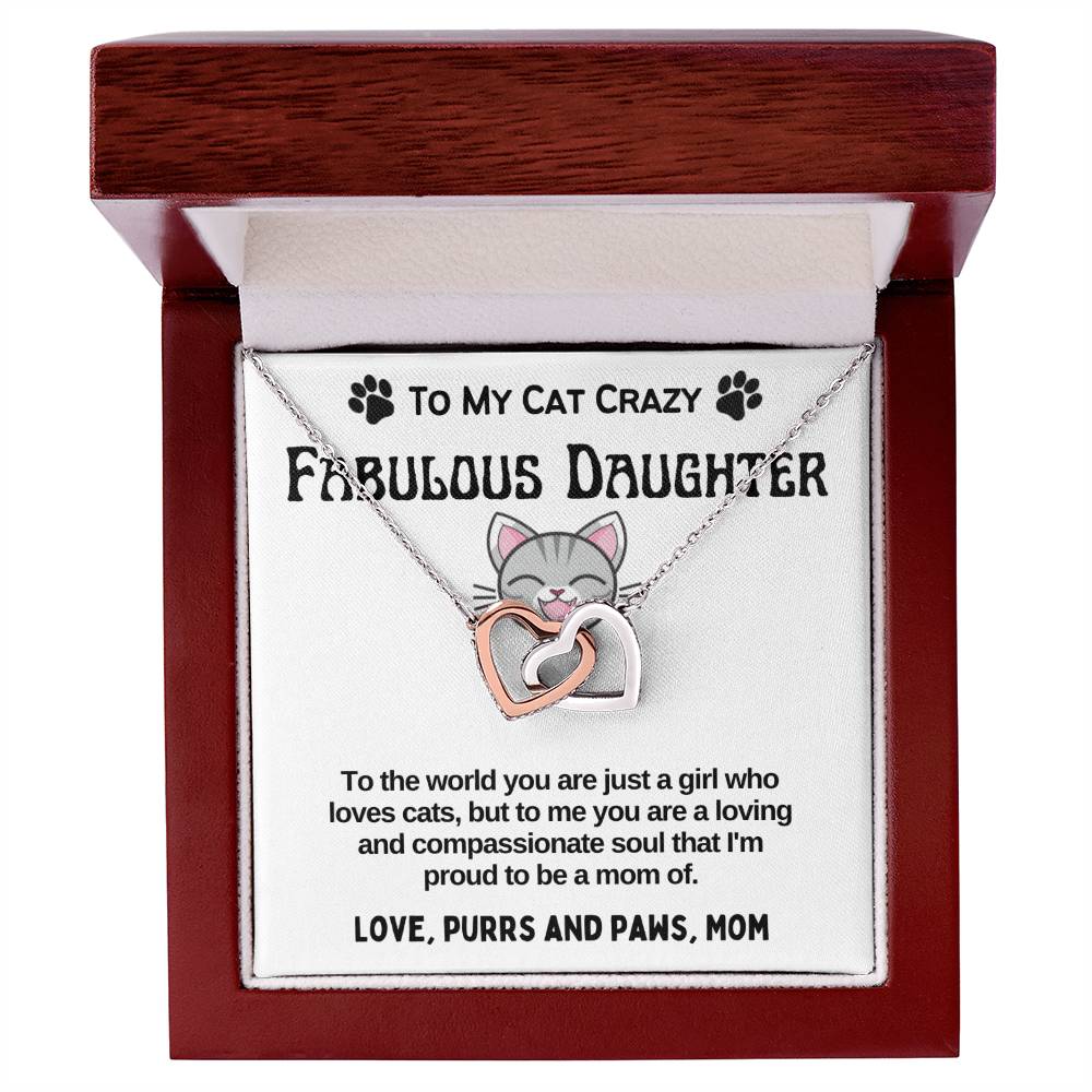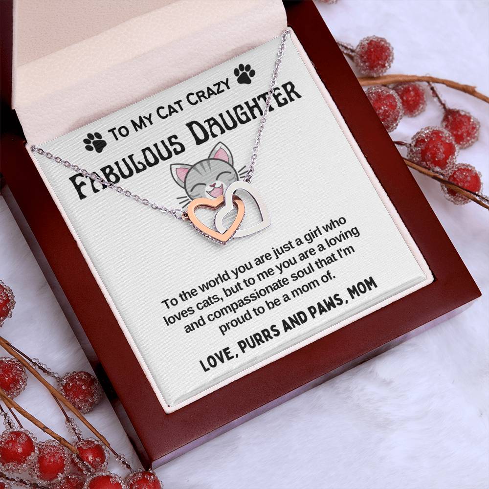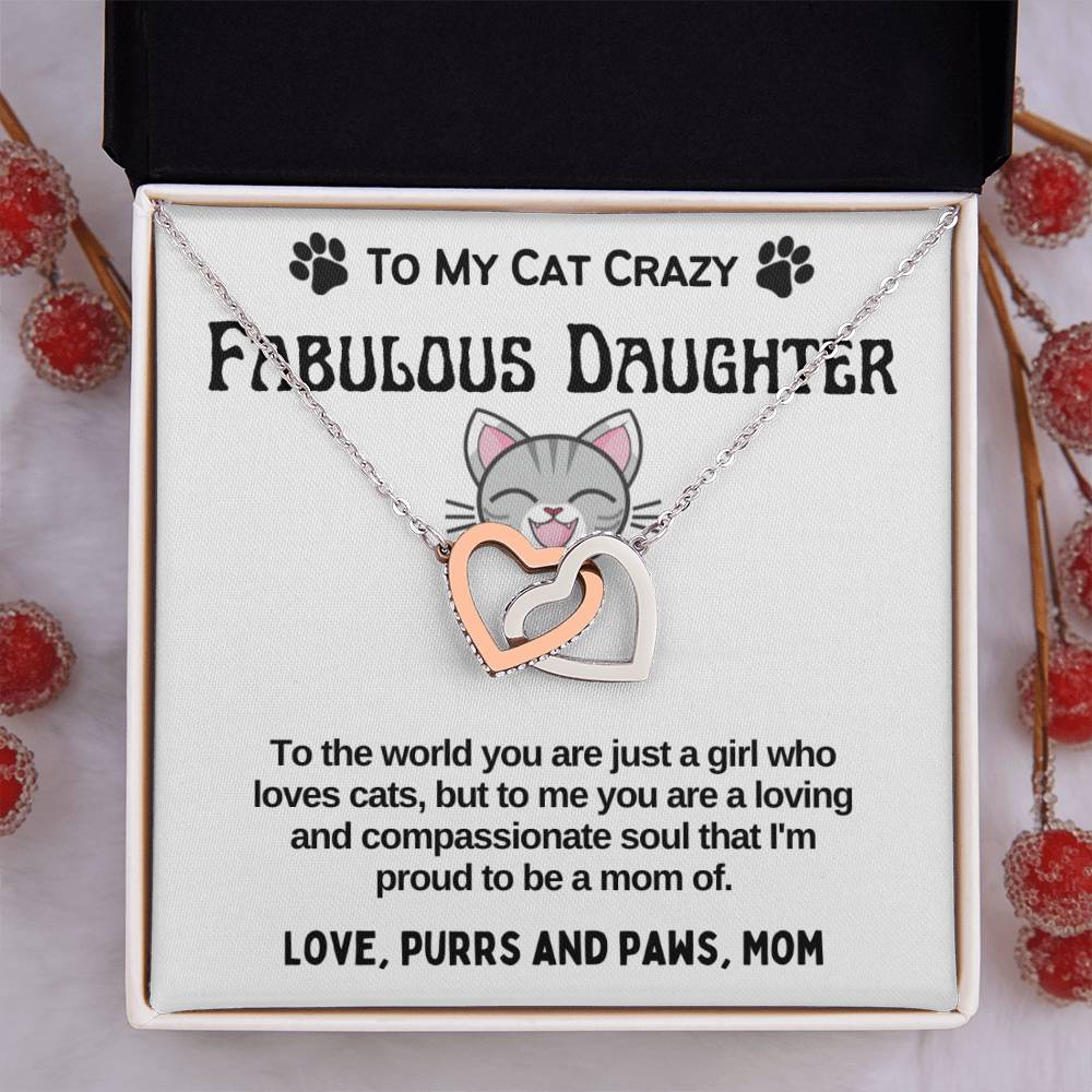 A Cat Crazy Fabulous Daughter 18K Rose Gold Interlocking Hearts Necklace Jewelry Unique Gift from Mom