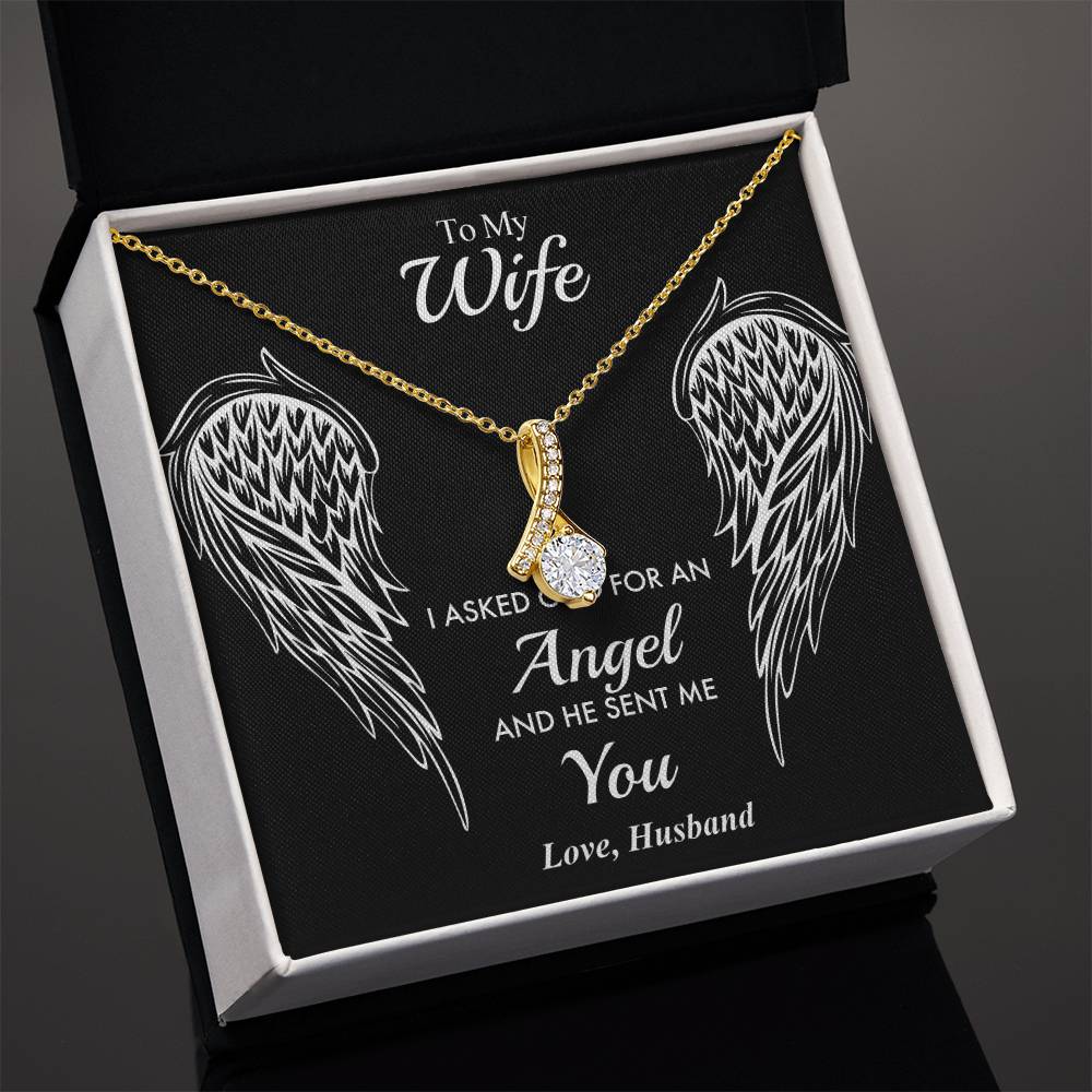 Asked God For Angel Wife 18K Yellow Gold Finish Alluring Beauty Necklace Jewelry Perfect Faith Gift for Wife Love Occasion