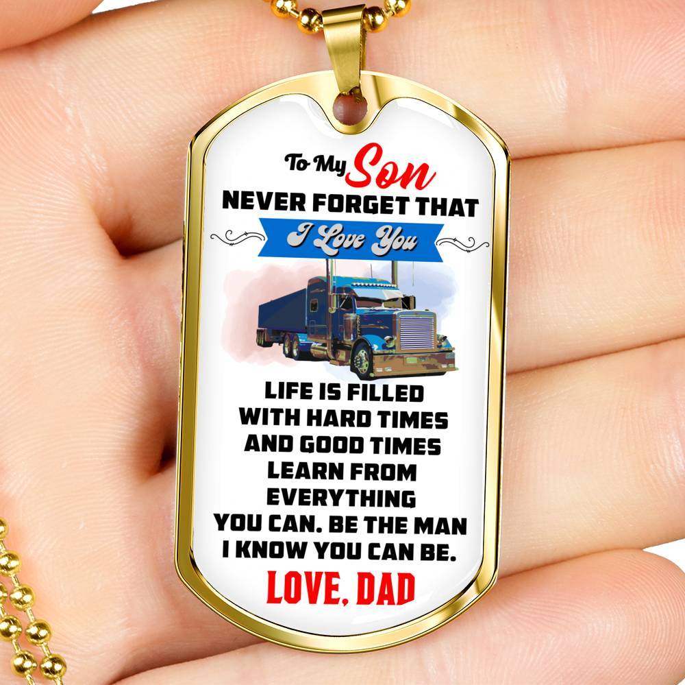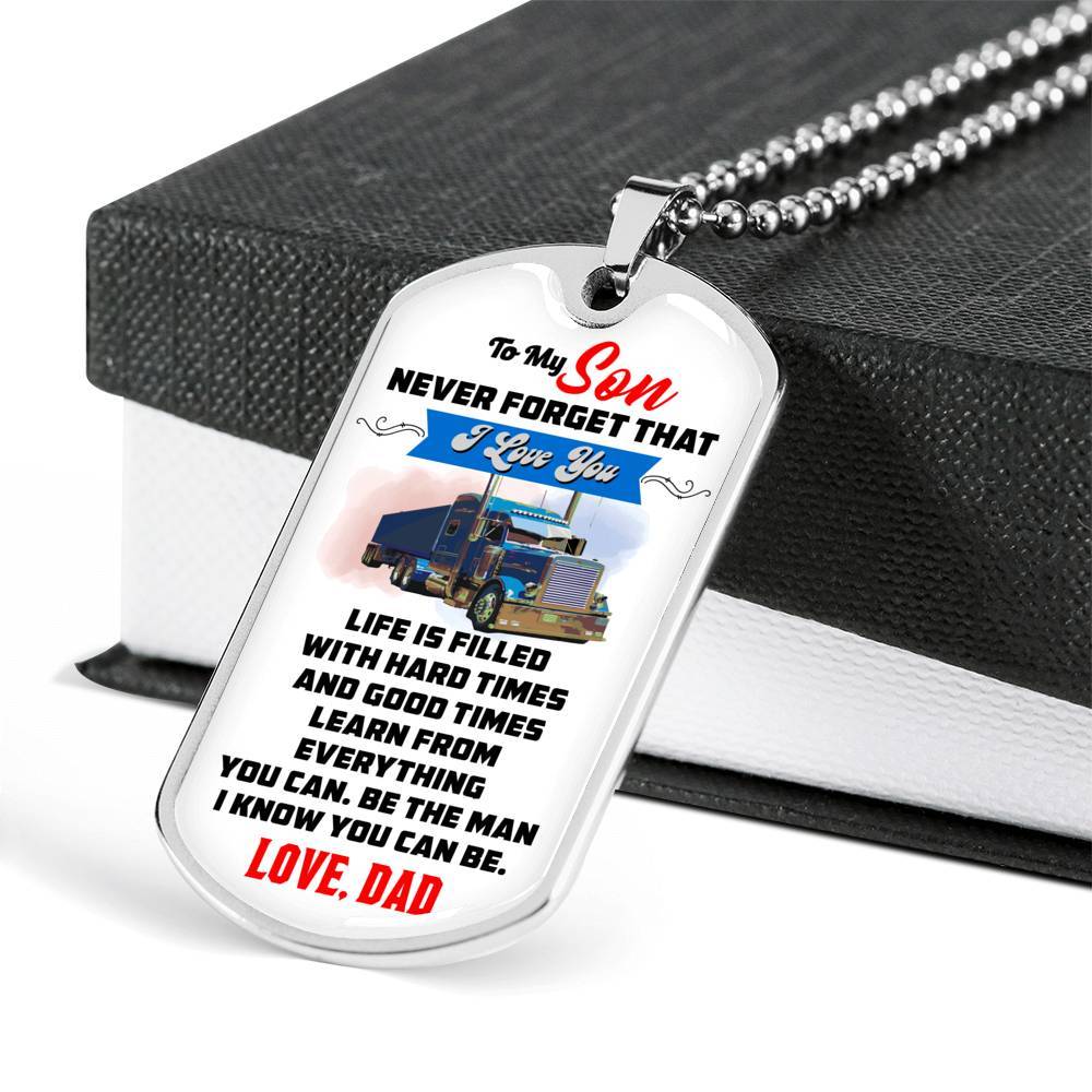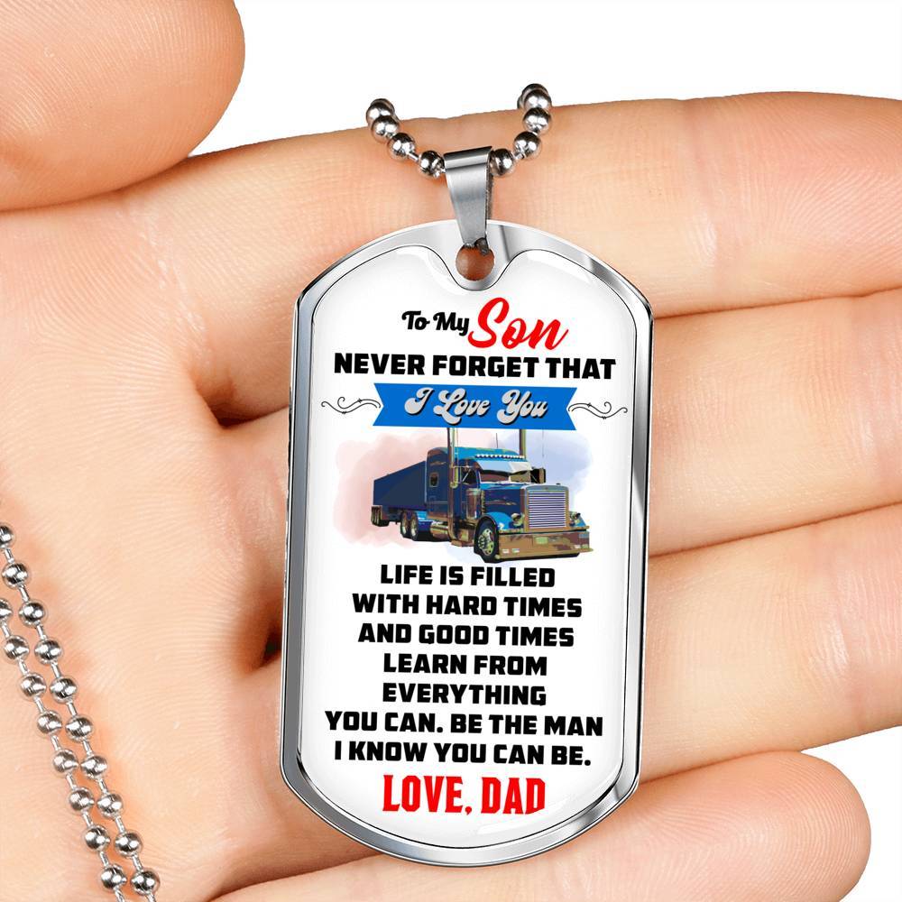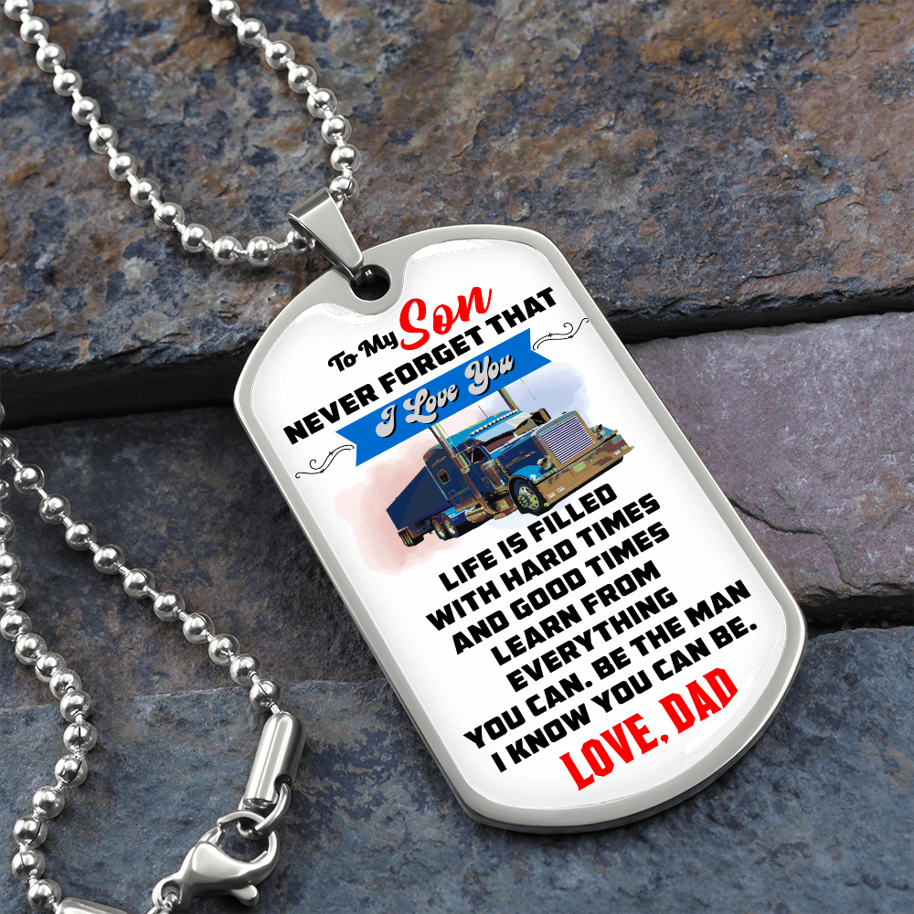 TRUCKER'S SON - PREMIUM DOG TAG - Gift For Son From Dad, Son Father Necklace, Son Gift From Dad, To My Son, Sons Birthday, Unique, Grown Up Son