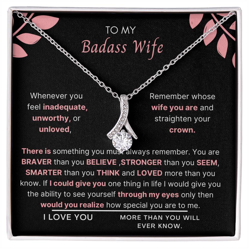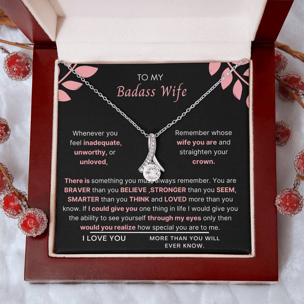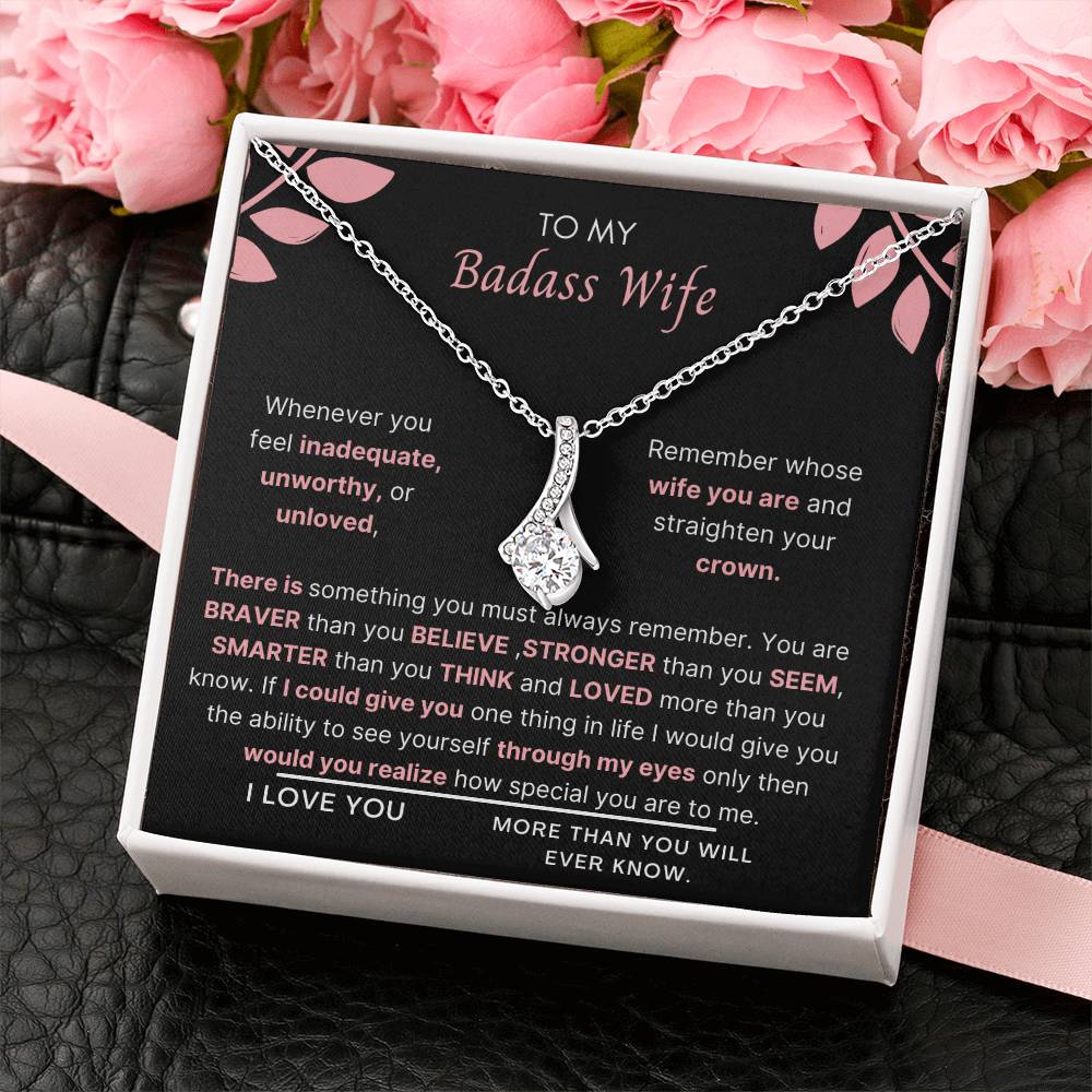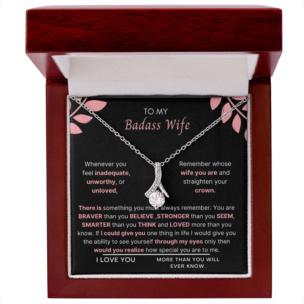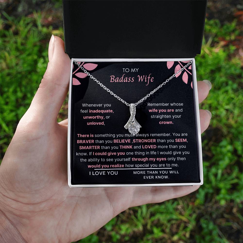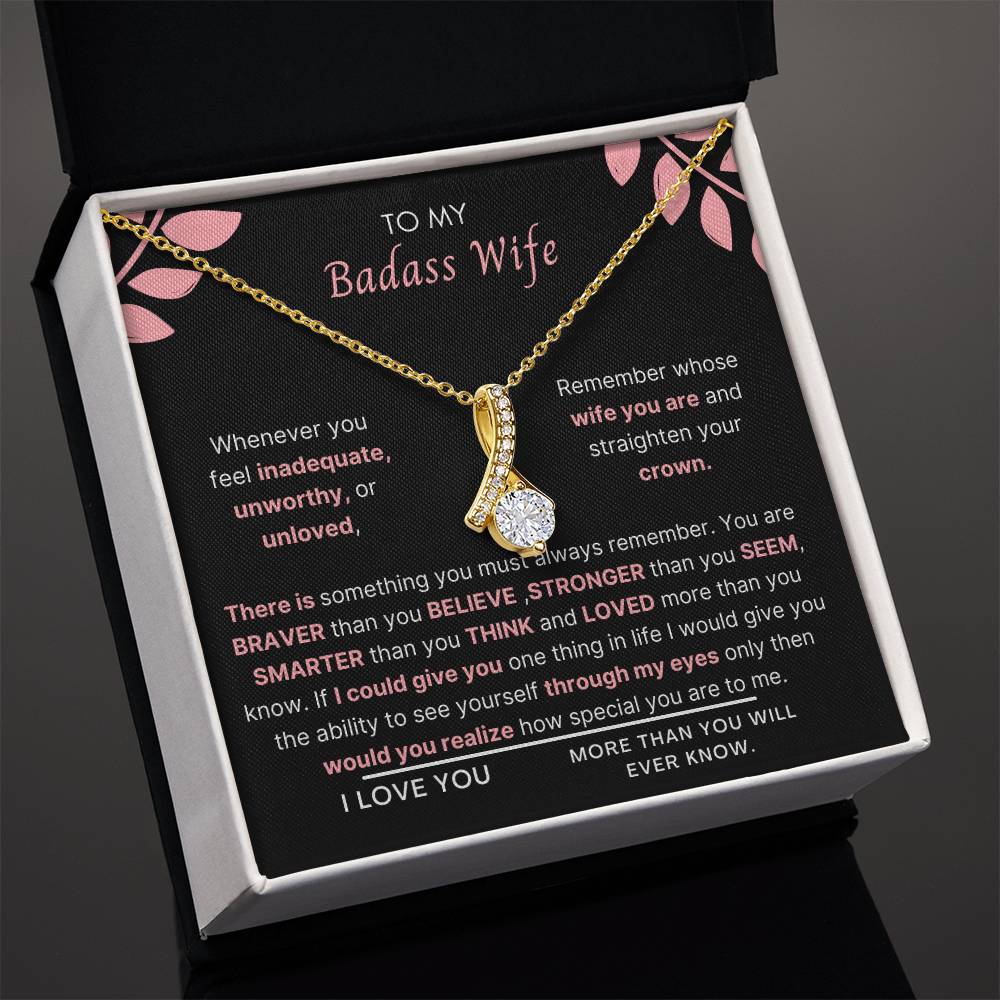 Badass Wife Crown Bravery 18K Yellow Gold Finish Alluring Beauty Necklace Jewelry Empowering Gift for Wife Anniversary