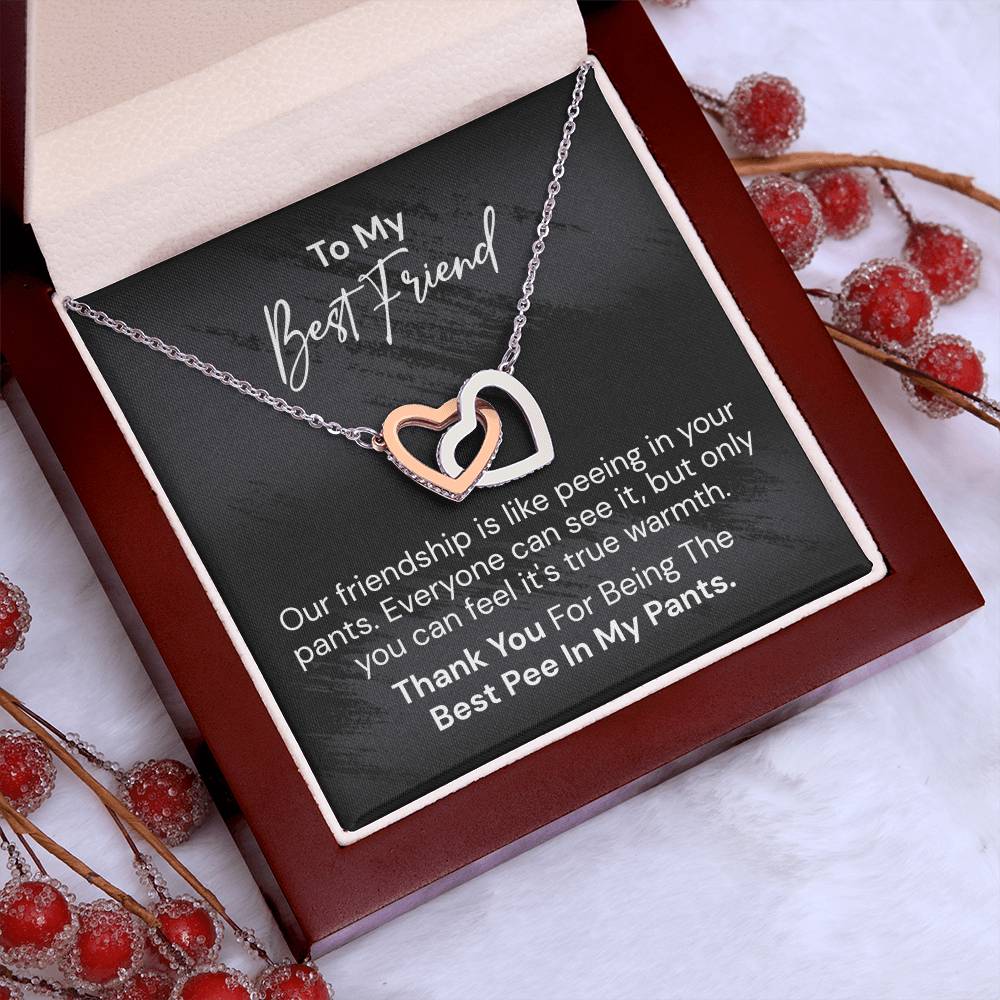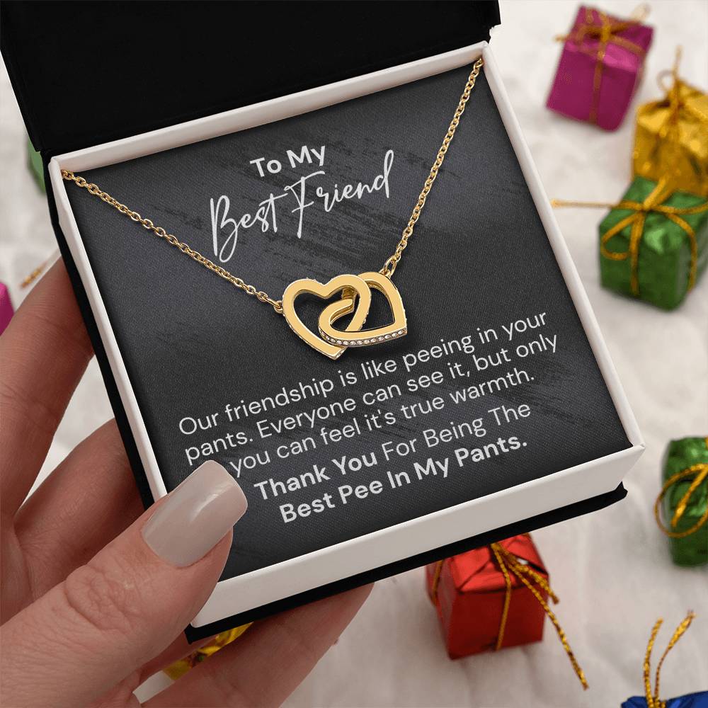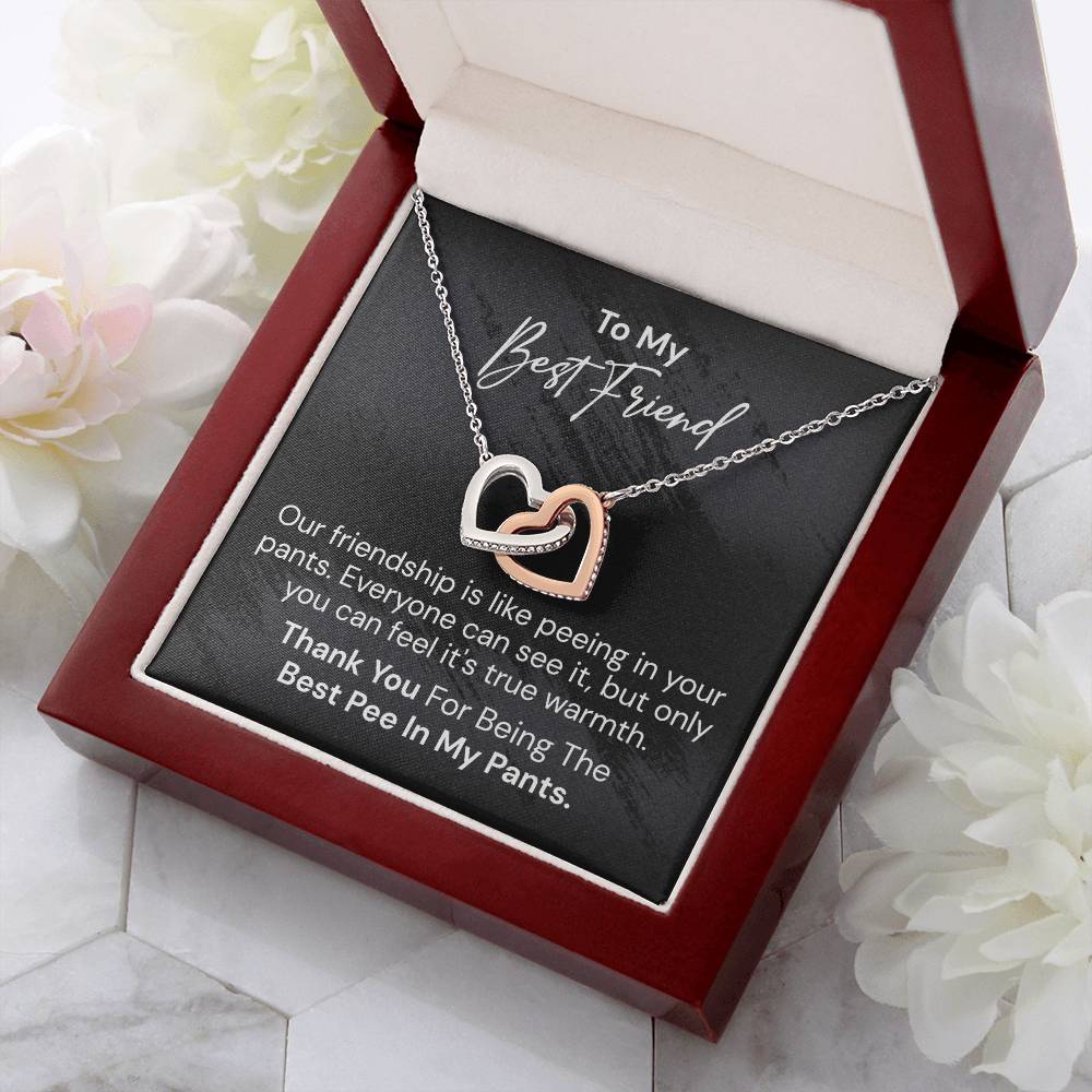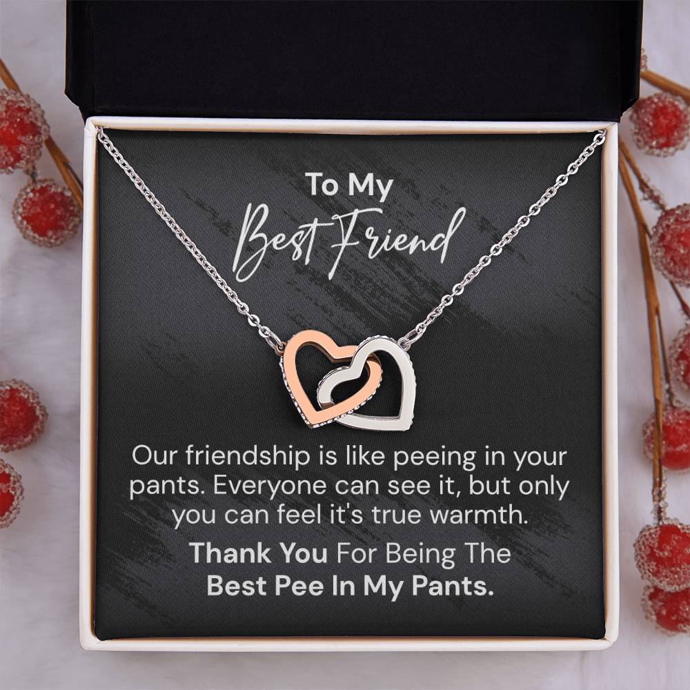 Being The Best Pee In My Pants 18K Rose Gold Interlocking Hearts Necklace Jewelry – Hilarious Gift for Best Friend