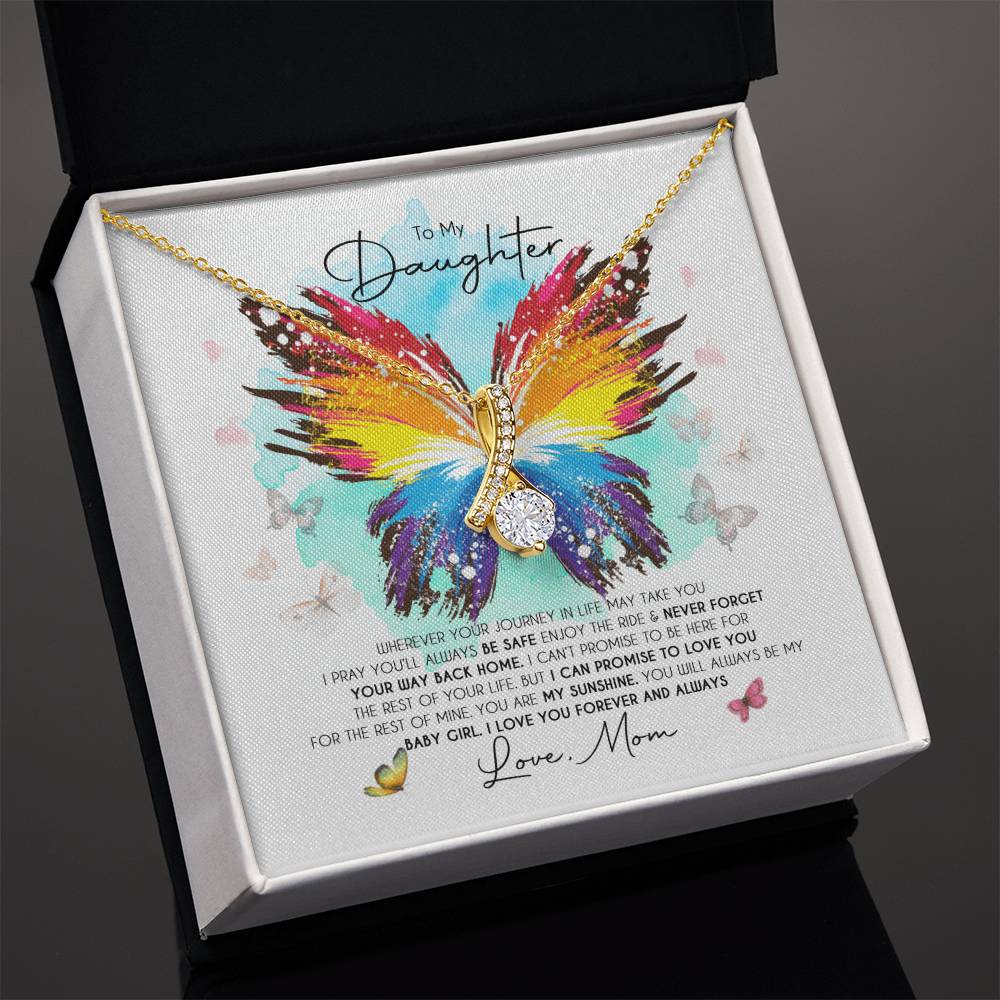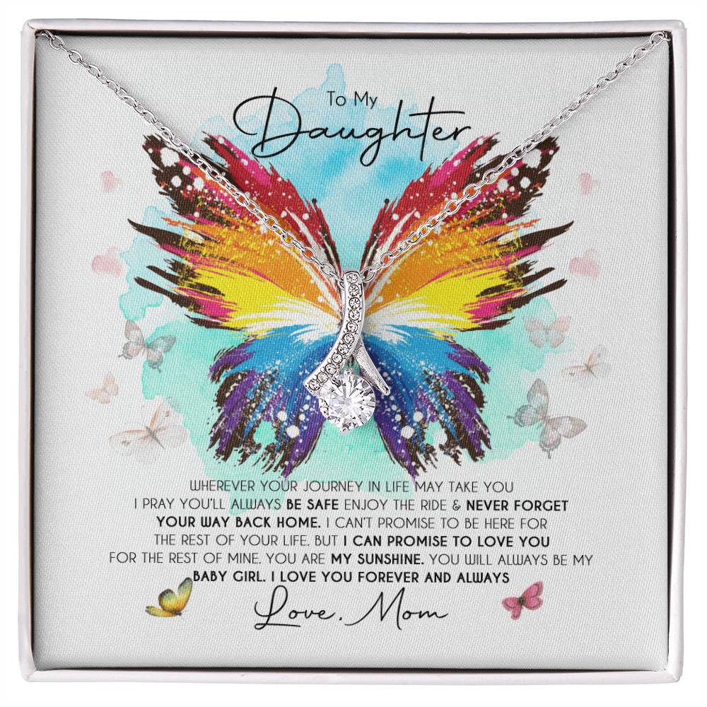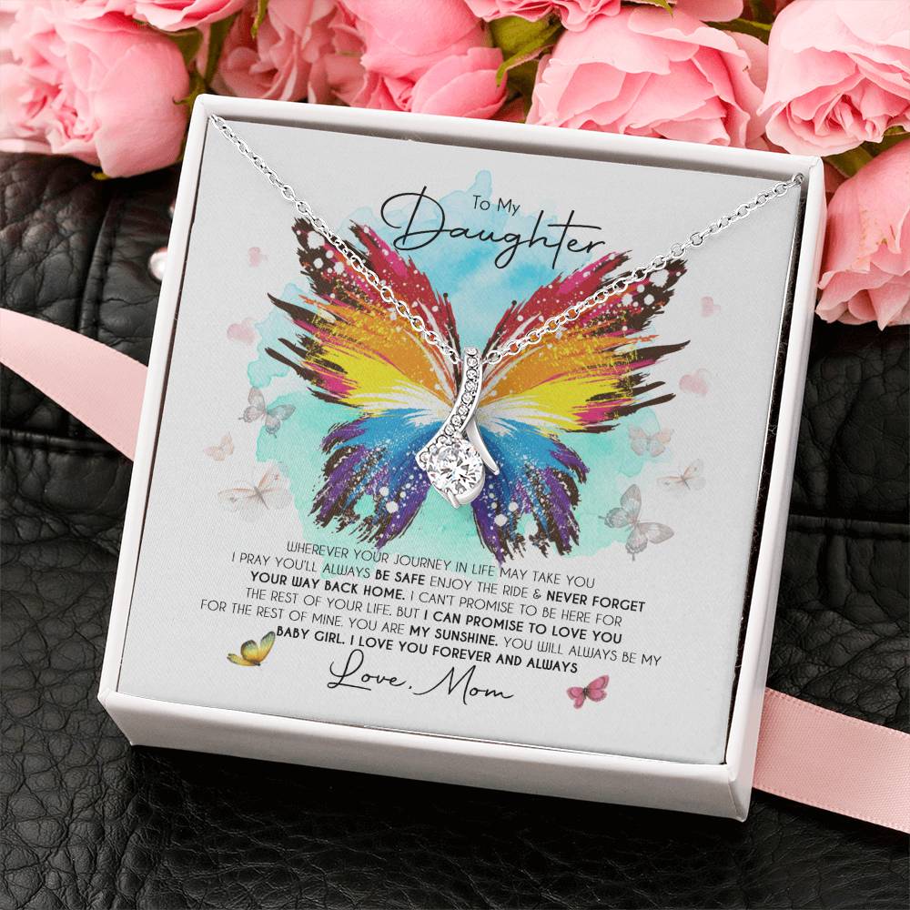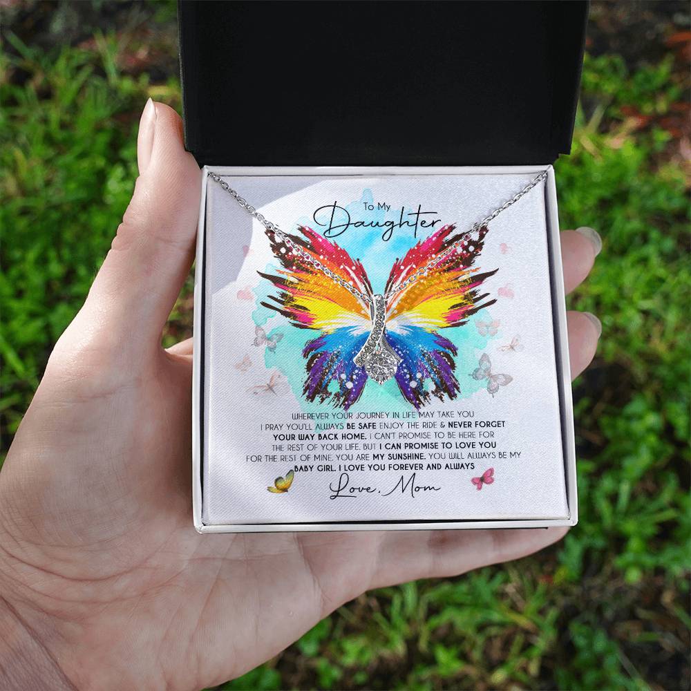 Butterfly Homecoming Love Mom 14K White Gold Finish Alluring Beauty Necklace Jewelry Bright Gift for Baby Girl