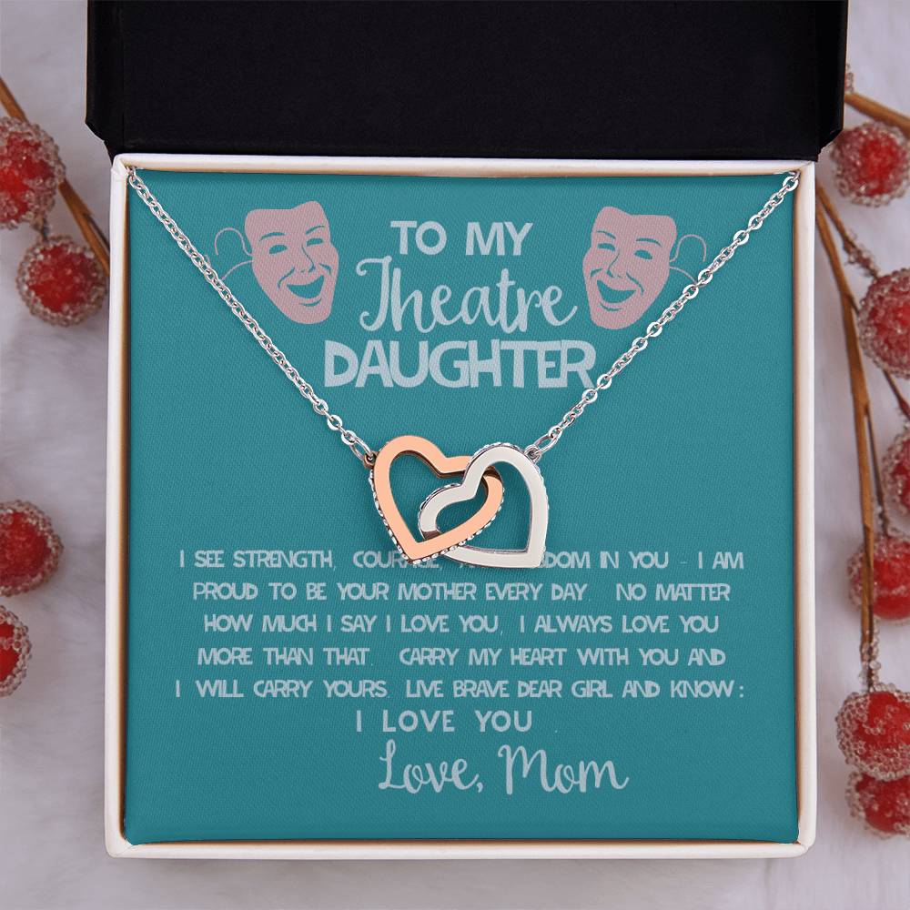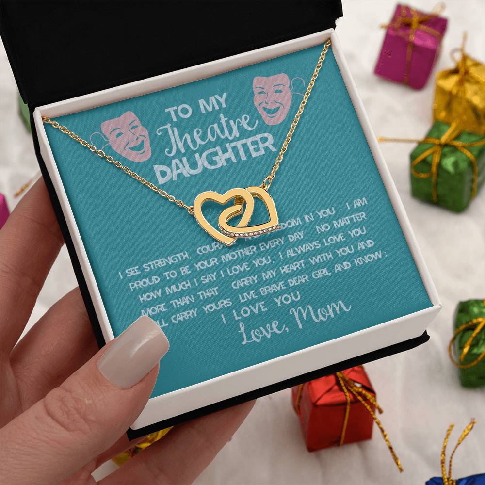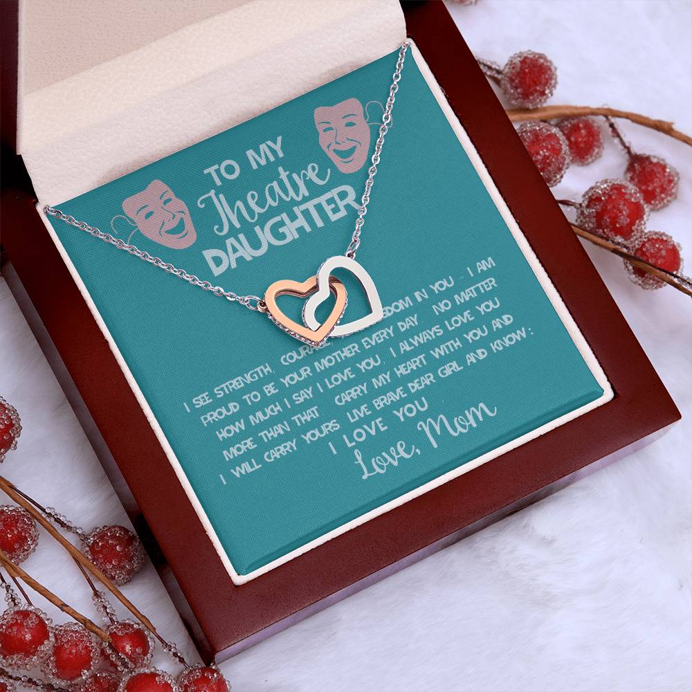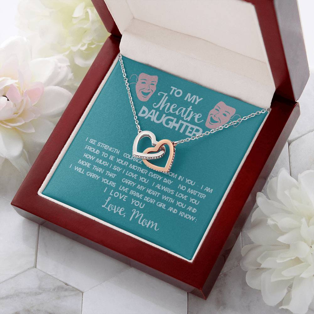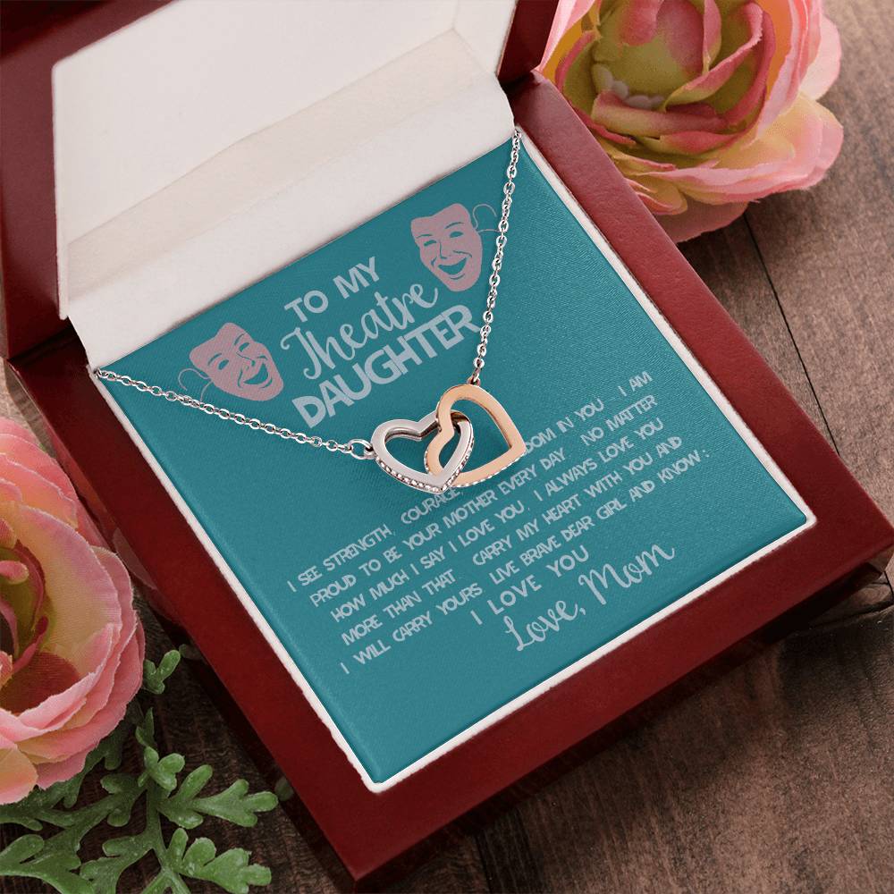 Carry My Heart With You Brave Daughter 18K Rose Gold Interlocking Hearts Necklace Jewelry Special Birthday Gift for Theatre Daughter