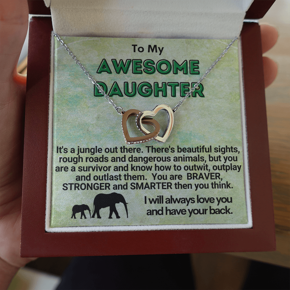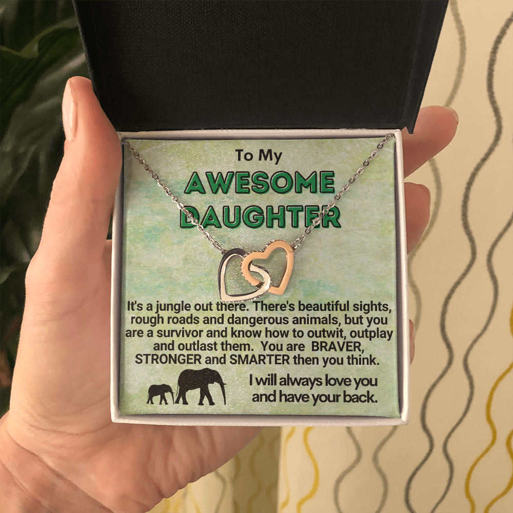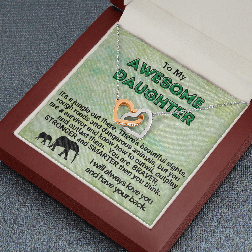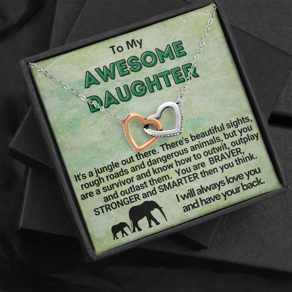 Awesome Daughter Linked Hearts Necklace Gift from Mom or Dad