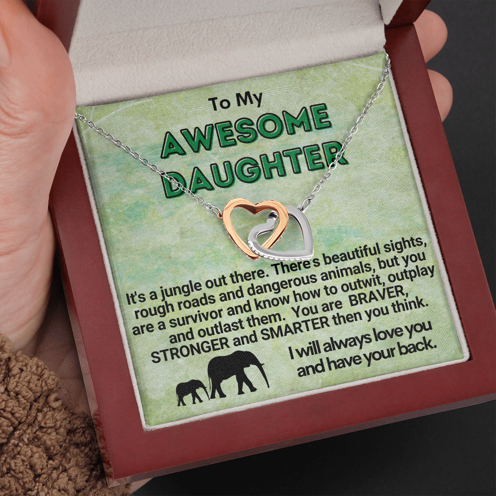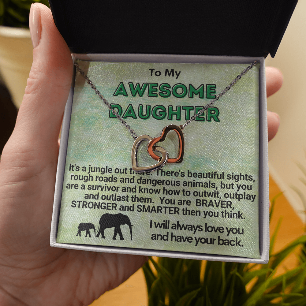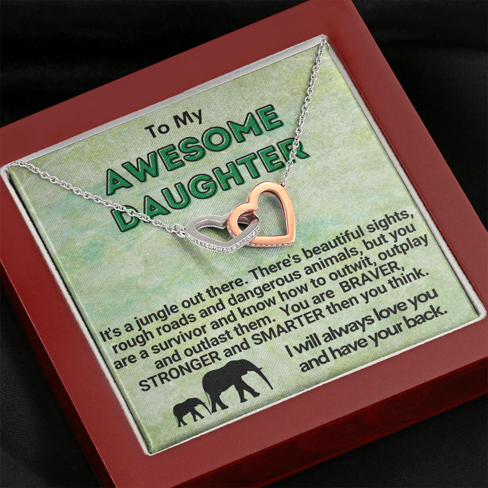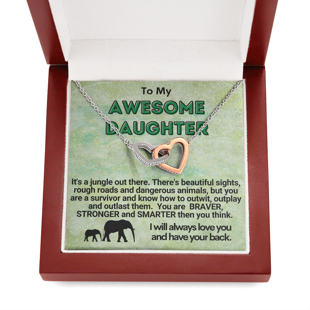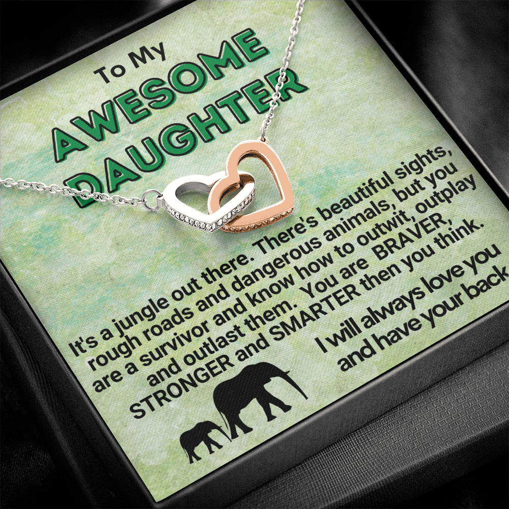Awesome Daughter Linked Hearts Necklace Gift from Mom or Dad