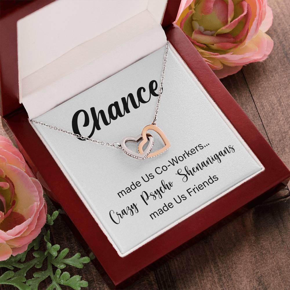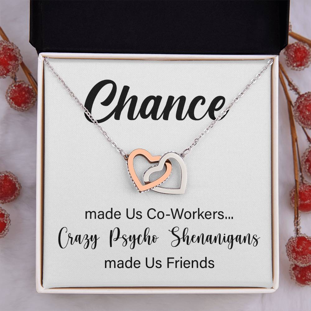 Crazy Psycho Shenanigans Made Us Friends 18K Rose Gold Interlocking Hearts Necklace Jewelry Unique Gift for Work Bestie
