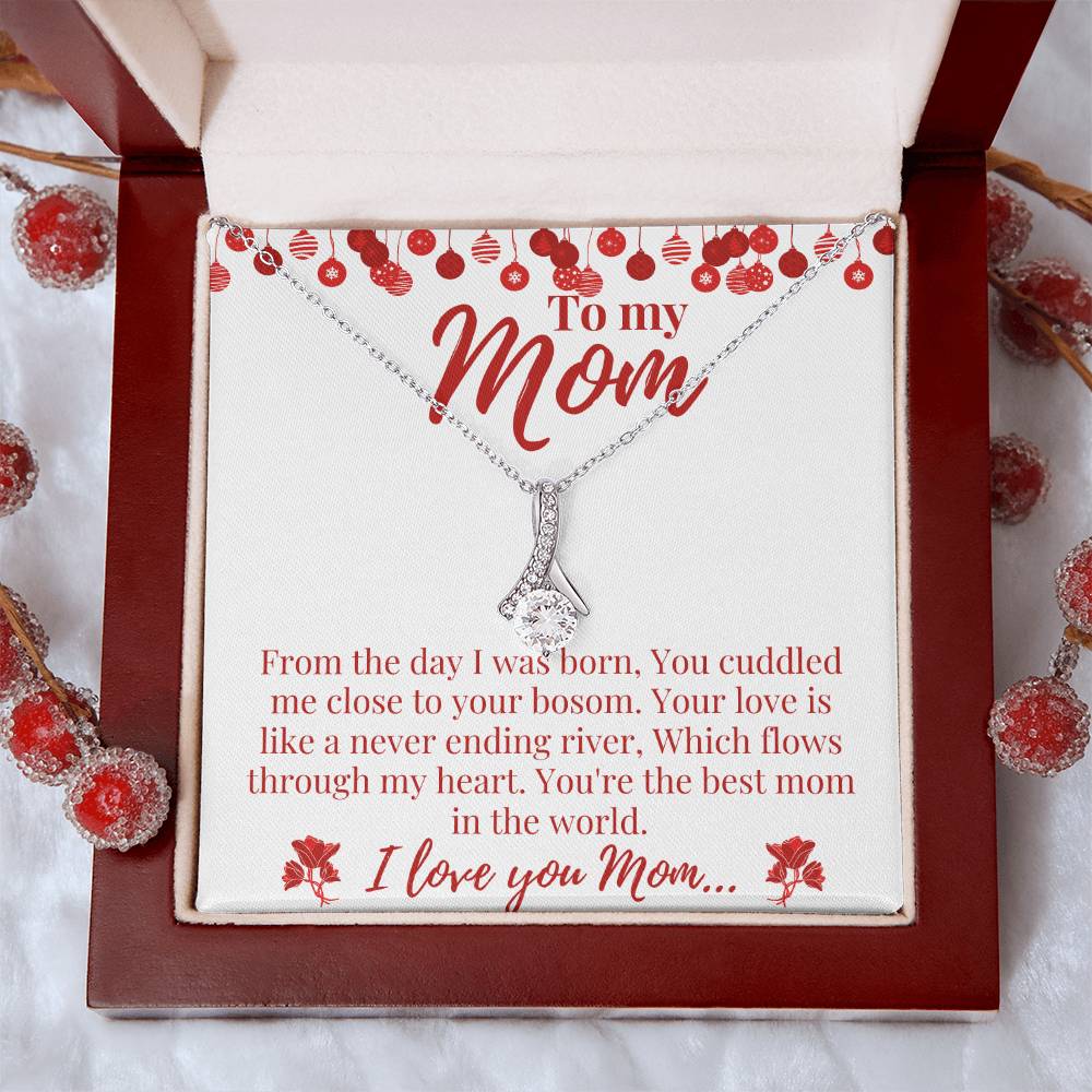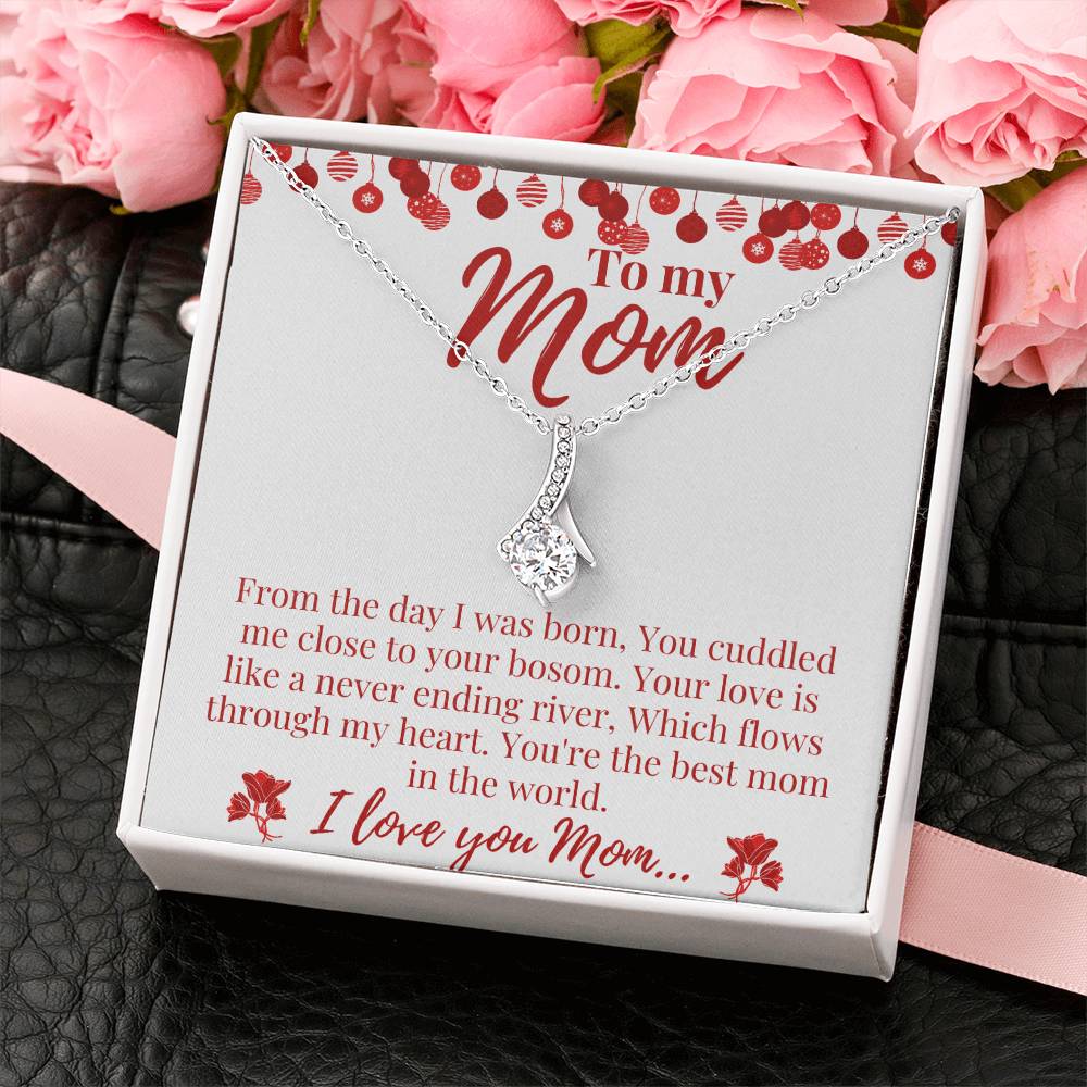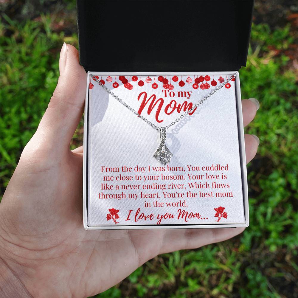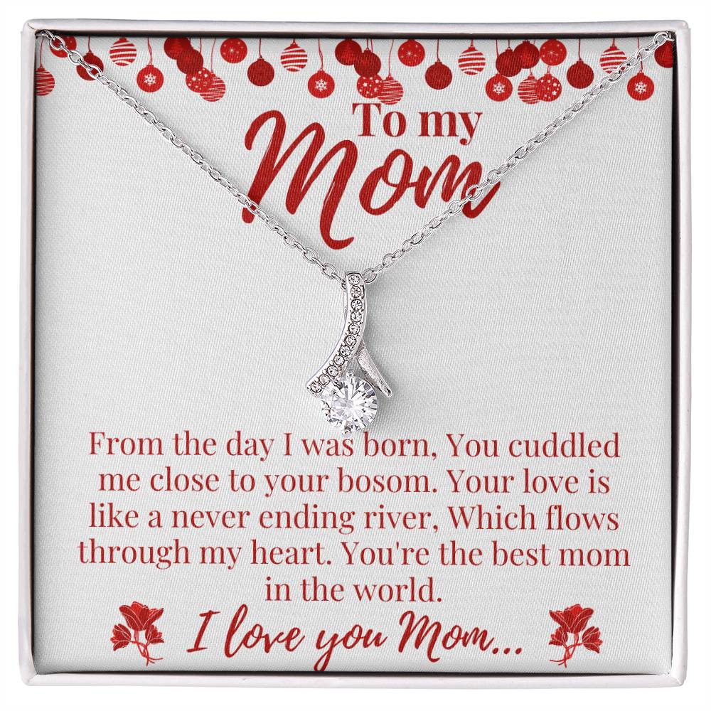 Cuddled Close Best Mom In World Necklace 14K White Gold Finish Alluring Beauty Necklace Jewelry Emotional Present for Loving Mother Birthday