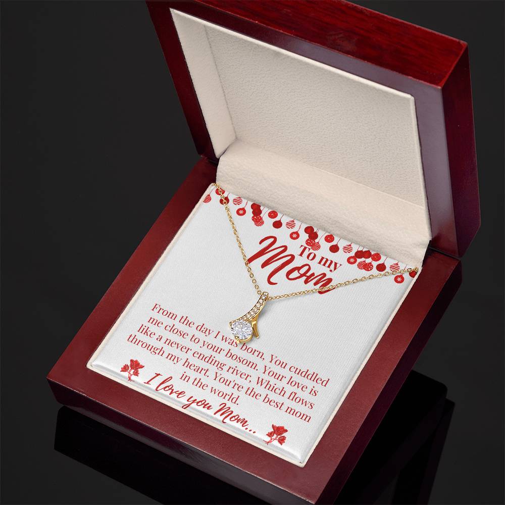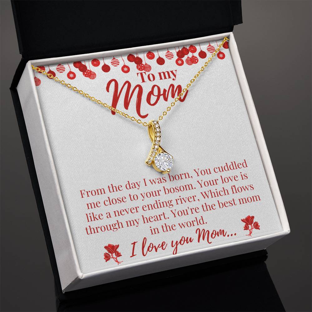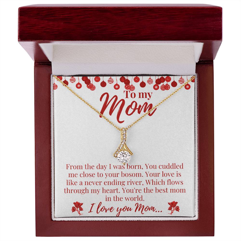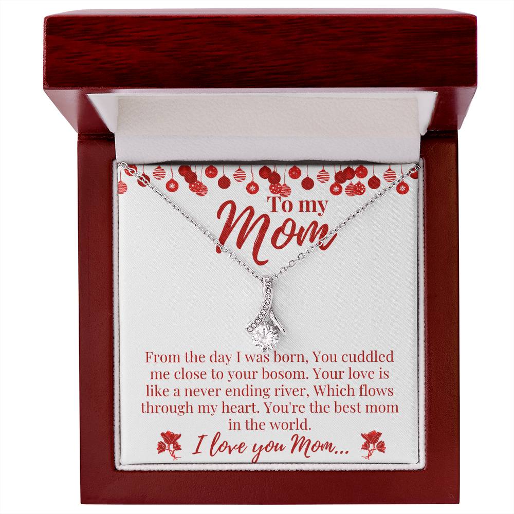 Cuddled Close Best Mom In World Necklace 14K White Gold Finish Alluring Beauty Necklace Jewelry Emotional Present for Loving Mother Birthday