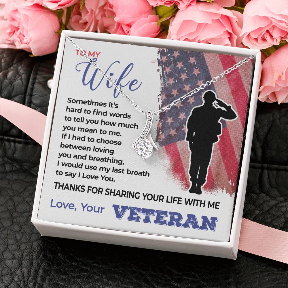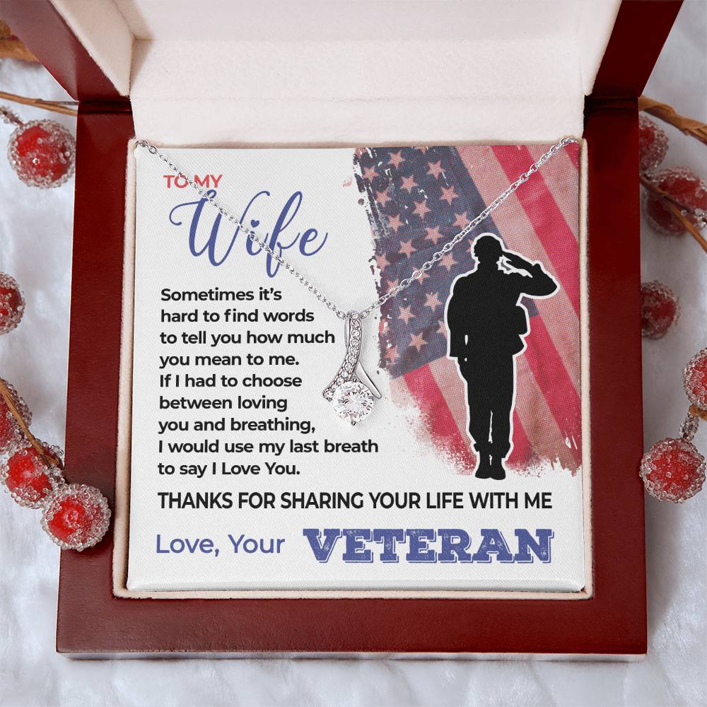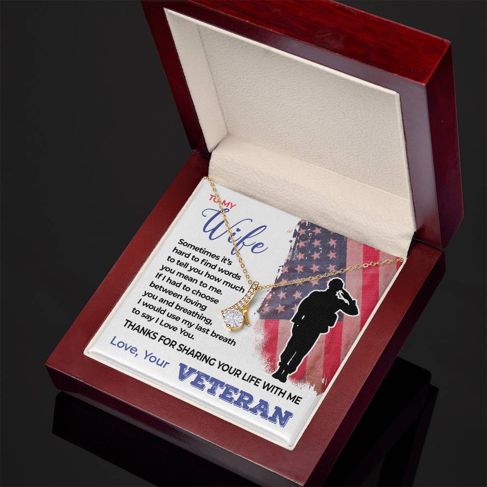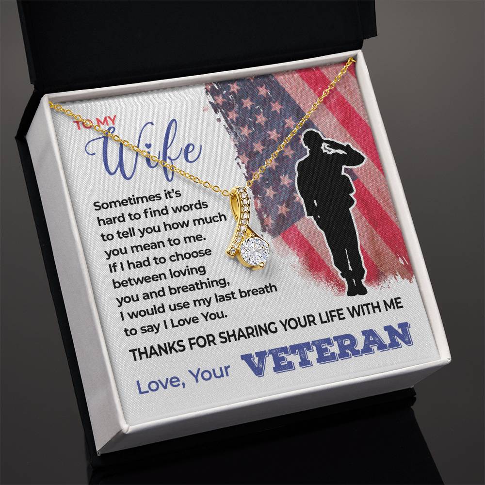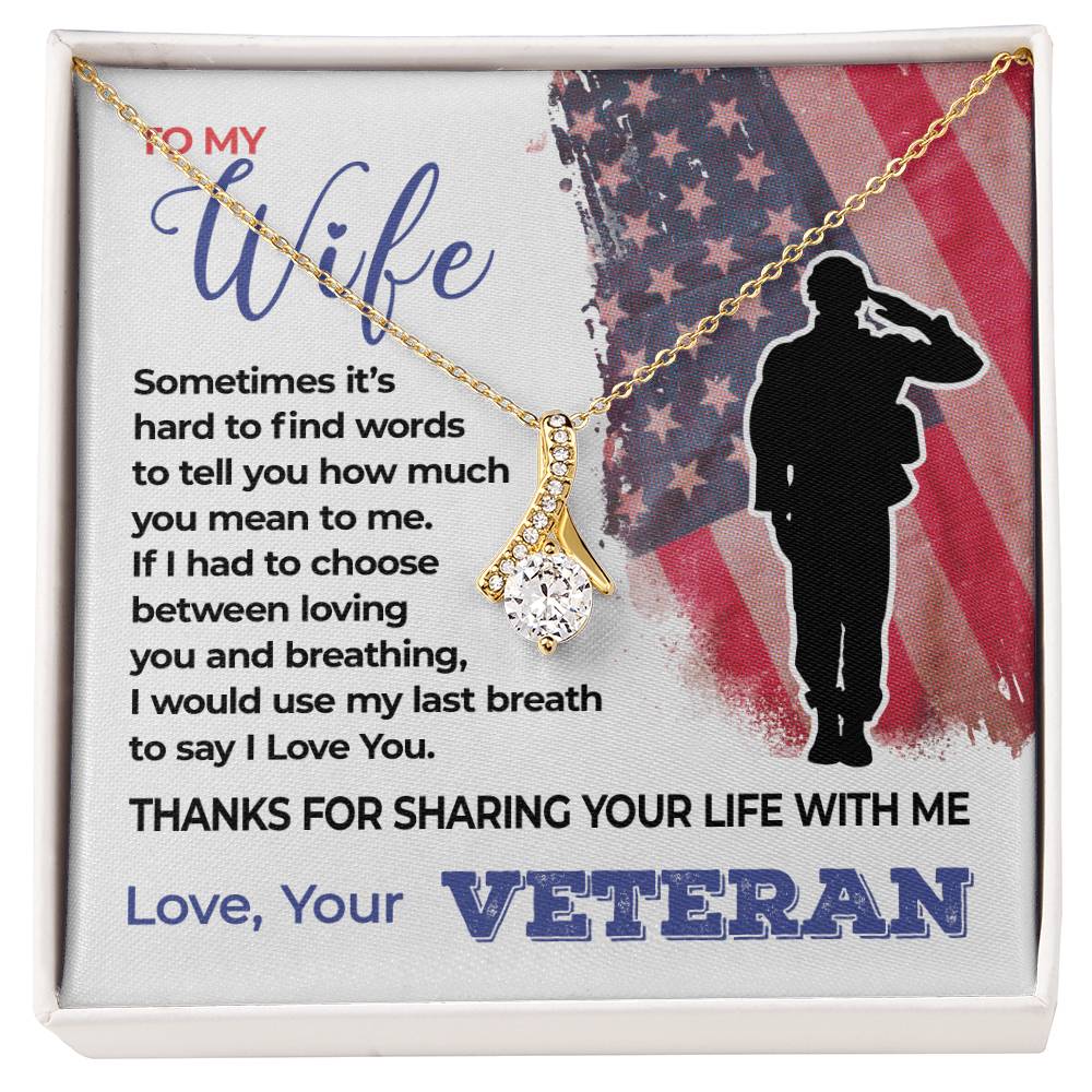 Devoted Veteran Wife Forever Cherished 18K Yellow Gold Finish Alluring Beauty Necklace Jewelry Perfect Gift for Military Wife Anniversary