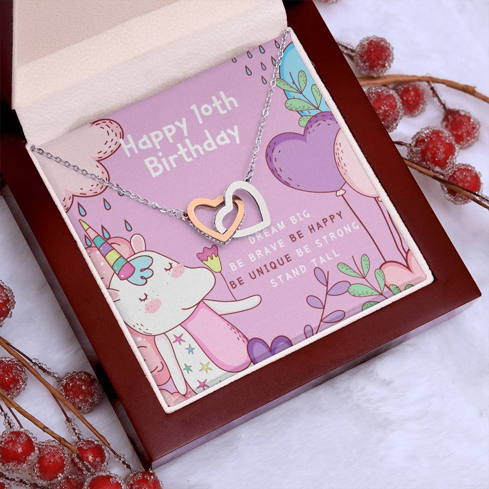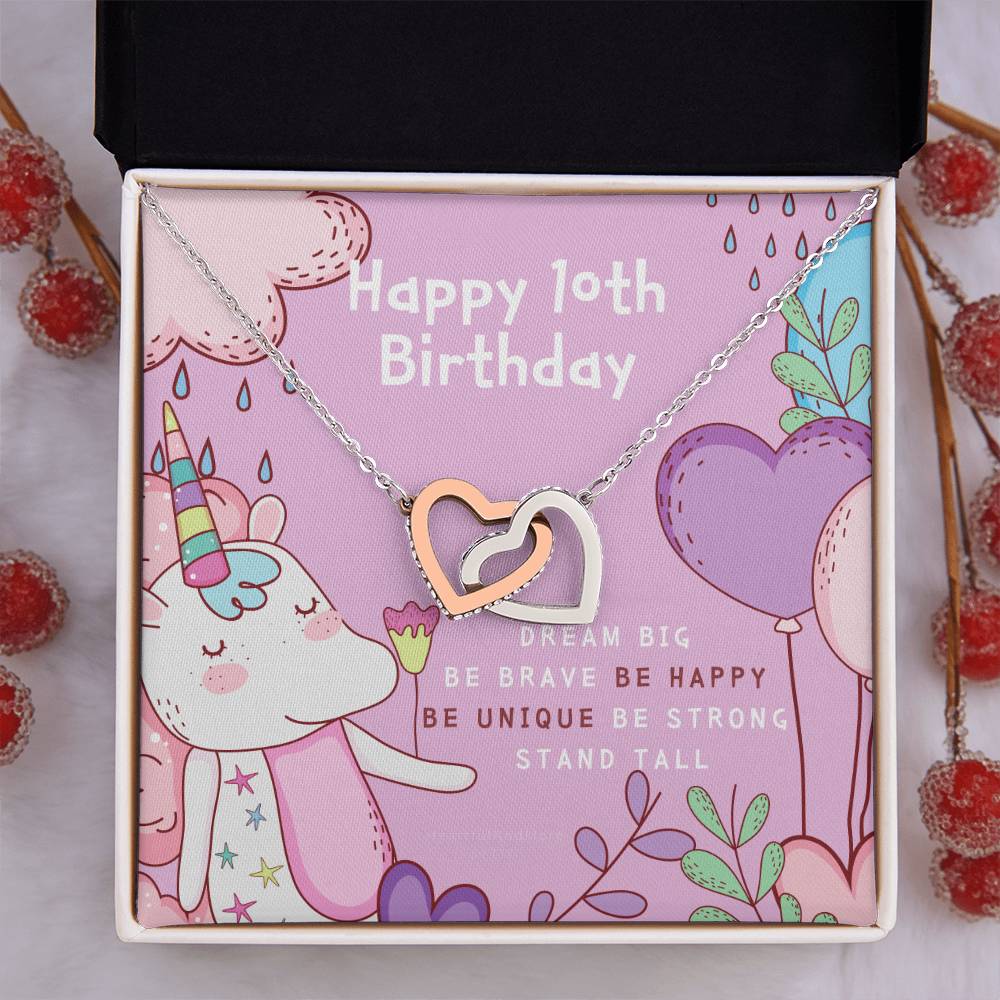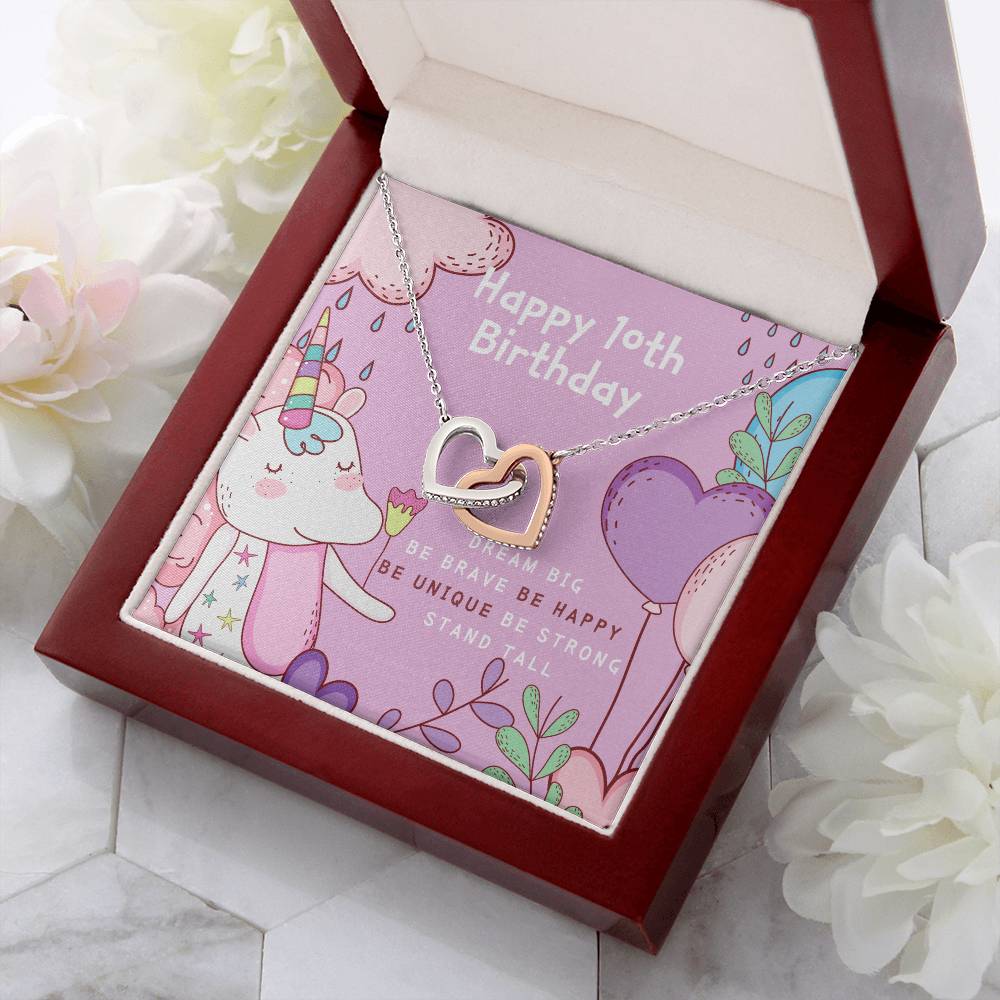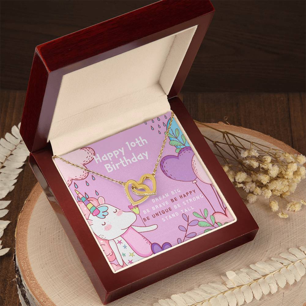 Dream Big Be Brave Be Happy 18K Rose Gold Interlocking Hearts Necklace Jewelry – Beautiful 10th Birthday Gift for Daughter from Mom