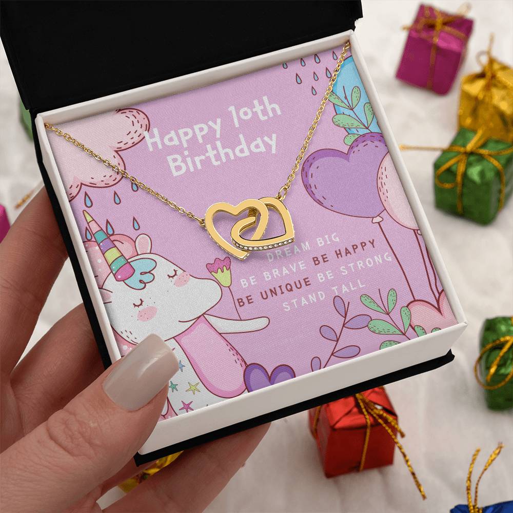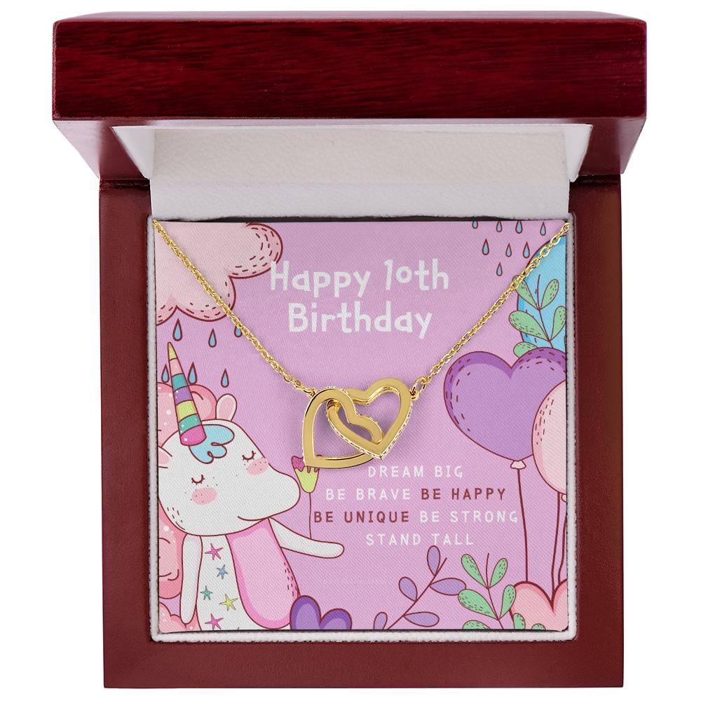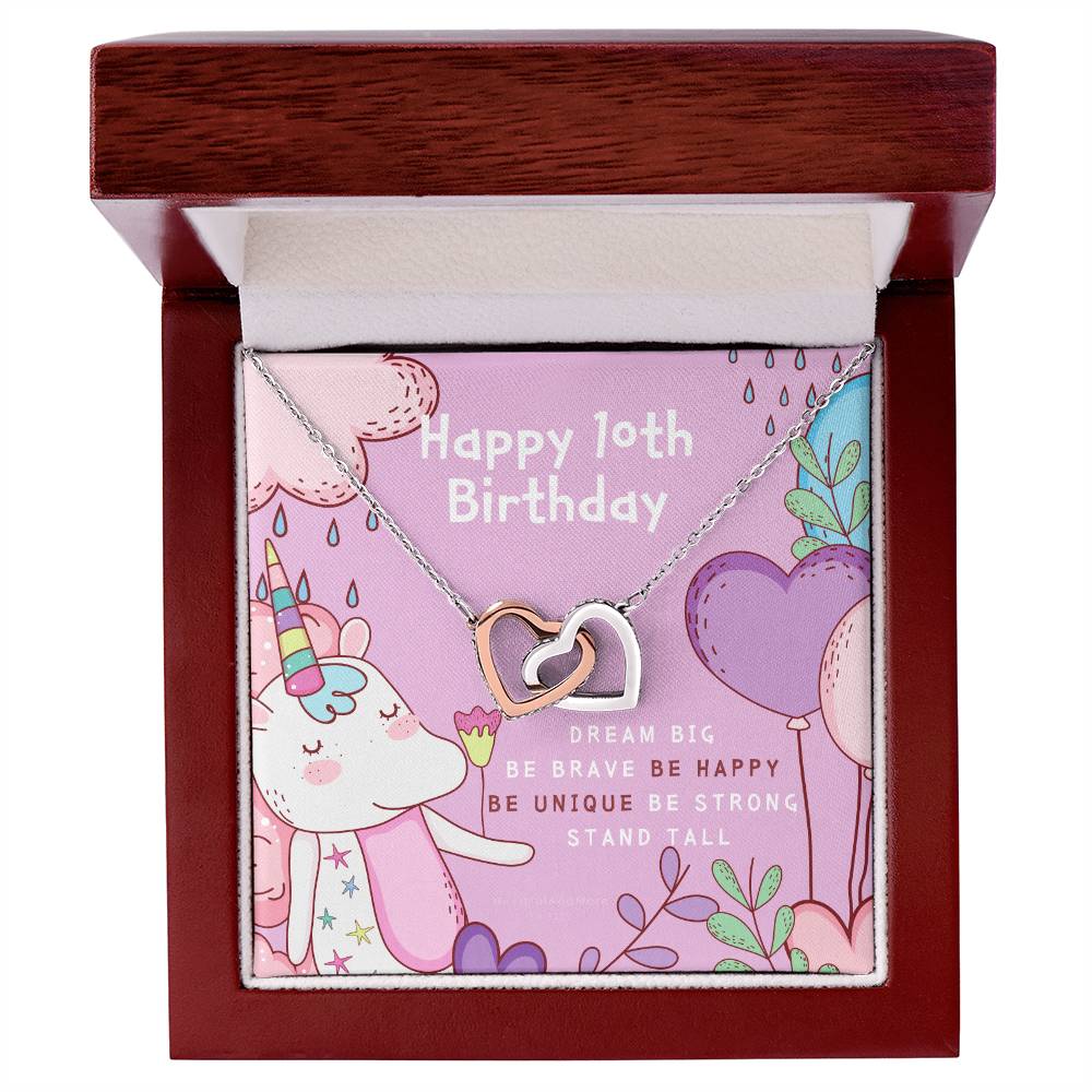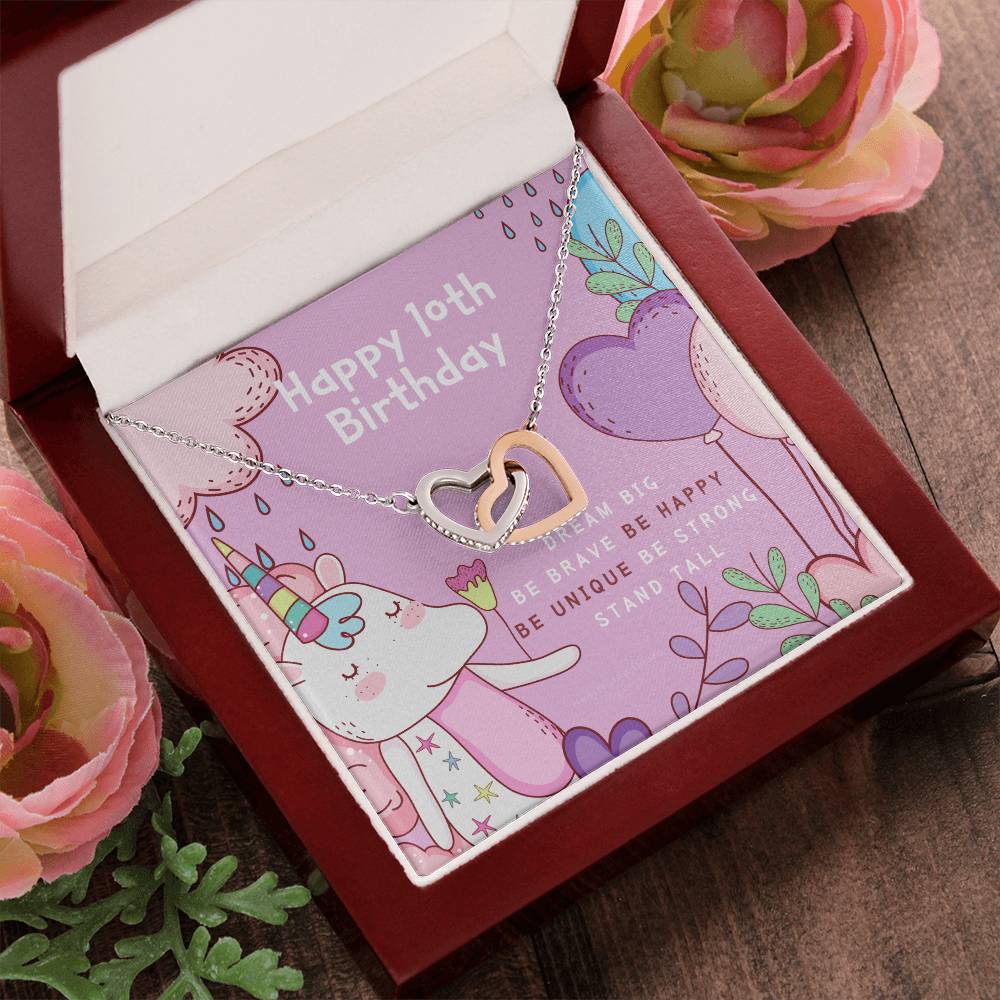 Dream Big Be Brave Be Happy 18K Rose Gold Interlocking Hearts Necklace Jewelry – Beautiful 10th Birthday Gift for Daughter from Mom