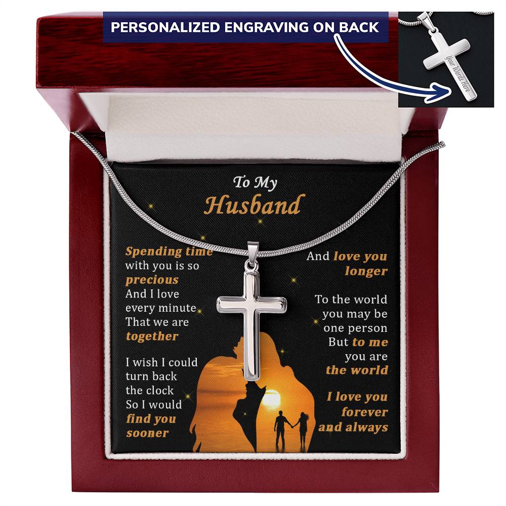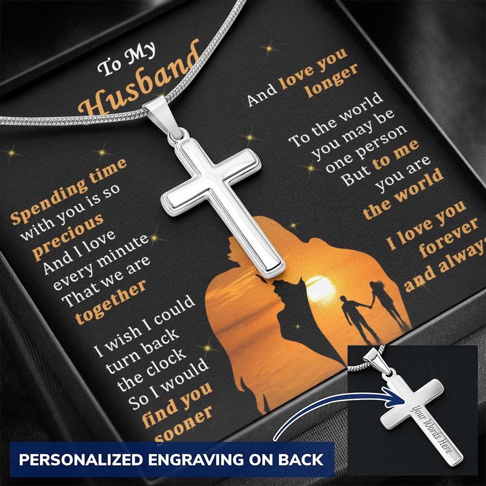 ersonalized Spending Time With You Is So Precious and I Love Every Minute Stainless Steel Cross Necklace Engraved Perfect Anniversary Gift for Husband