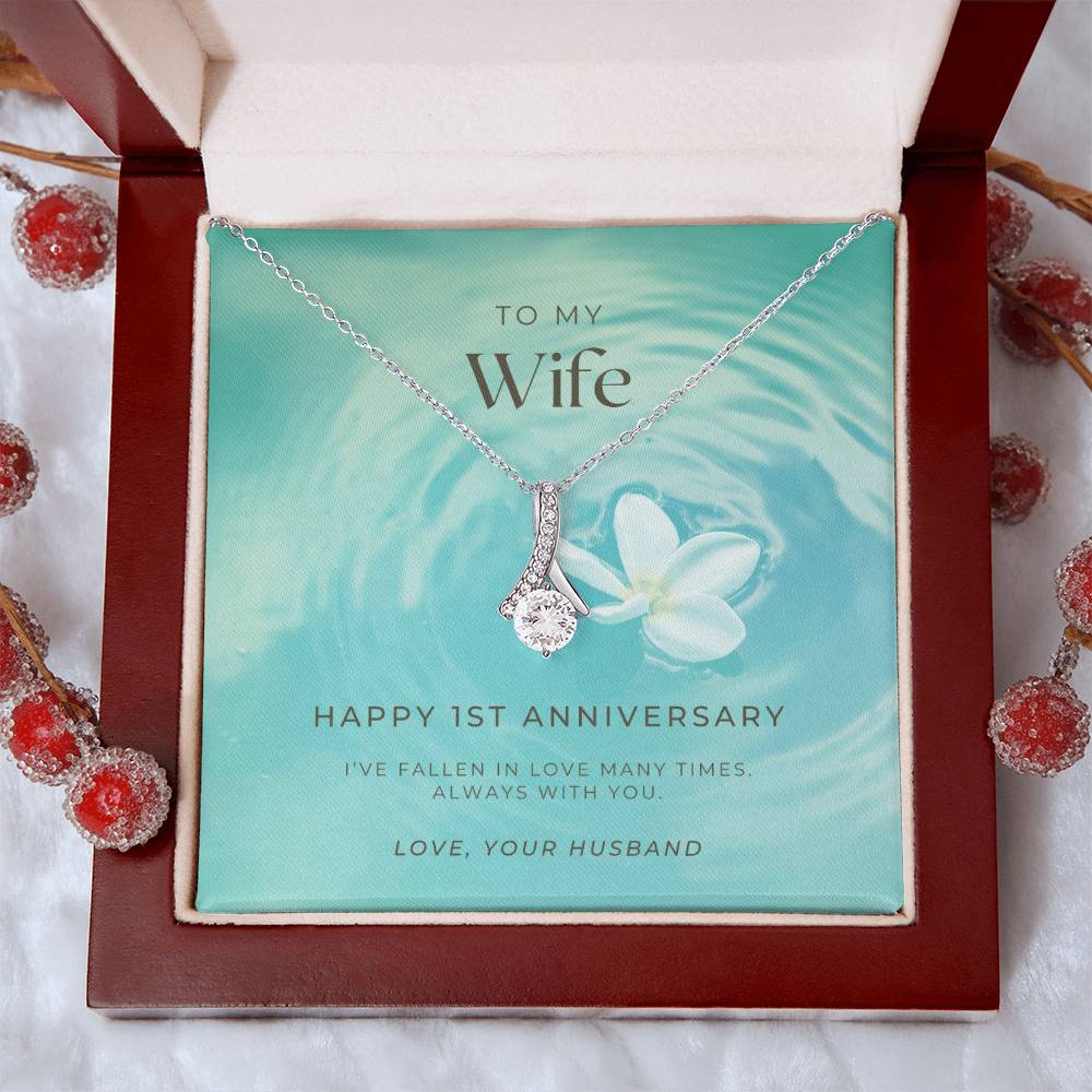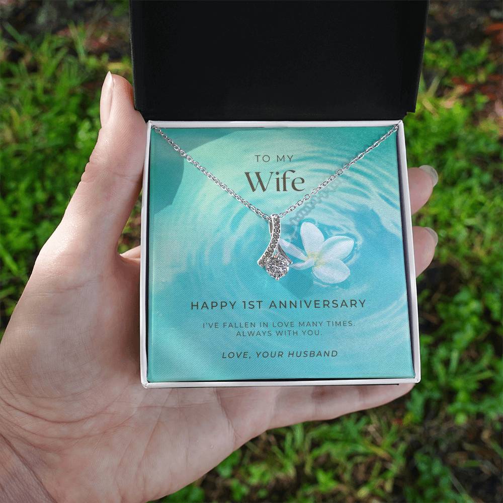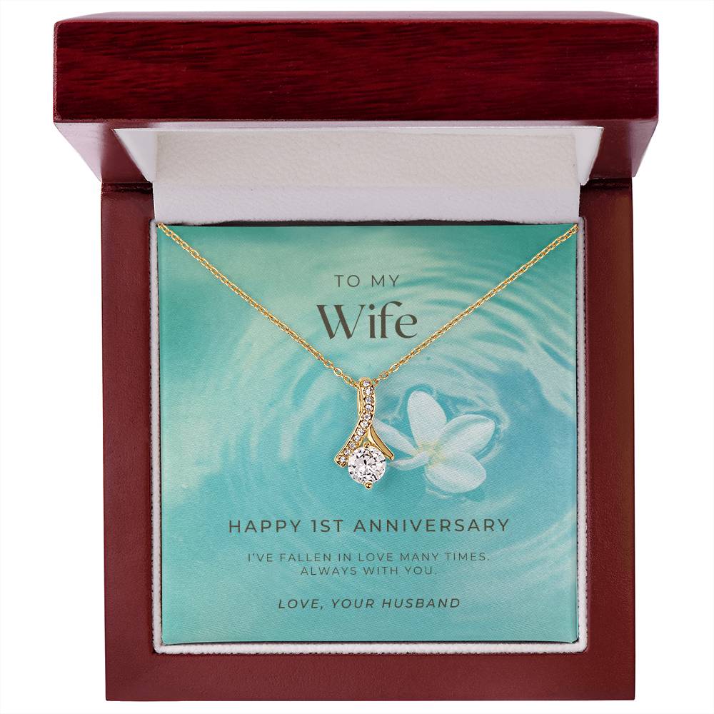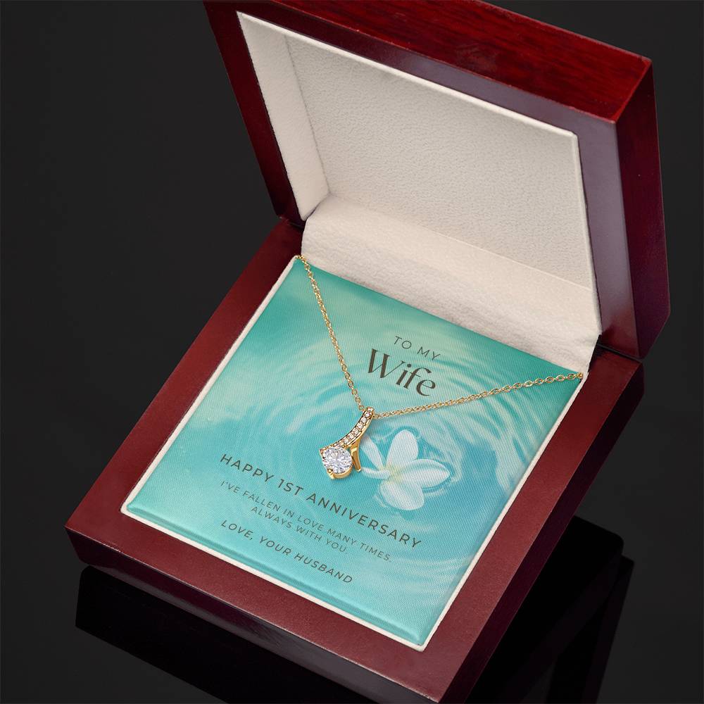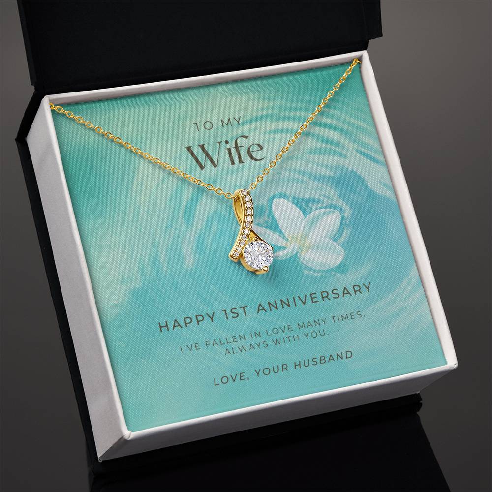Fallen In Love Many Times Elegant Wife 18K Yellow Gold Finish Alluring Beauty Necklace Jewelry Perfect Gift for Wife 1st Anniversary from Husband