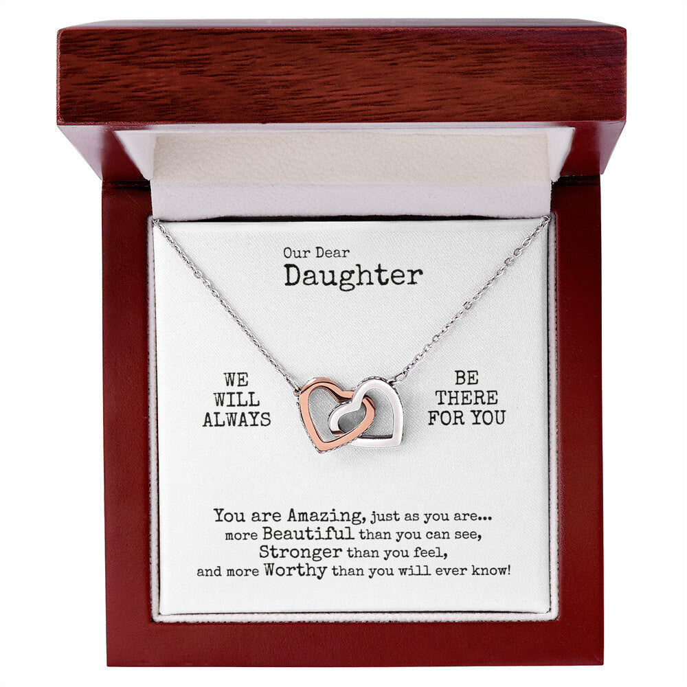 Feel More Worthy Than You Know 18K Rose Gold Interlocking Hearts Necklace Jewelry Special Gift for Daughter Birthday