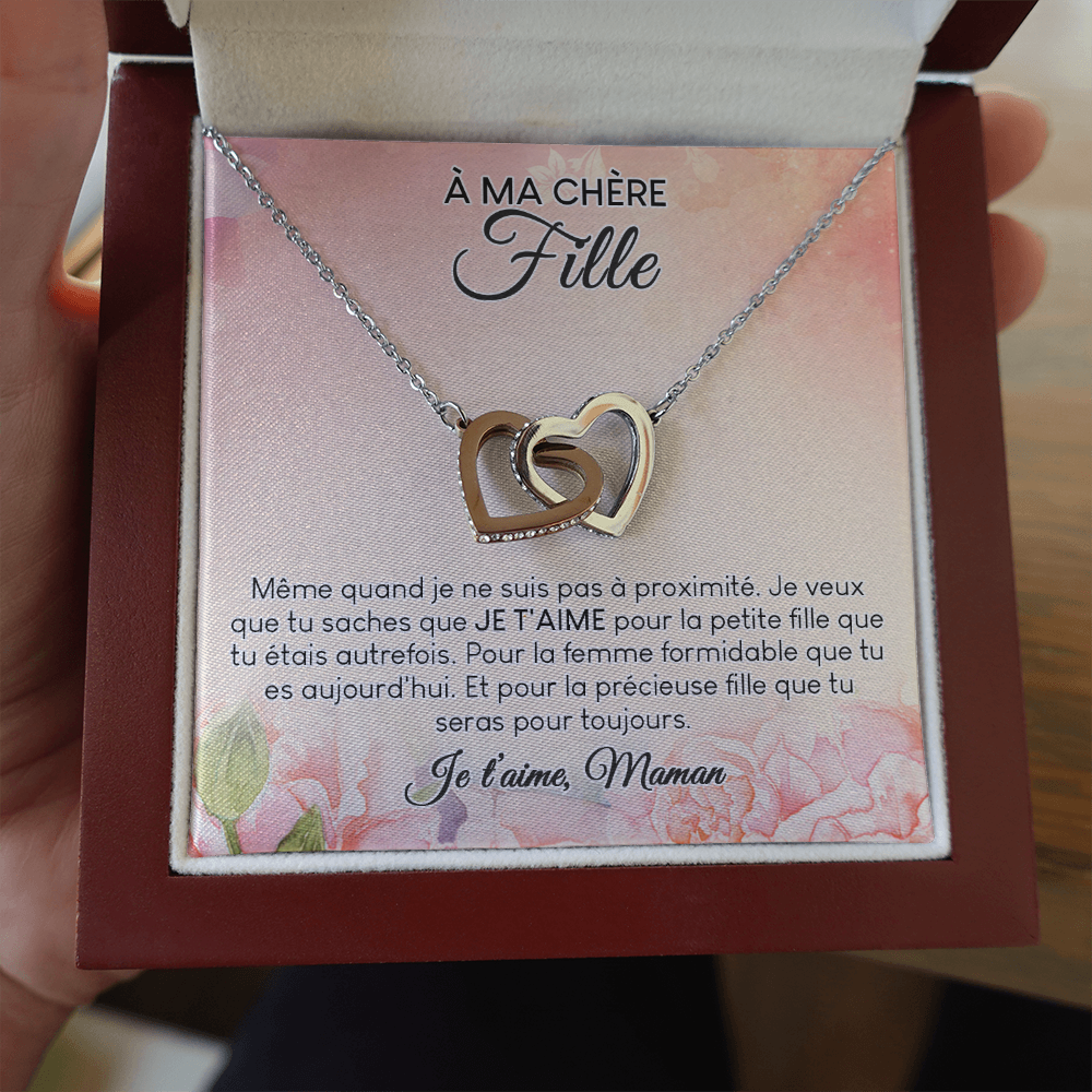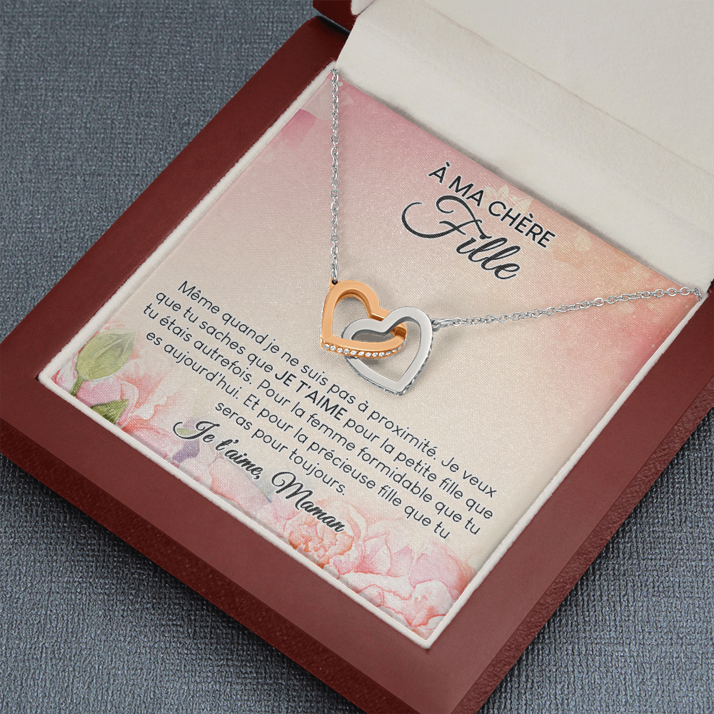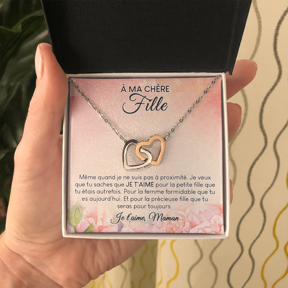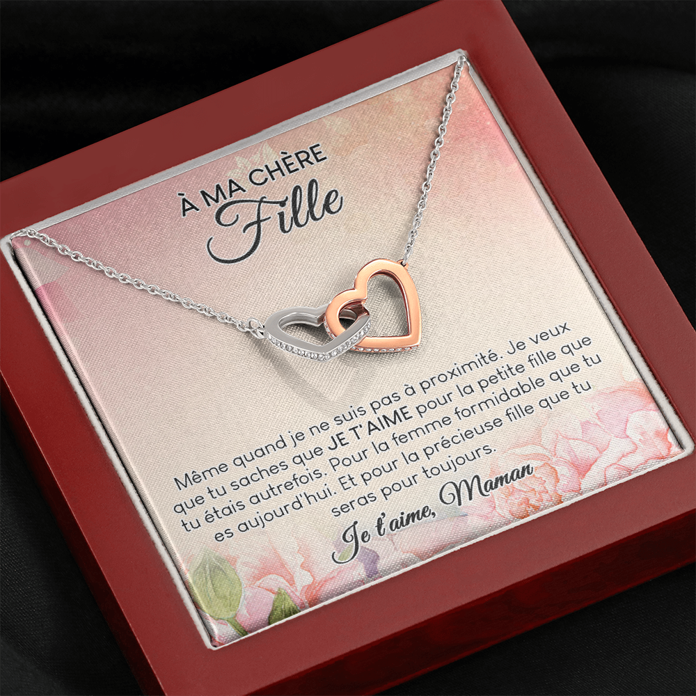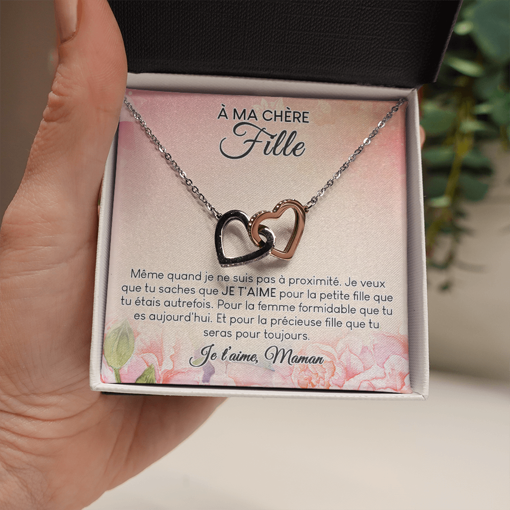 Two hearts embellished with Cubic Zirconia stones, interlocked together as a symbol of never-ending love. Made with high quality polished surgical steel. Cable chain measures 18 inches with a 4 inch extension, and fastens with a lobster clasp.