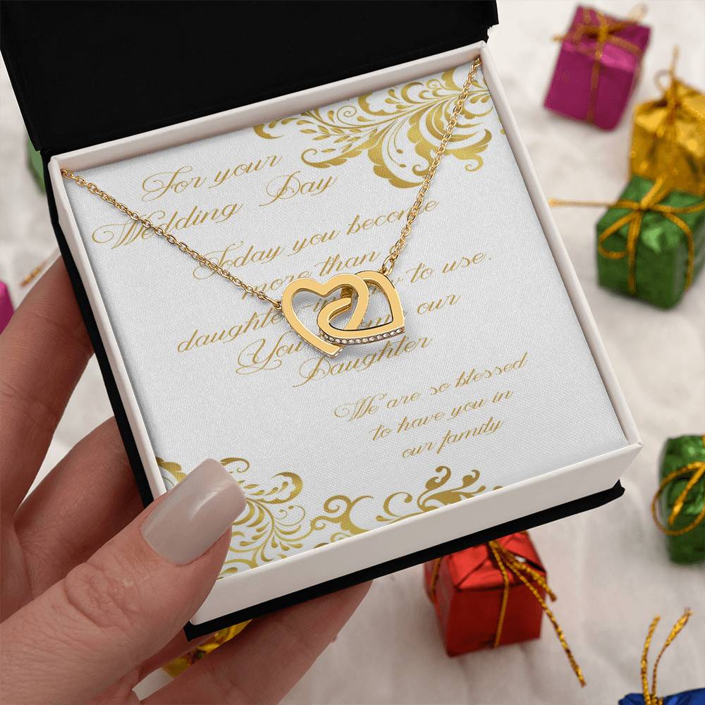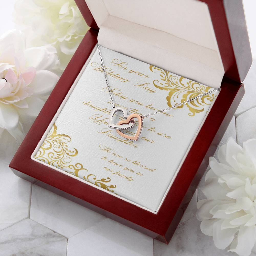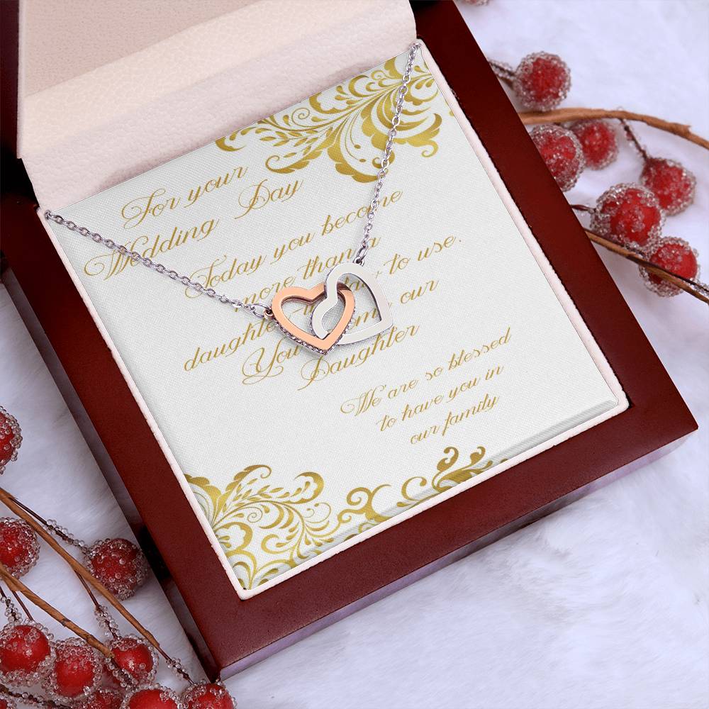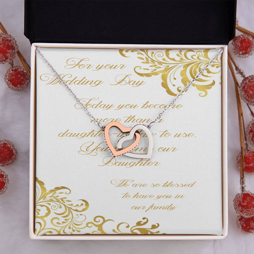 For Your Wedding Day You Become Our Daughter 18K Rose Gold Interlocking Hearts Necklace Jewelry Unique Daughter-in-law Gift