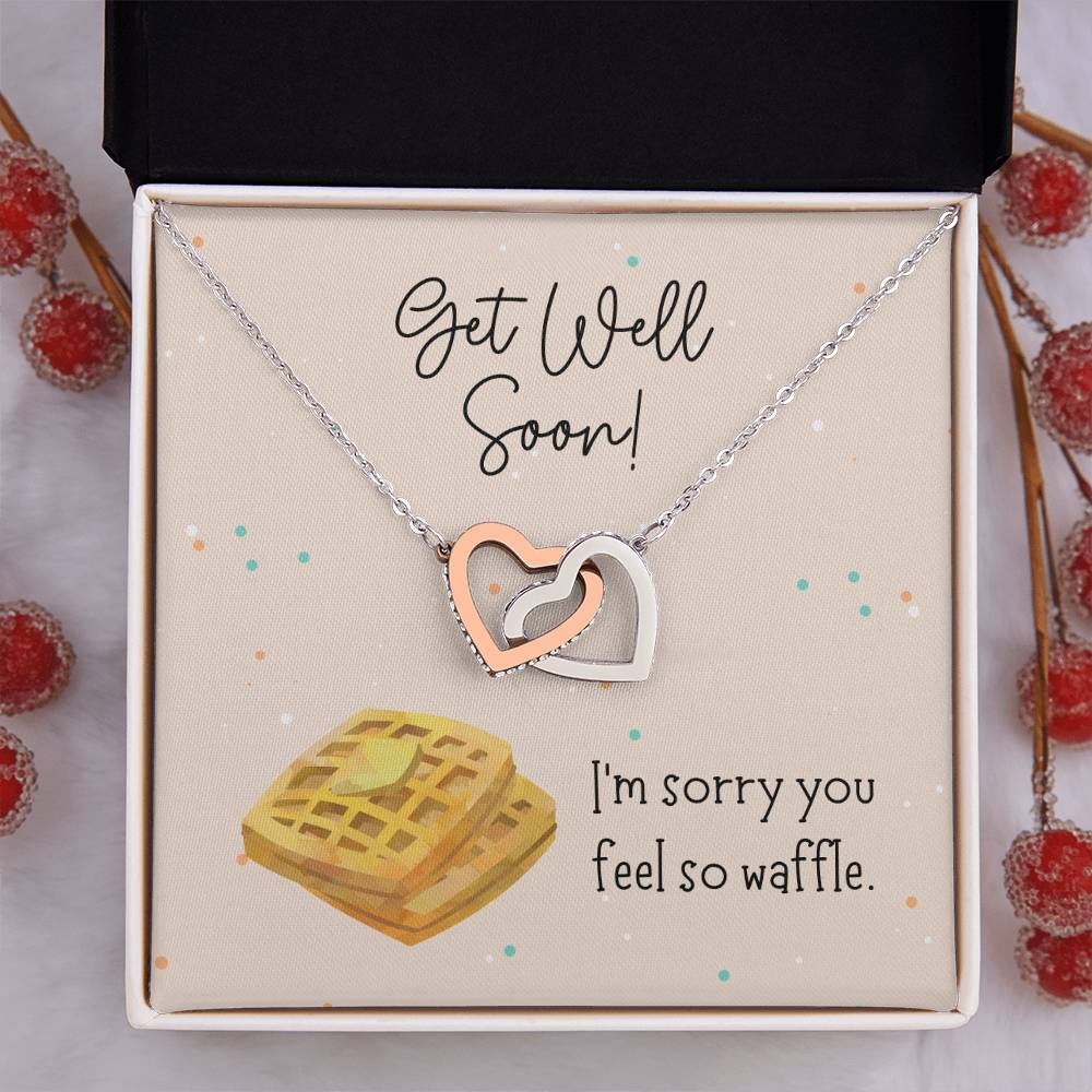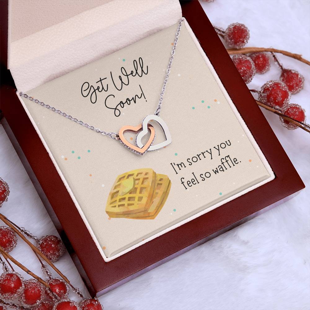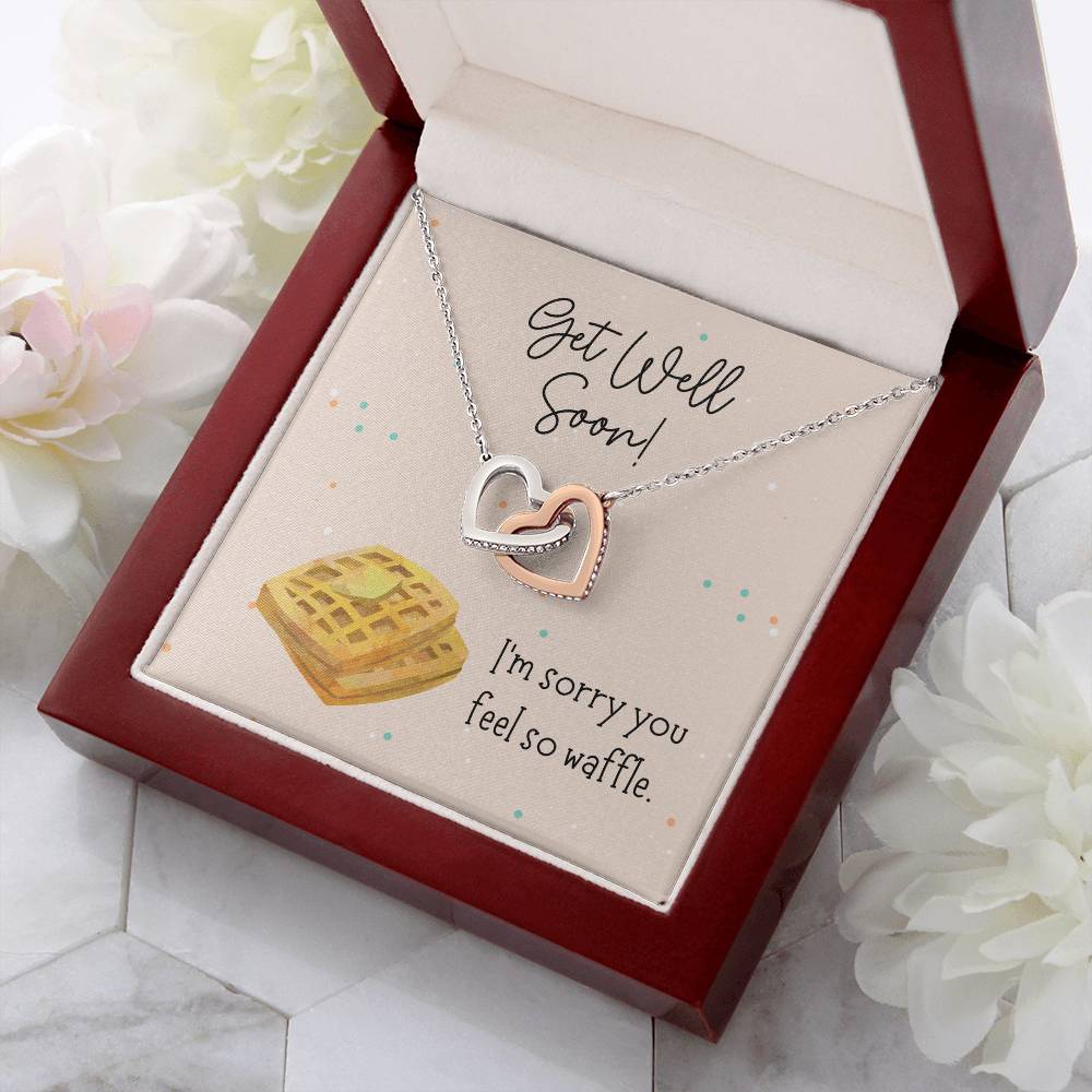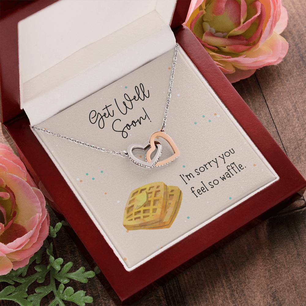 Get Well Soon Waffle Message 18K Rose Gold Interlocking Hearts Necklace Jewelry Special Gift for Friend Birthday