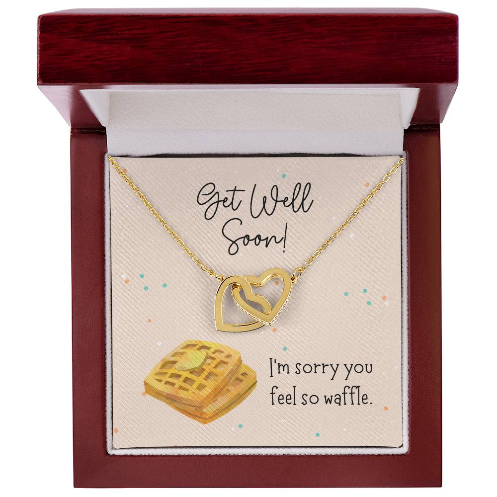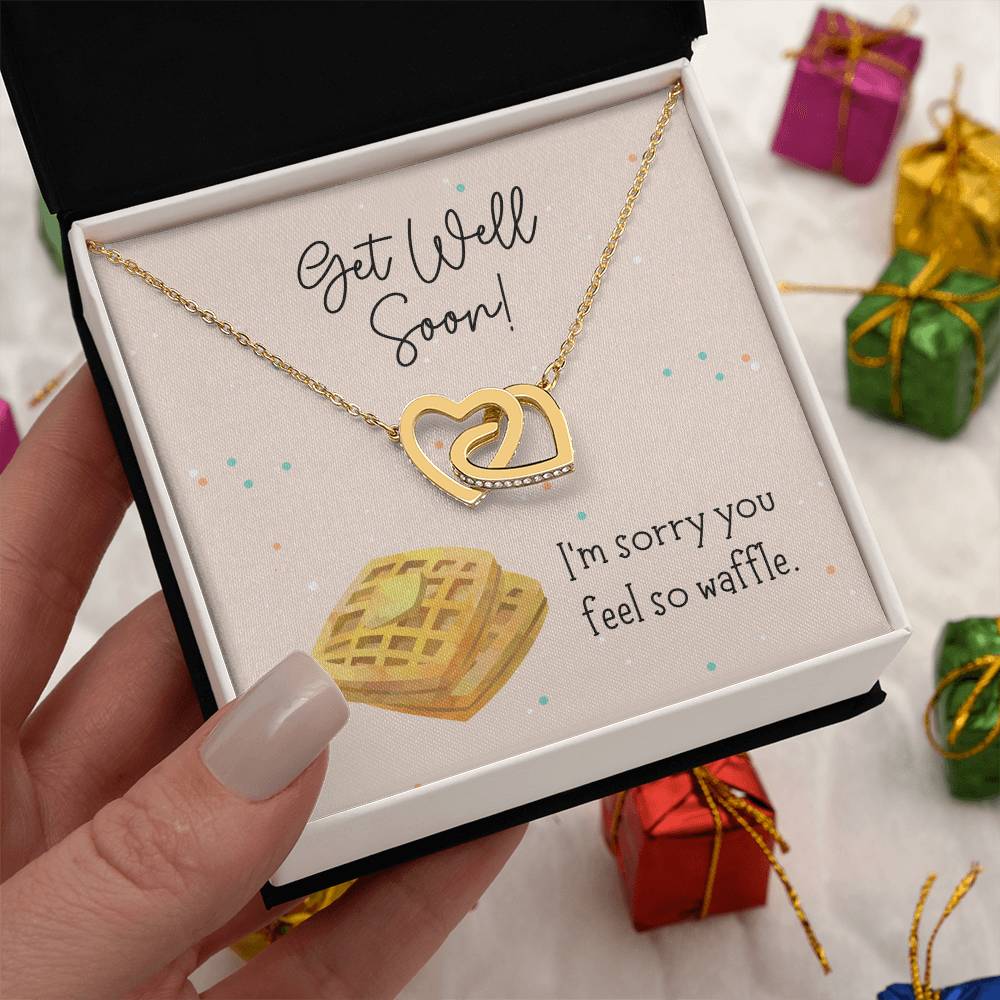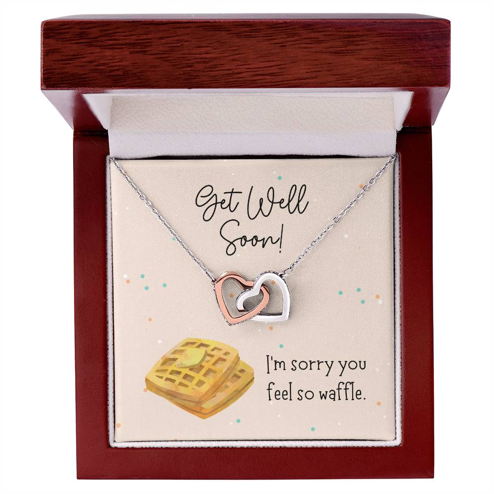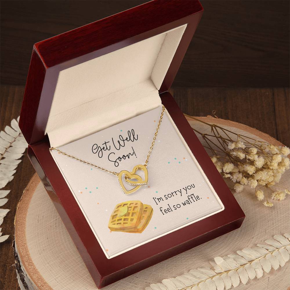 Get Well Soon Waffle Message 18K Rose Gold Interlocking Hearts Necklace Jewelry Special Gift for Friend Birthday