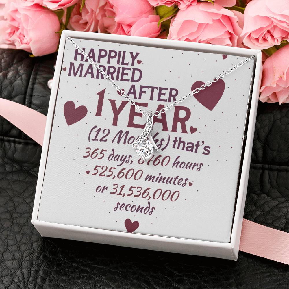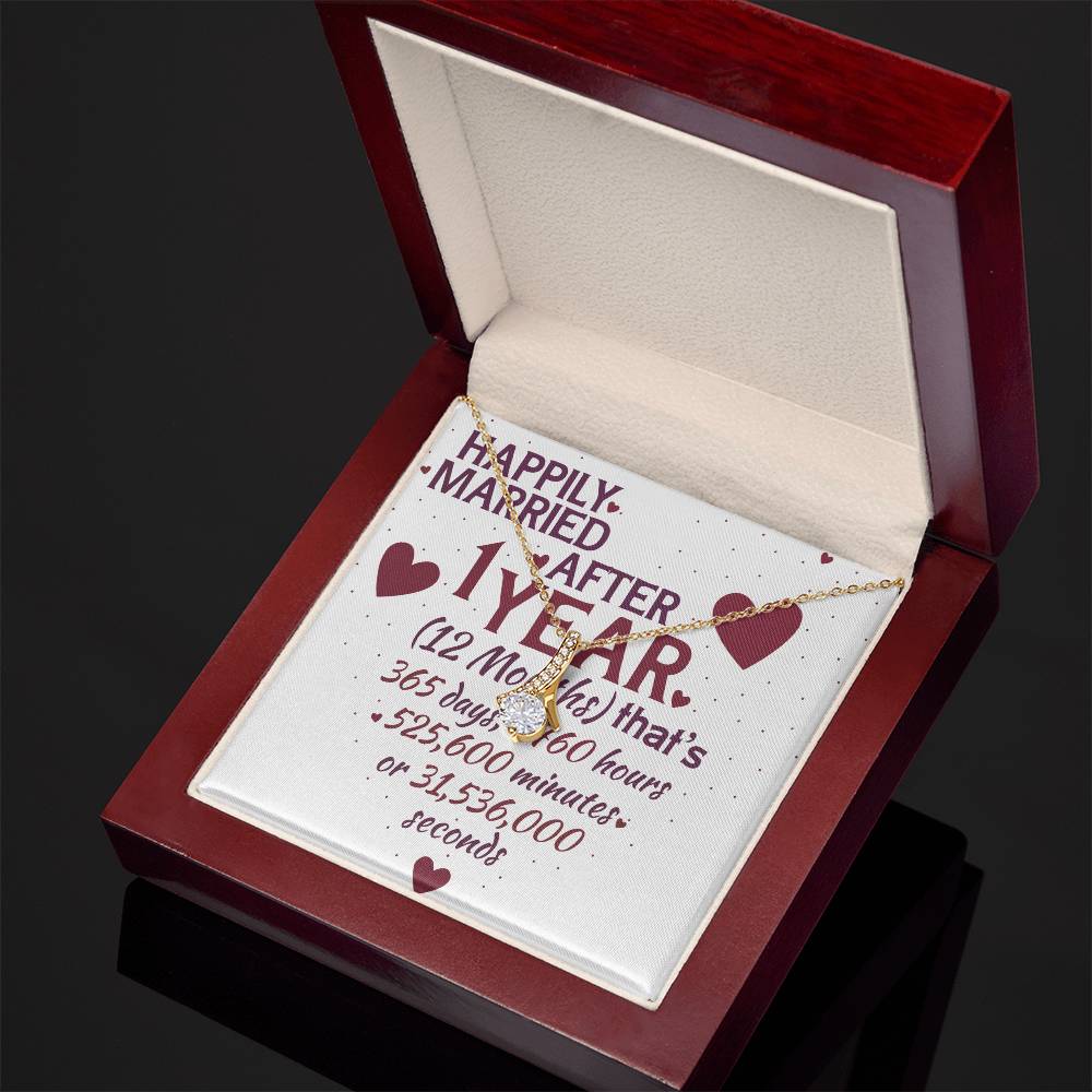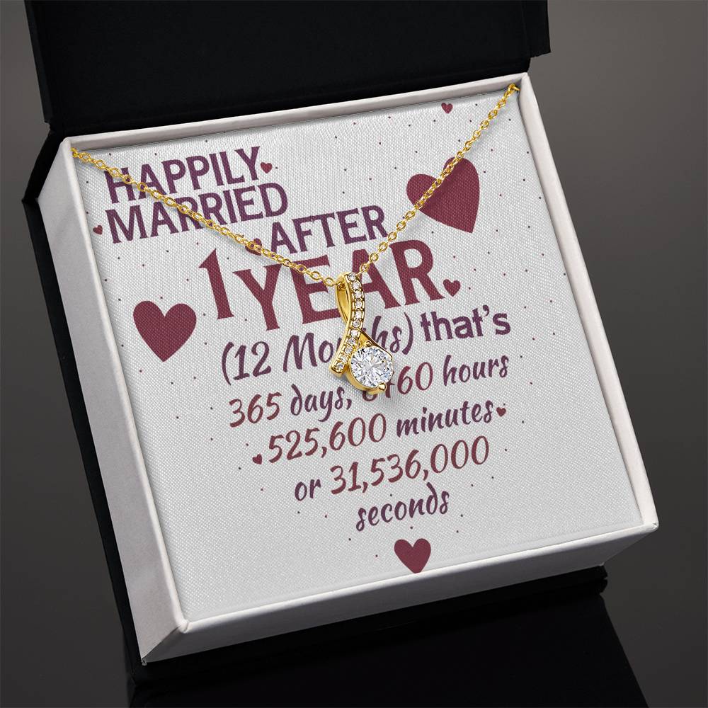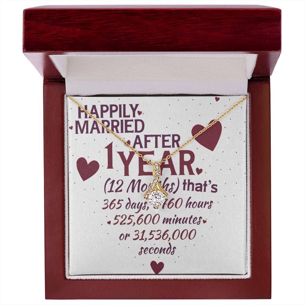 Happily Married 1 Year Milestone Love 18K Yellow Gold Finish Alluring Beauty Necklace Jewelry Celebration Gift for Wife Anniversary