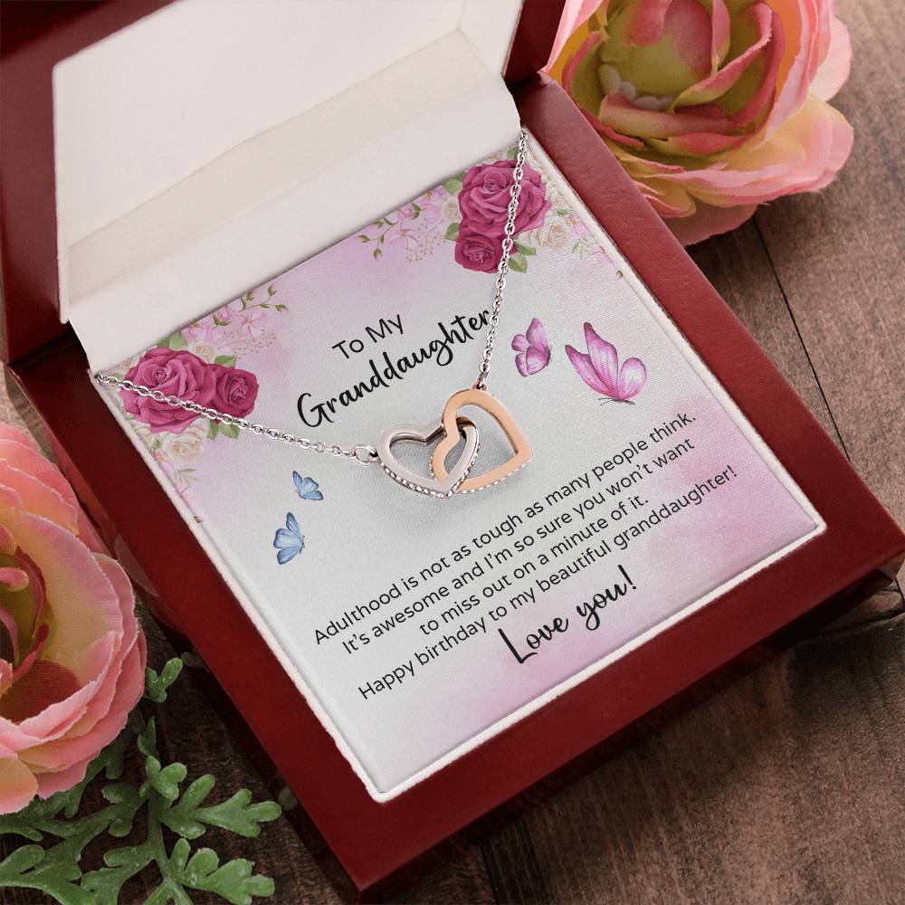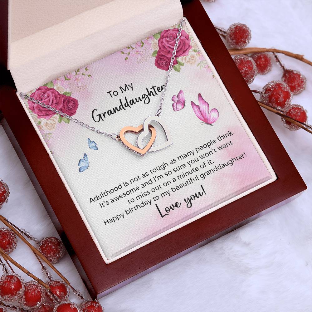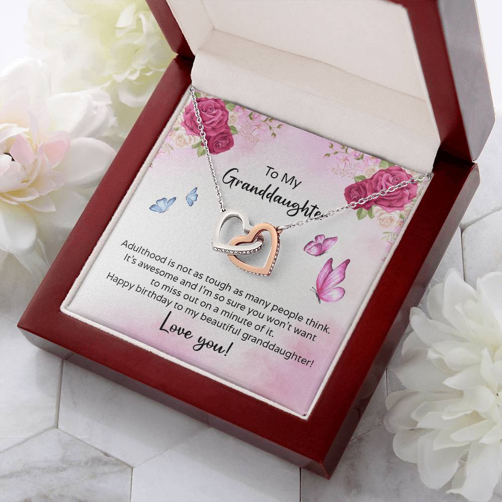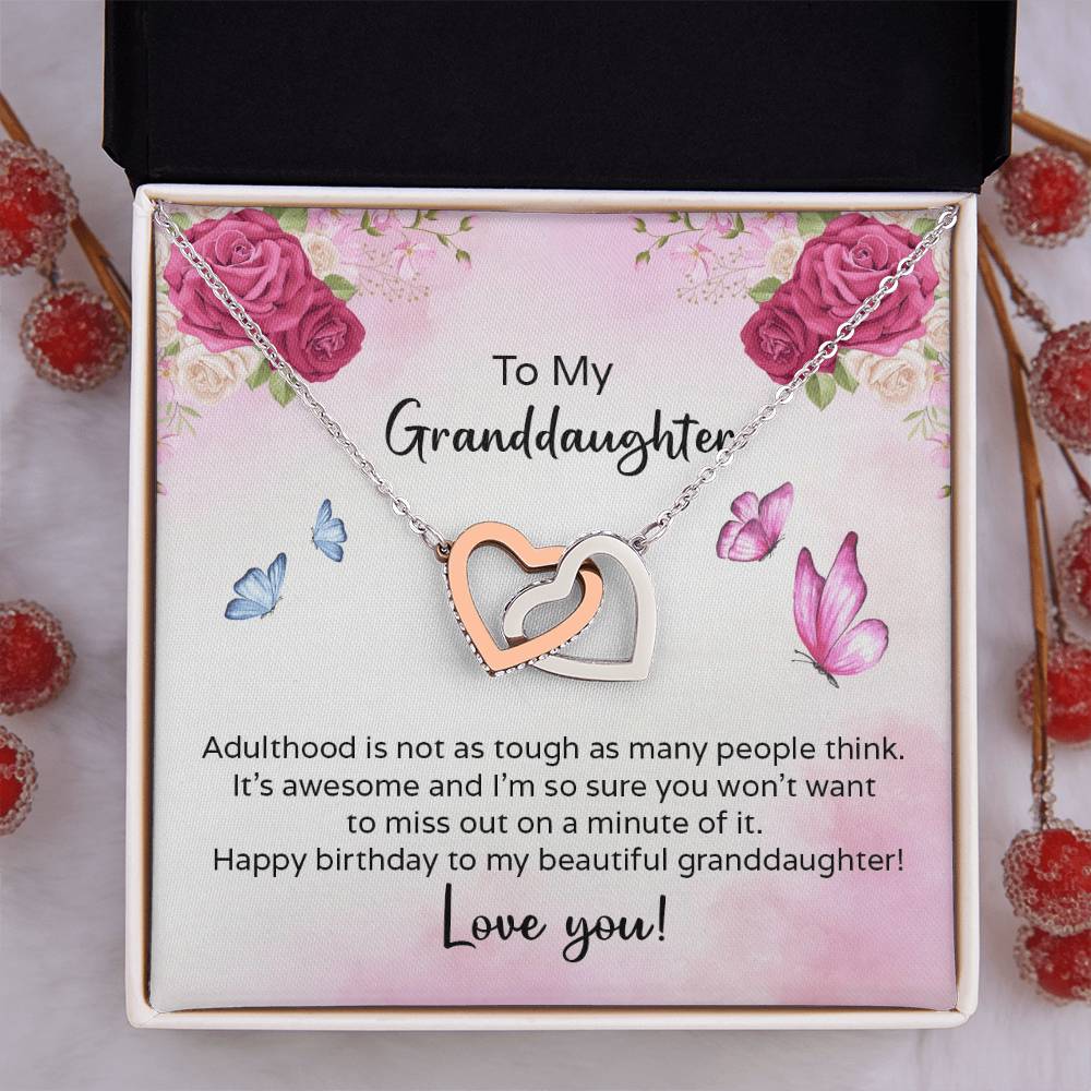 Happy Birthday To My Beautiful Granddaughter Love You 18K Rose Gold Interlocking Hearts Necklace Jewelry – Perfect Gift for Granddaughter