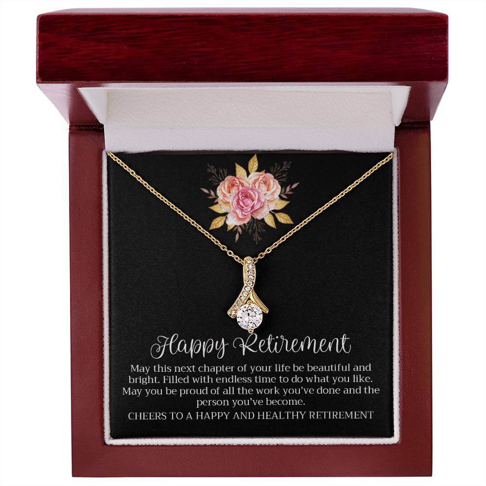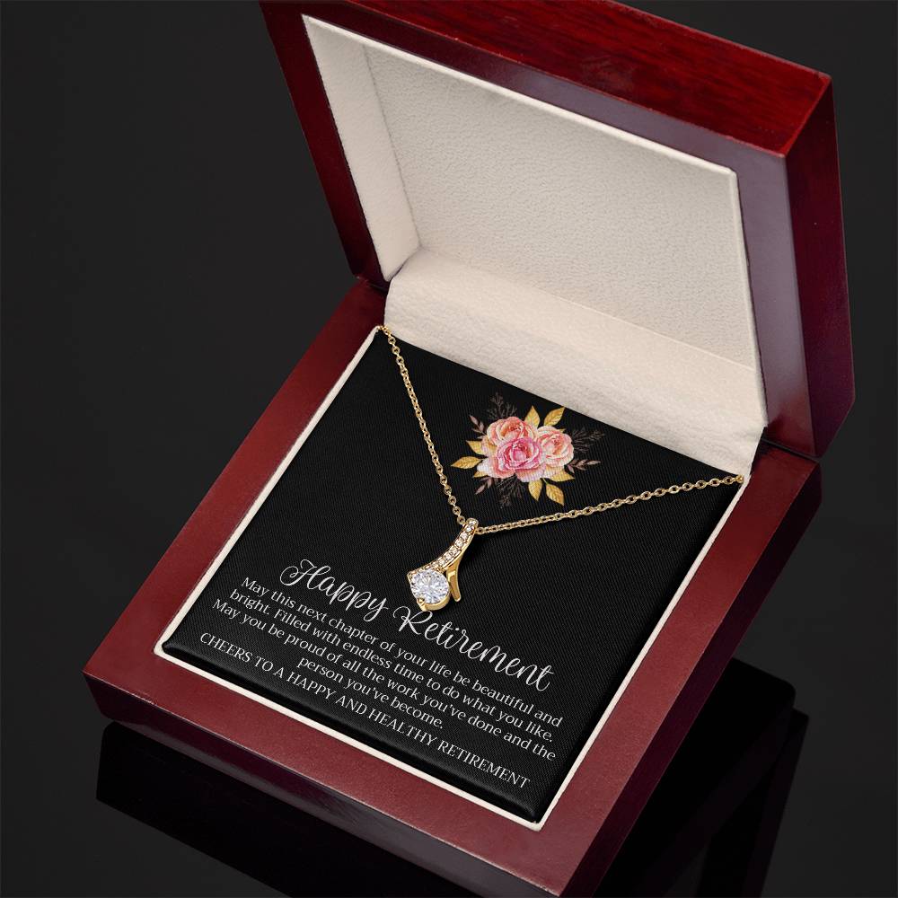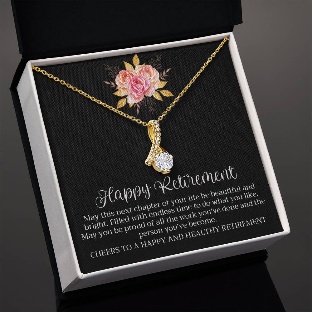 Happy Retirement Beautiful Chapter Necklace Elegant Pink Rose Card 18K Yellow Gold Finish Alluring Beauty Jewelry Gift for Her