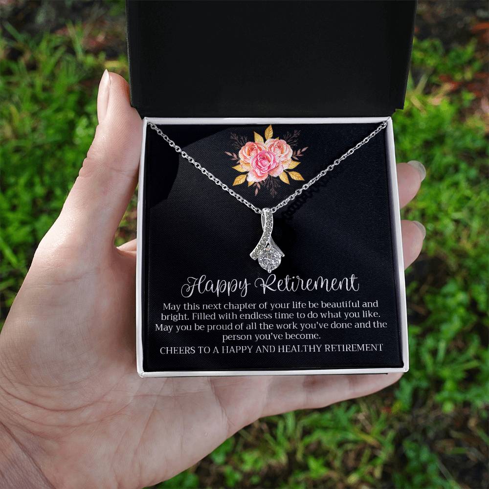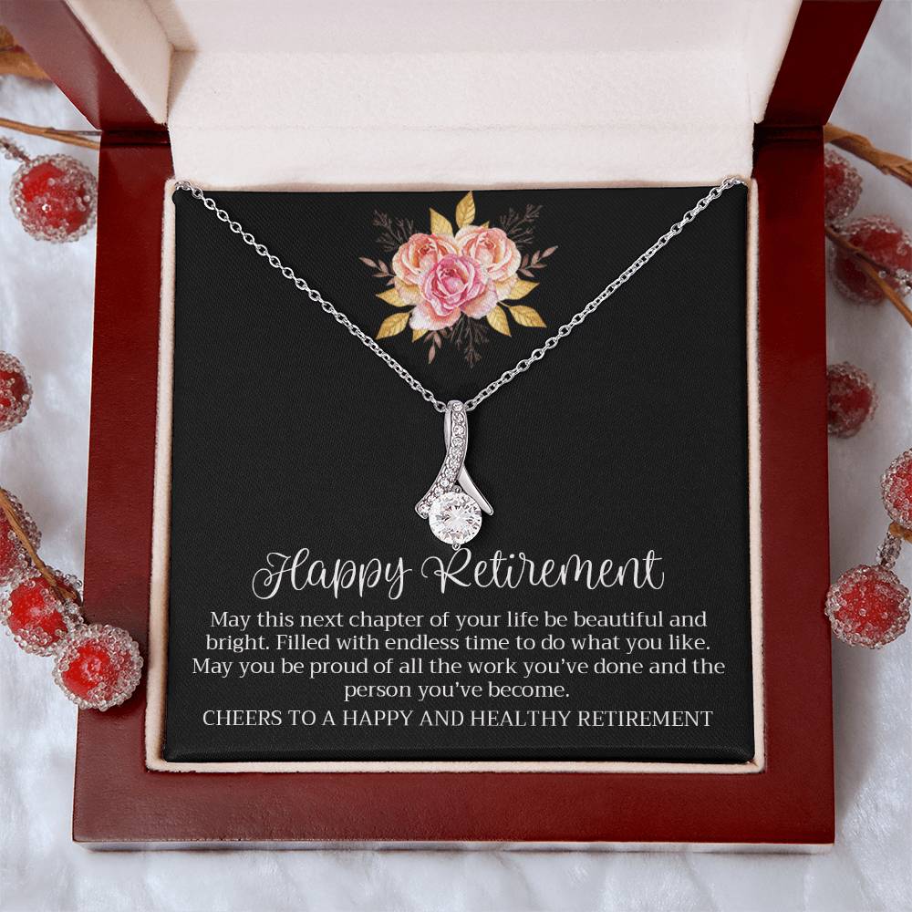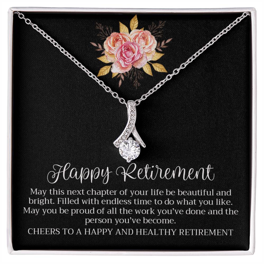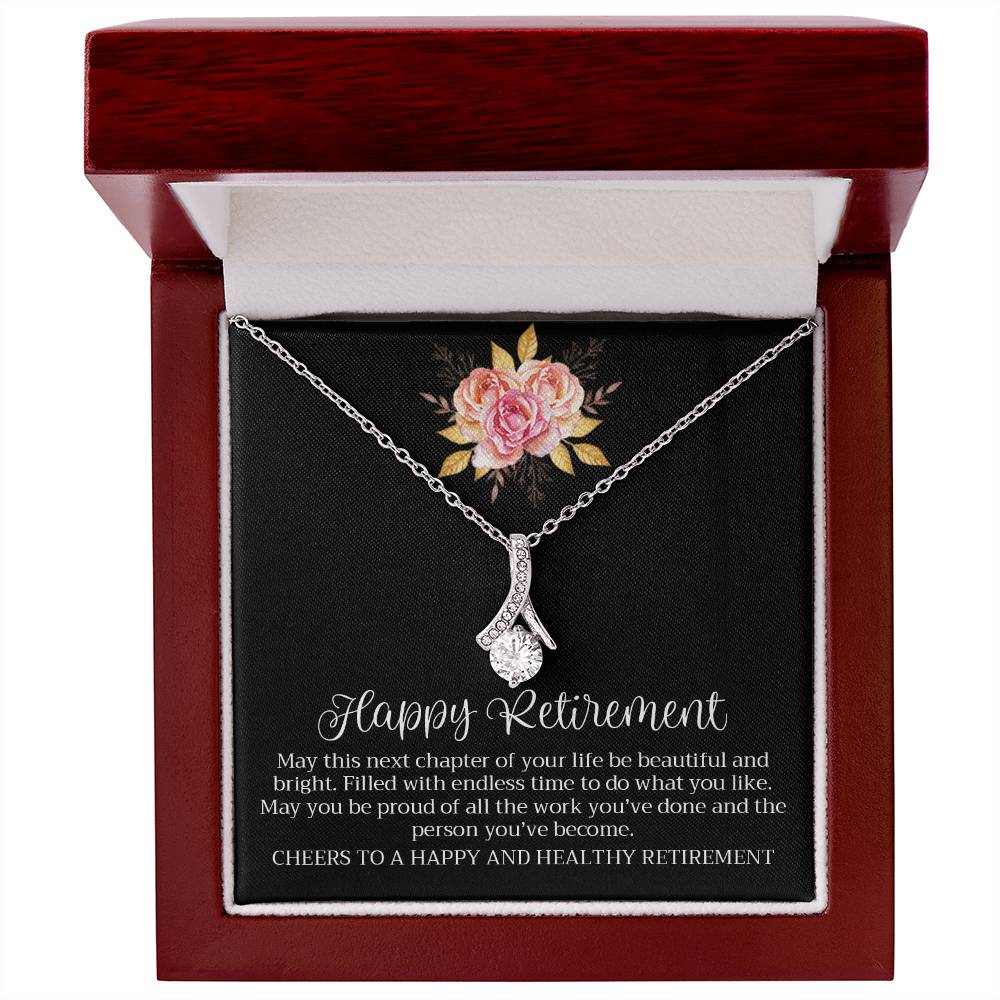 Happy Retirement Beautiful Chapter Necklace Elegant Pink Rose Card 18K Yellow Gold Finish Alluring Beauty Jewelry Gift for Her