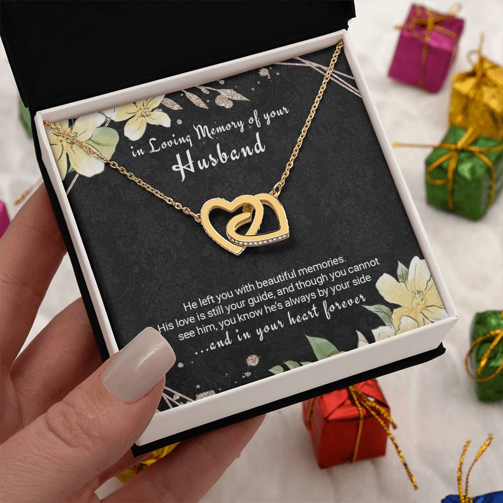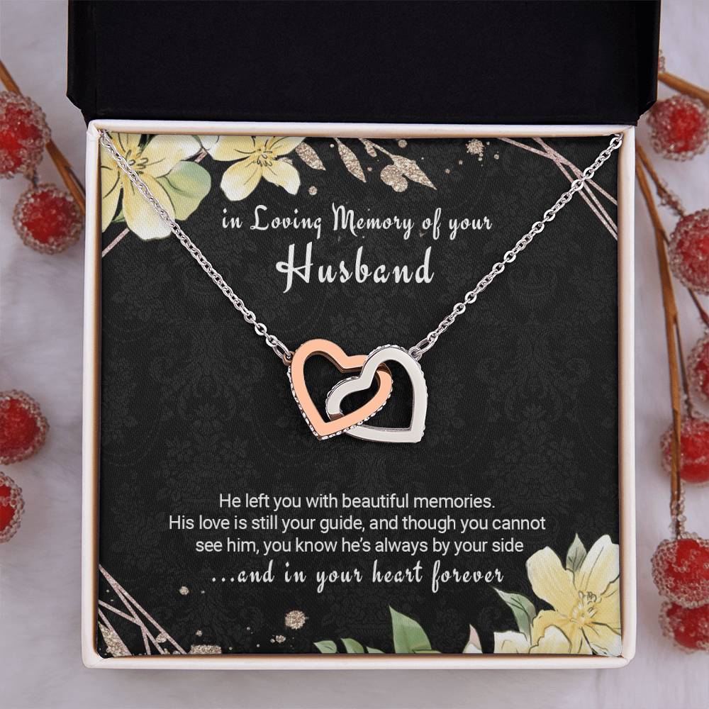 He Left You With Beautiful Memories 18K Rose Gold Interlocking Hearts Necklace Jewelry Sympathy Memorial Gift for Loss of Husband