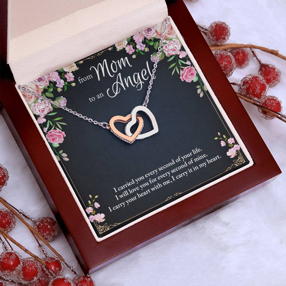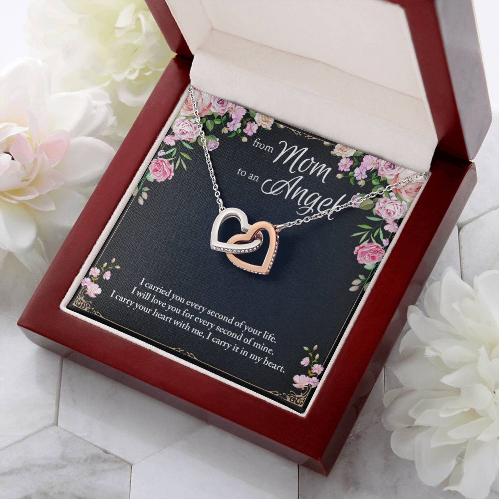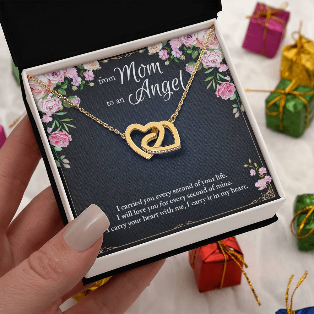 I Carried You Every Second Of Your Life 18K Rose Gold Interlocking Hearts Necklace Jewelry – Beautiful Memorial Gift for Daughter from Mom