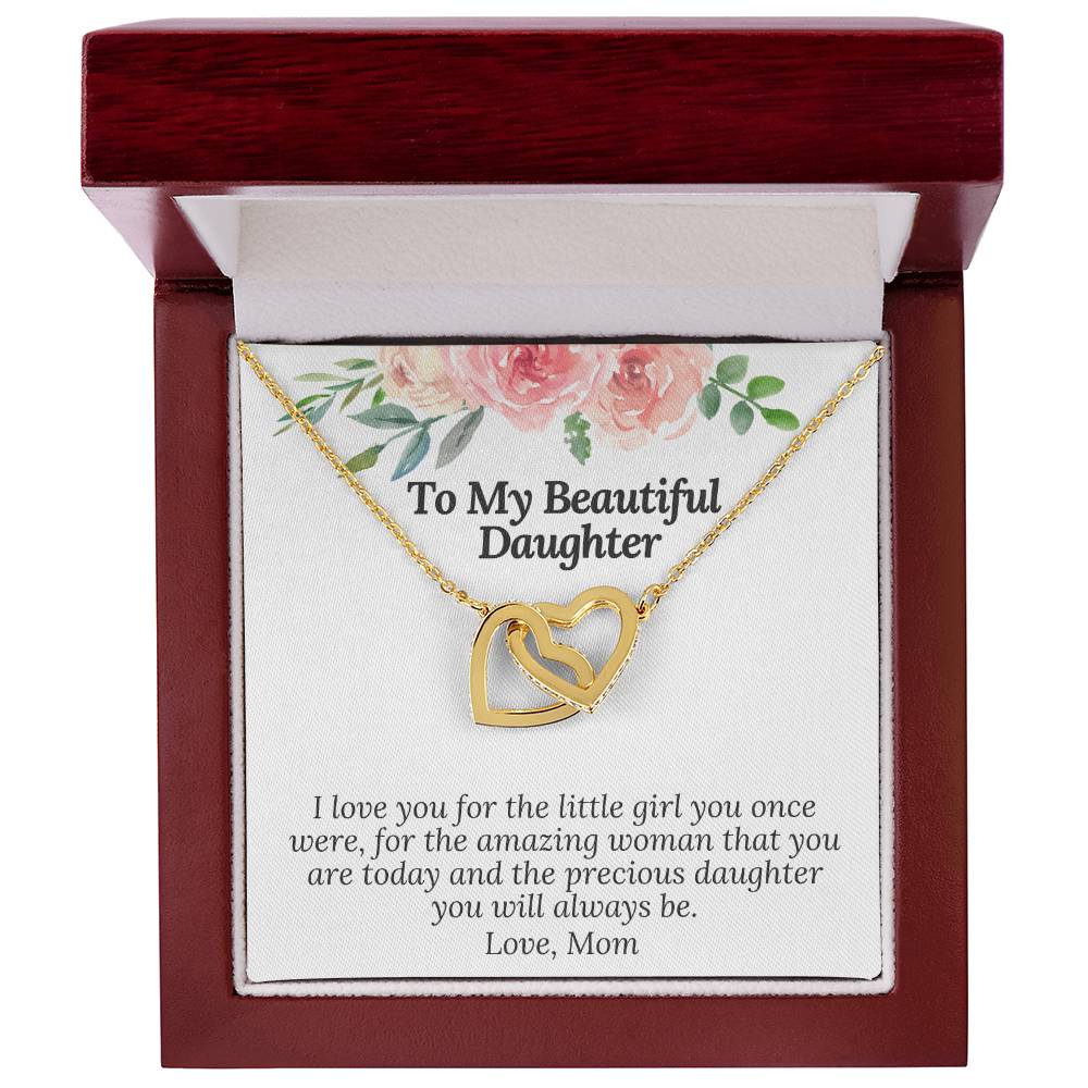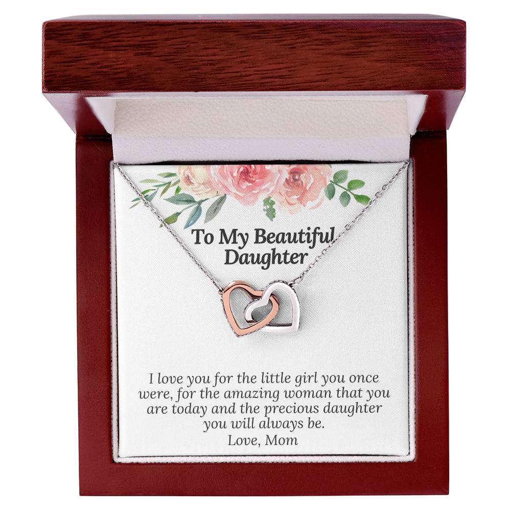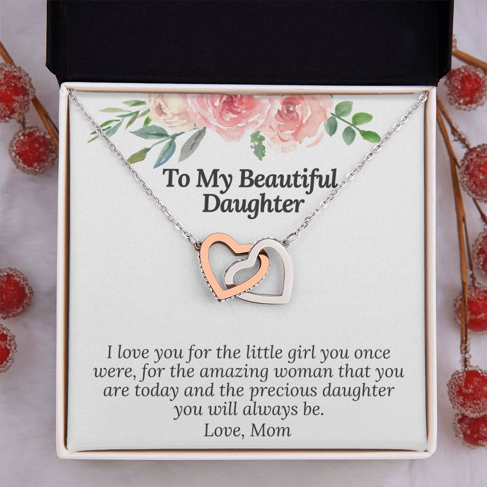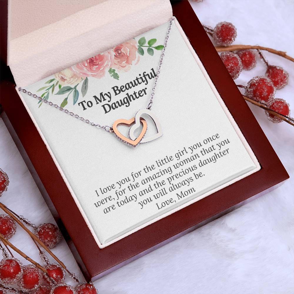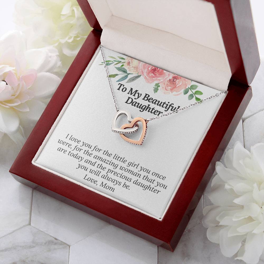 I Love You For The Little Girl You Once Were 18K Rose Gold Interlocking Hearts Necklace Jewelry Beautiful Gift for Daughter Birthday from Mom