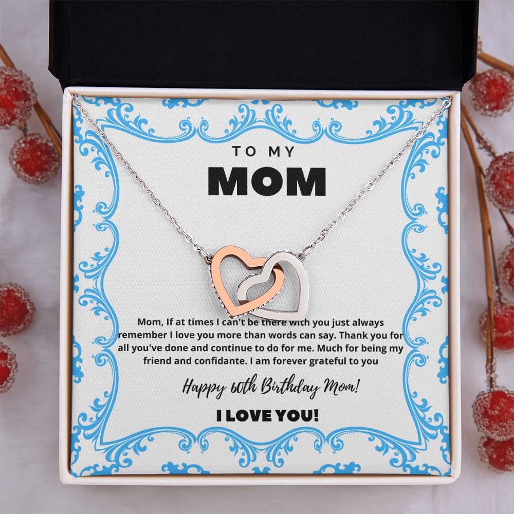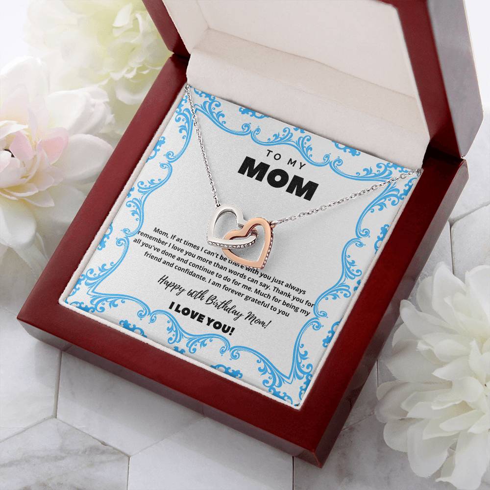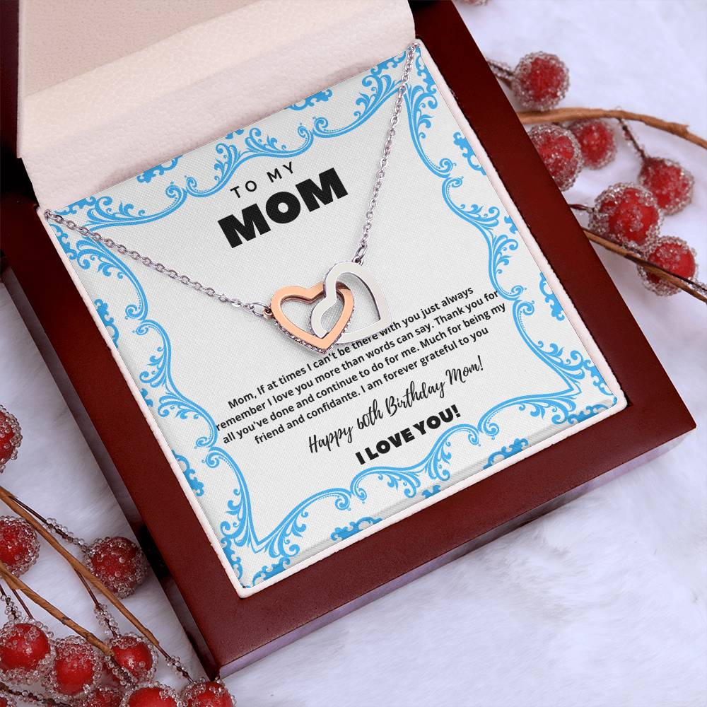 I Love You More Than Words Can Say 18K Rose Gold Interlocking Hearts Necklace Jewelry – Beautiful 60th Birthday Gift for Mom