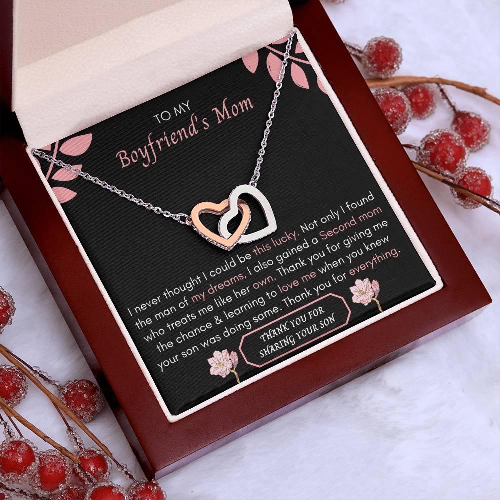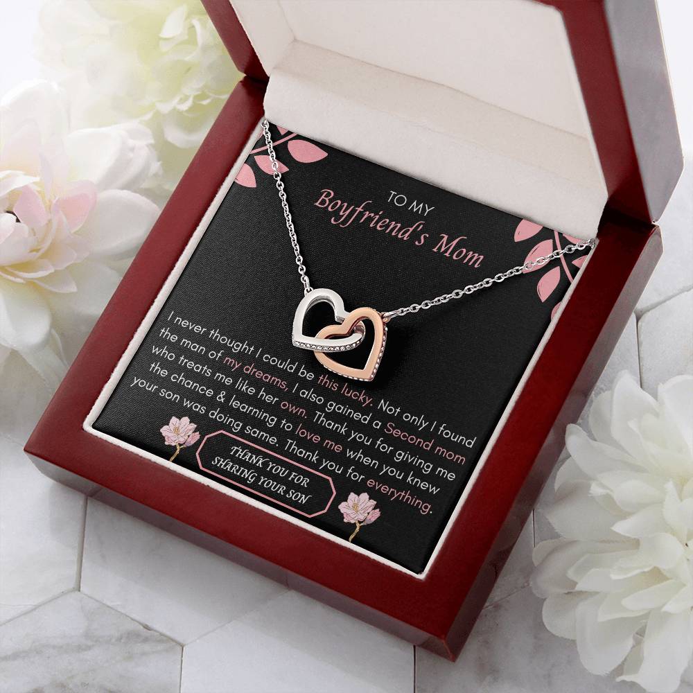 I Never Thought I Could Be This Lucky 18K Rose Gold Interlocking Hearts Necklace Jewelry Special Gift for Boyfriend’s Mom Birthday