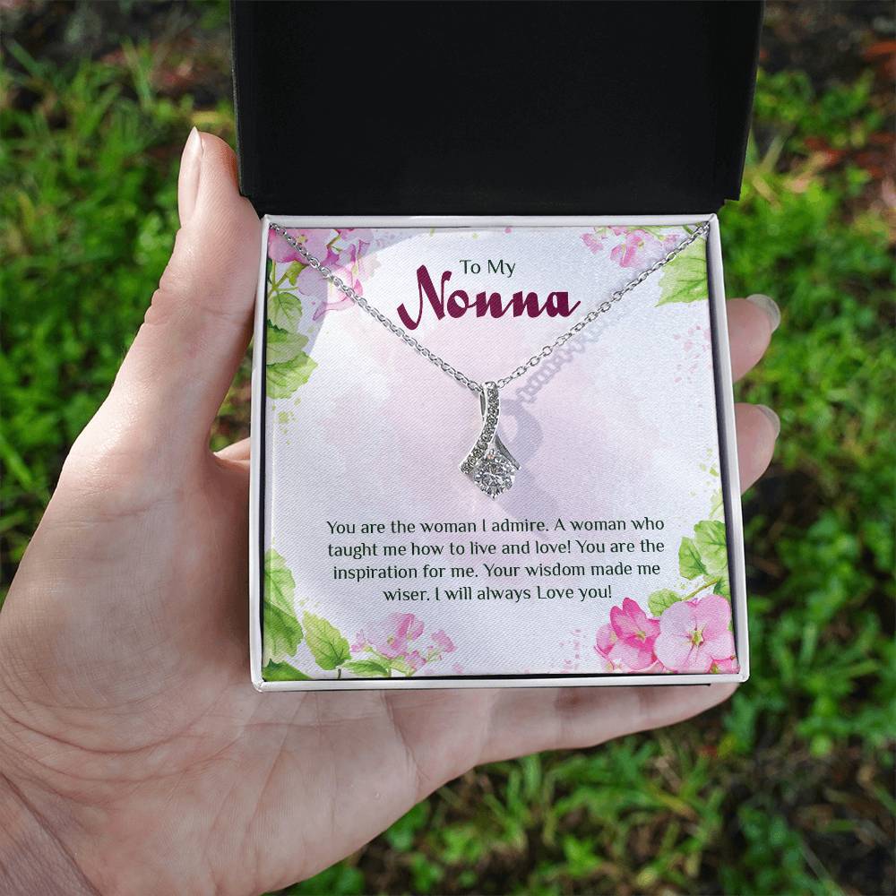 Inspiration & Wisdom To My Nonna Necklace 18K Yellow Gold Finish Alluring Beauty Jewelry Floral Watercolor Card Heartfelt Gift