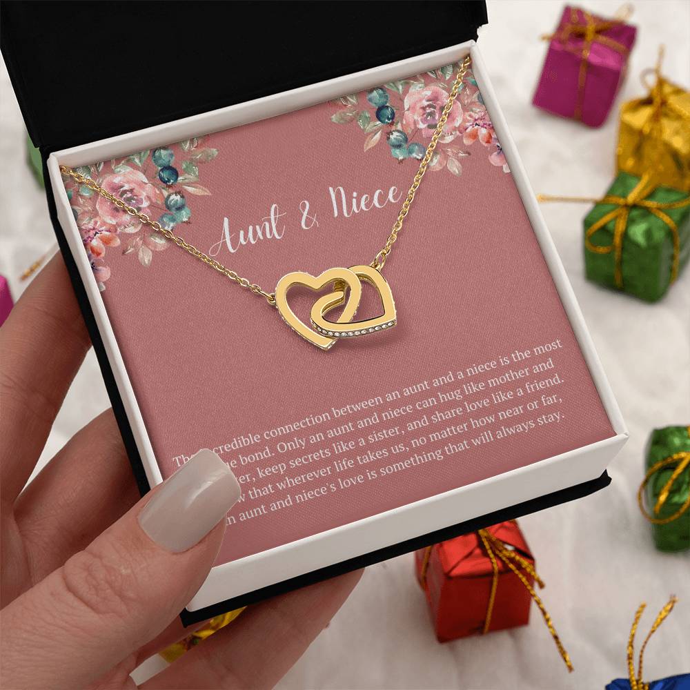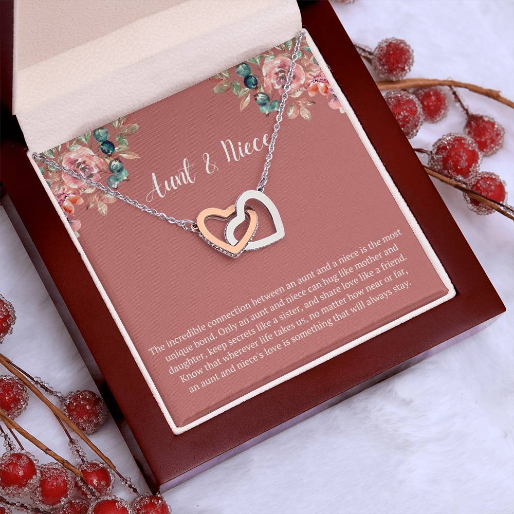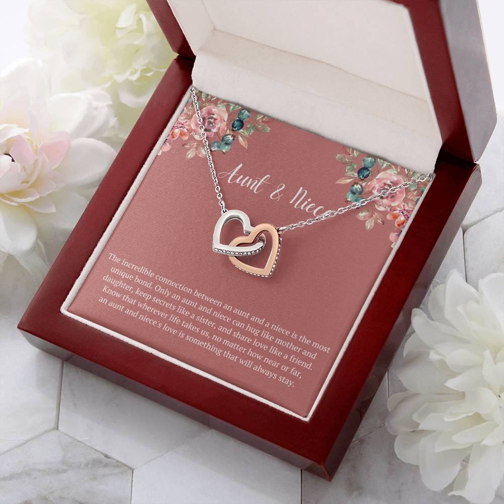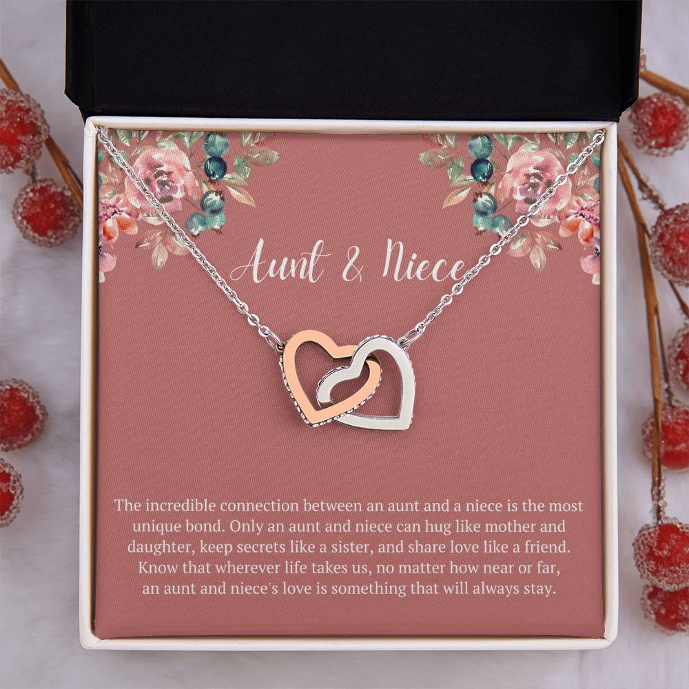 Keep Secrets Like A Sister 18K Rose Gold Interlocking Hearts Necklace Jewelry Beautiful Gift for Aunt and Niece Birthday