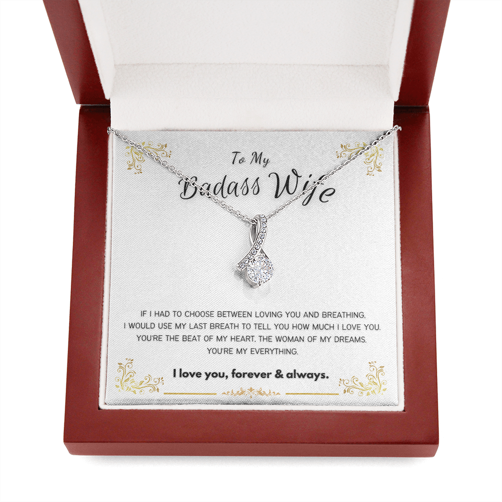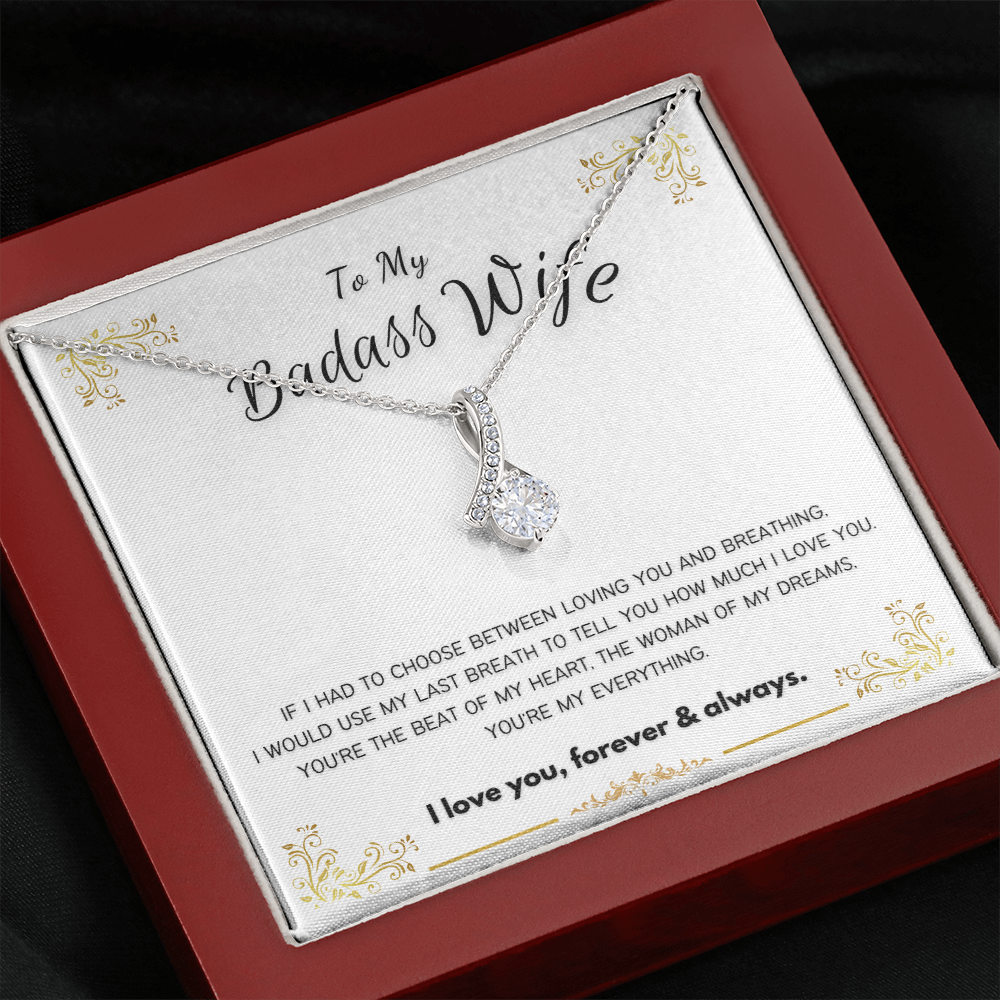 This beautiful sparkly pendant is truly is an alluring gift for yourself or a loved one. The ribbon design is embellished with dainty cubic zirconia, leading your eye down to the 7mm round cut Cubic Zirconia. Crafted with 14k White Gold over Stainless Steel, this necklace dresses up any occasion. The adjustable oblate cable chain allows the necklace to be worn at 18" to 22" in length. Product Dimensions: Height: 0.8" (20mm) x Width: 0.4" (10mm) 7mm cubic zirconia 18"-22" adjustable oblate cable chain with lobster clasp.