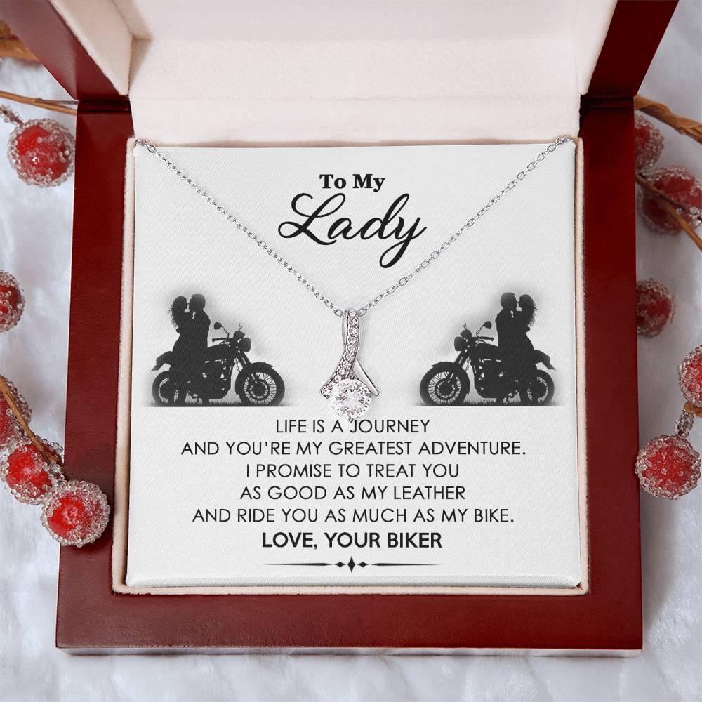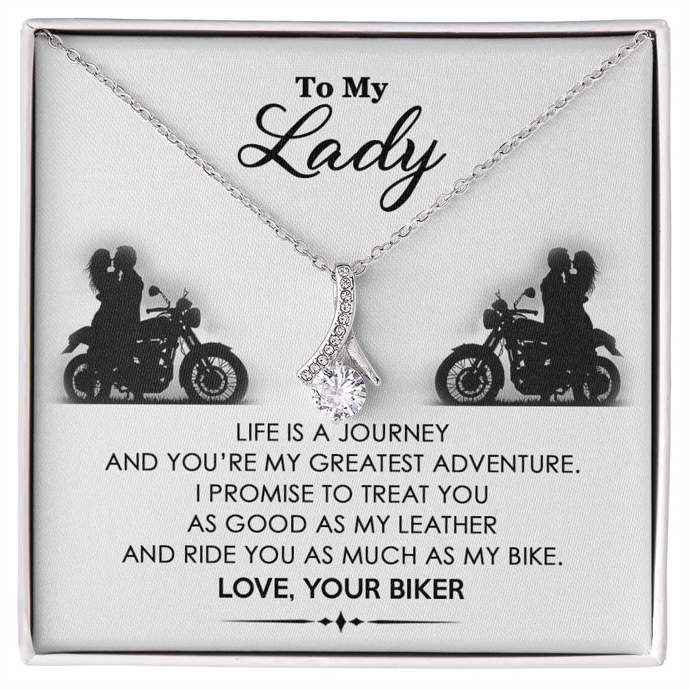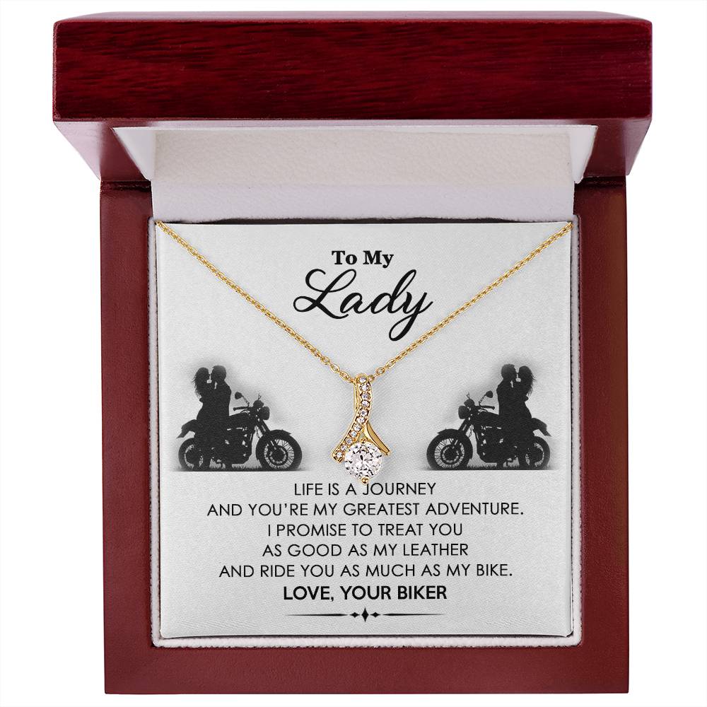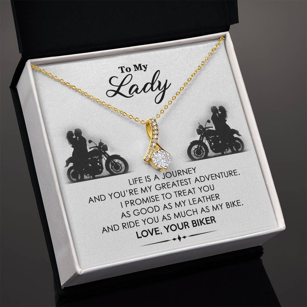 Lady Life Journey Greatest Adventure Biker Love 18K Yellow Gold Finish Alluring Beauty Necklace Jewelry Perfect Gift for Biker Wife Anniversary