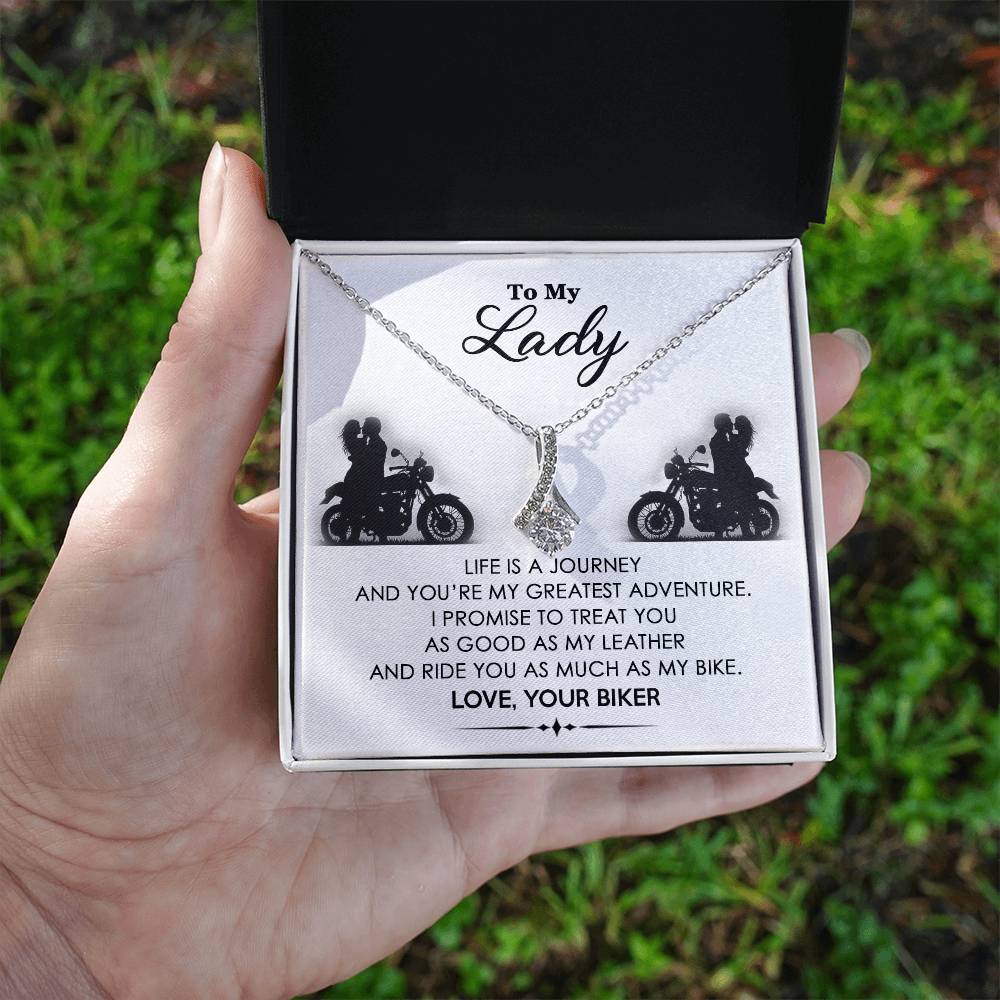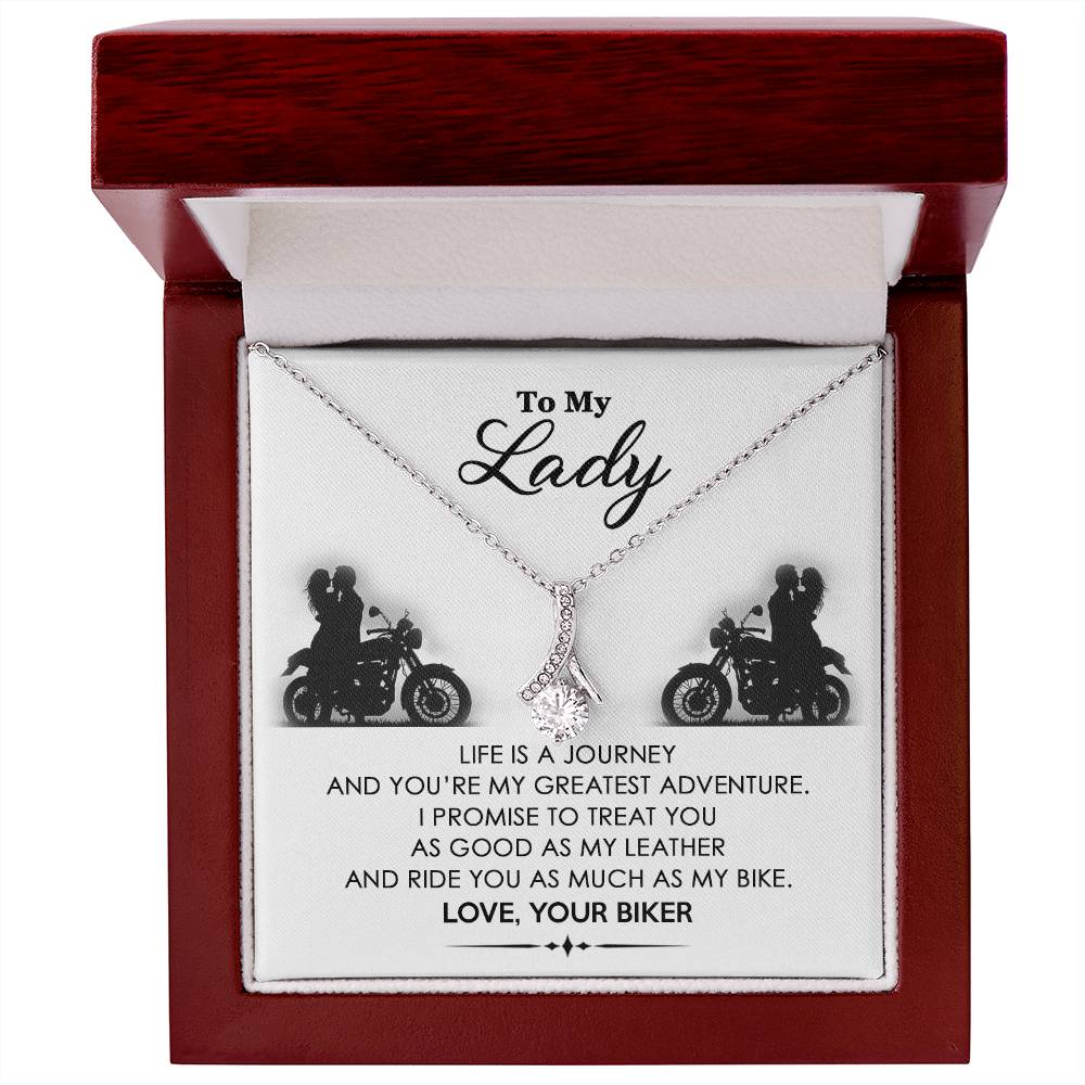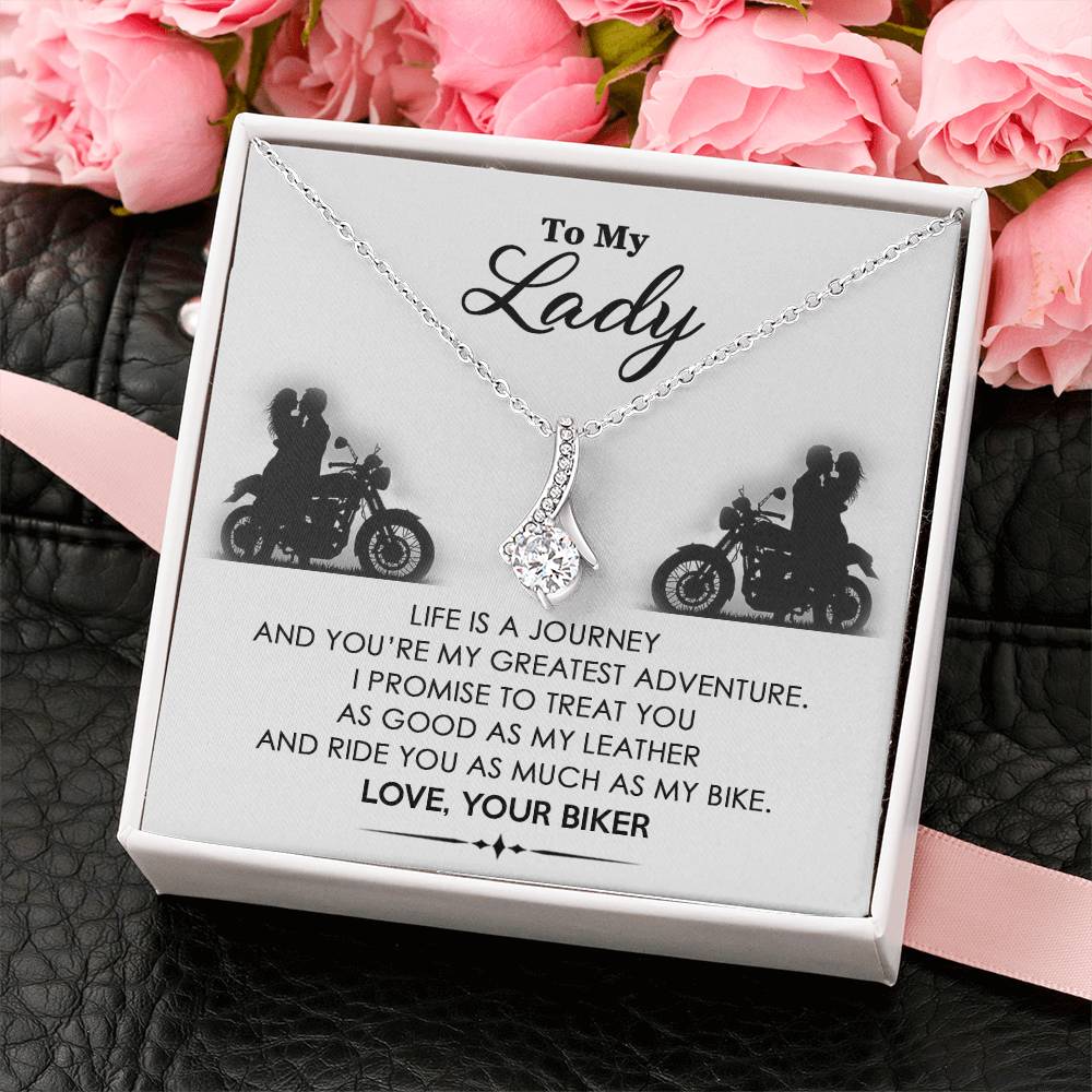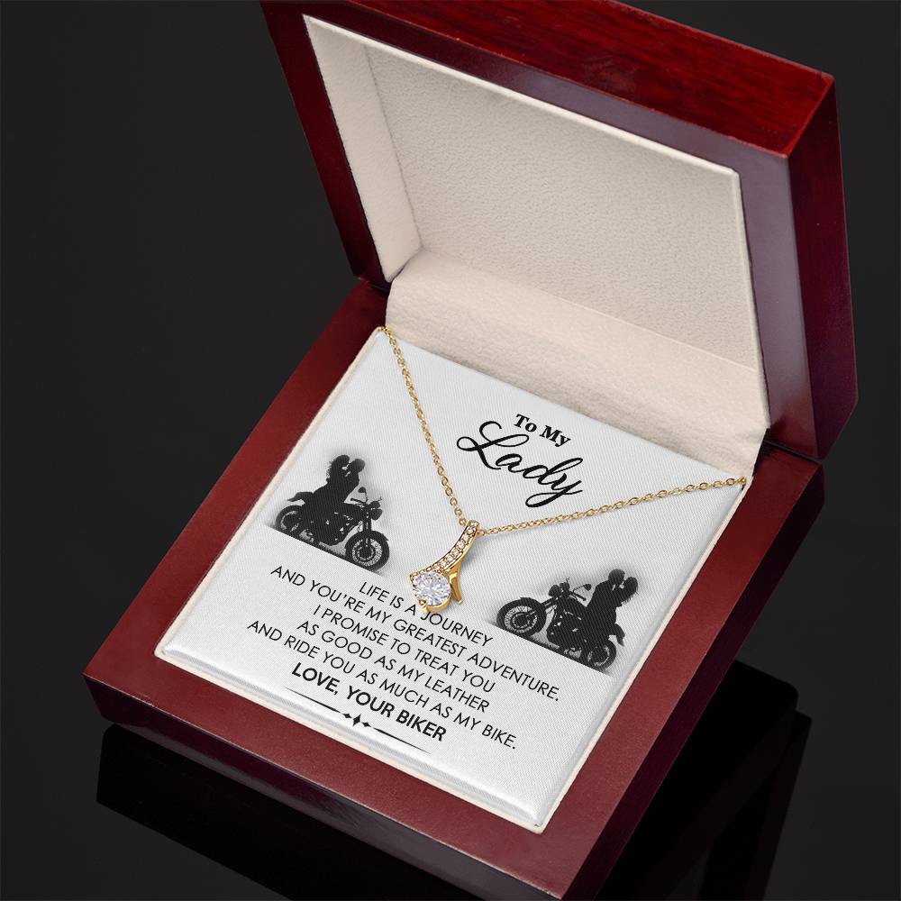Lady Life Journey Greatest Adventure Biker Love 18K Yellow Gold Finish Alluring Beauty Necklace Jewelry Perfect Gift for Biker Wife Anniversary