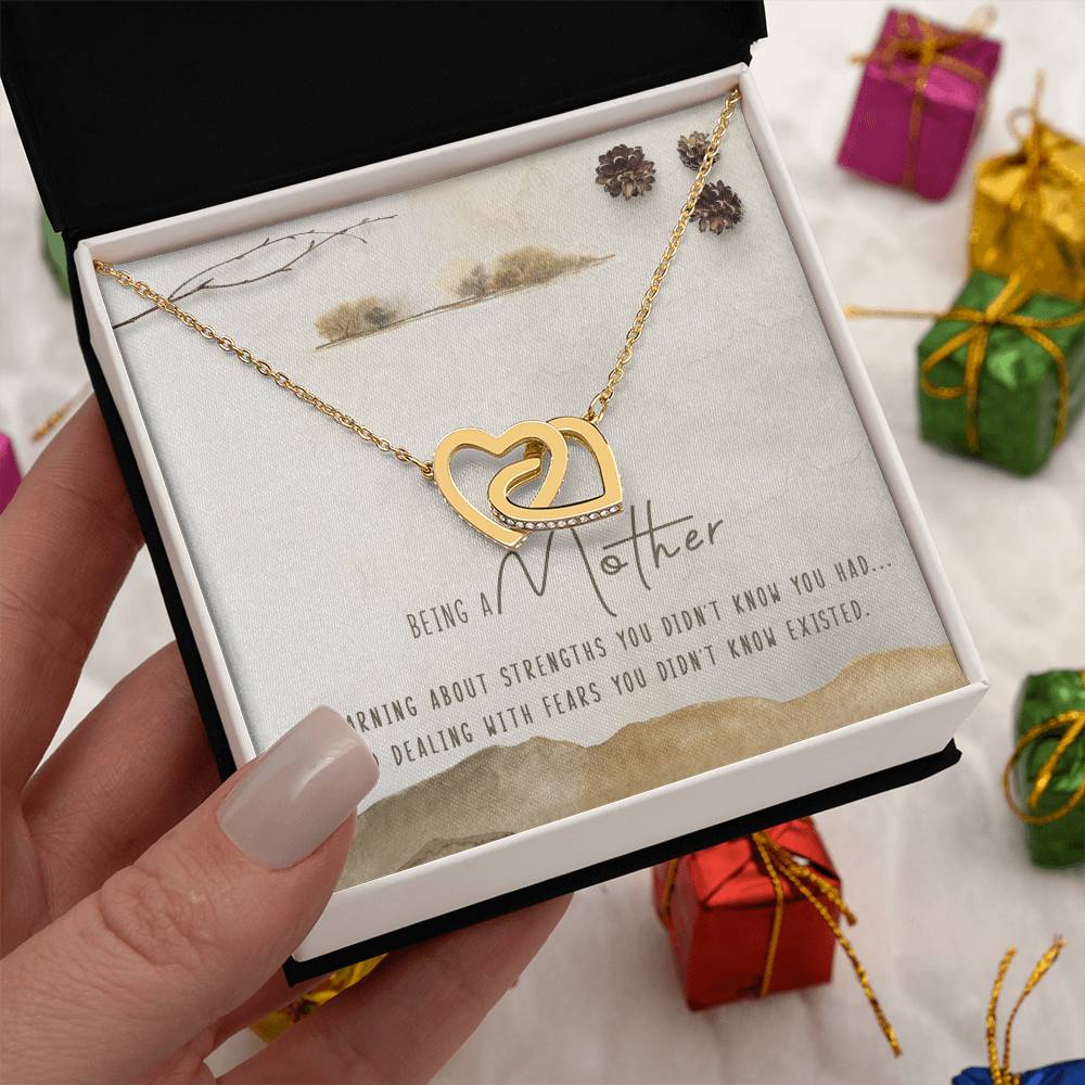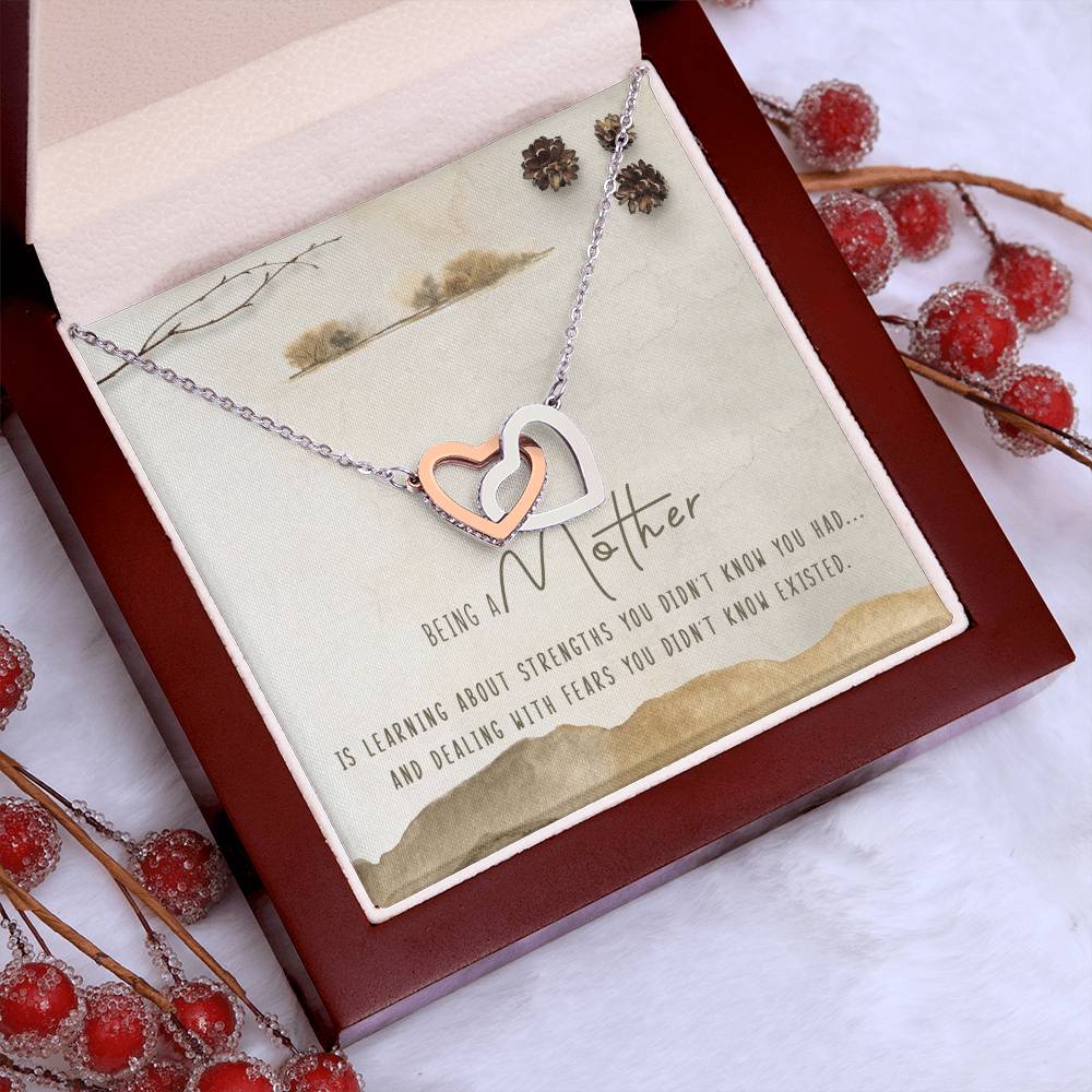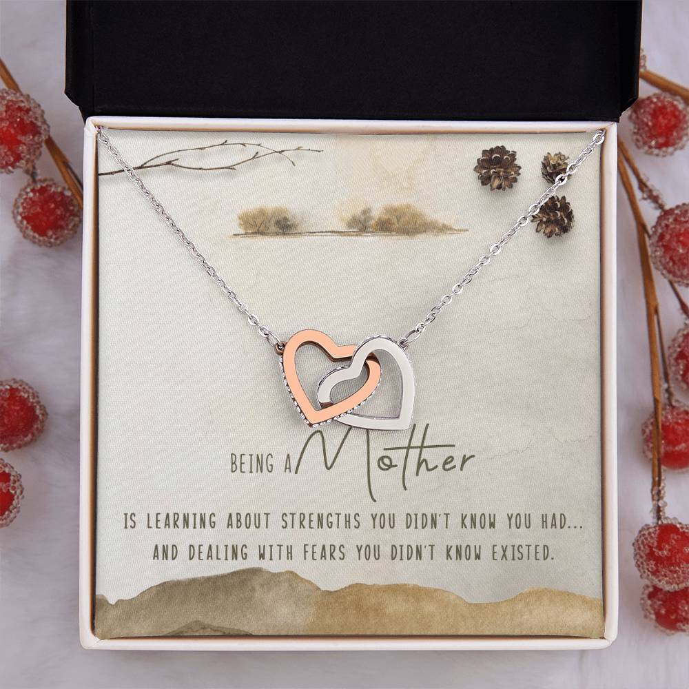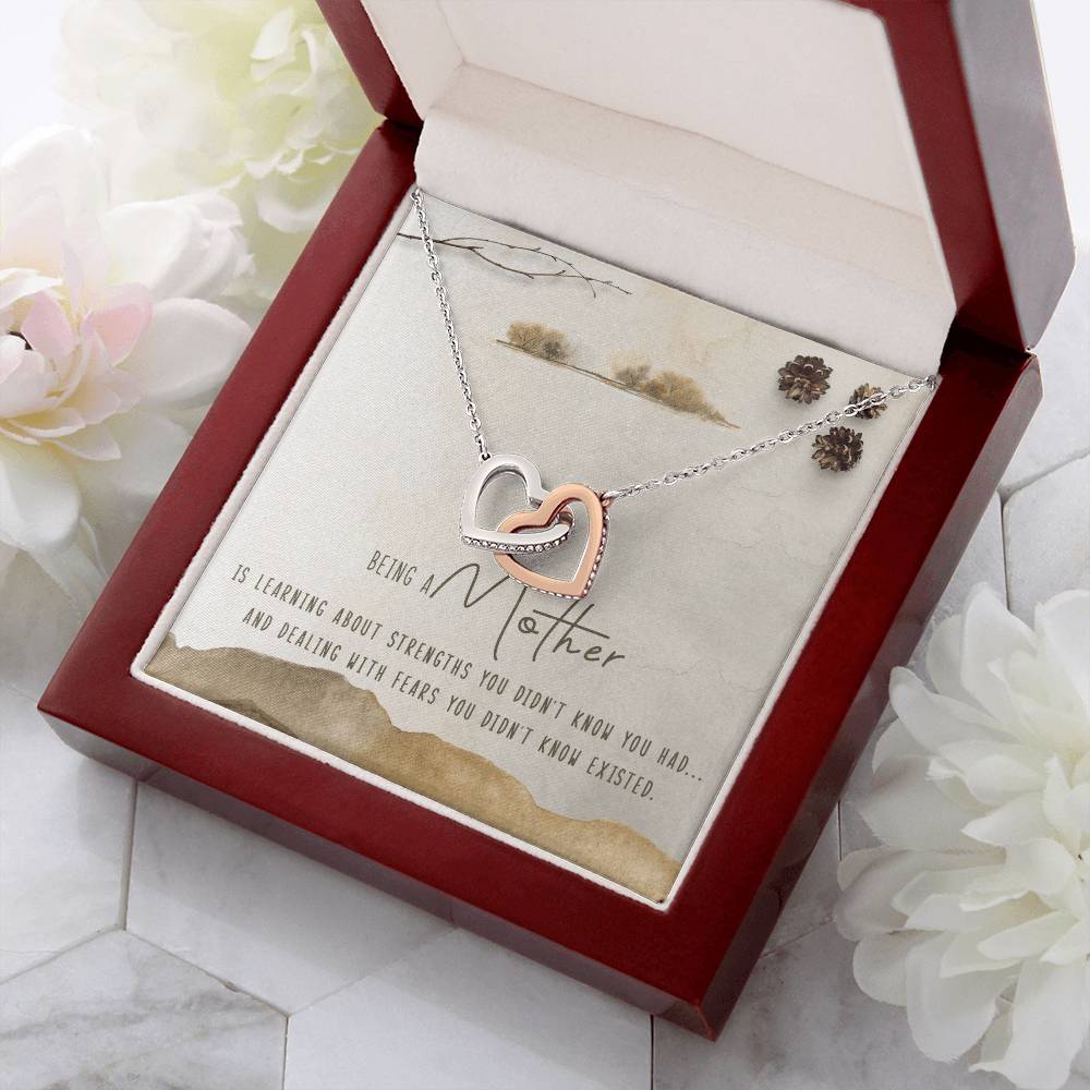 Learning About Strengths And Dealing With Fears 18K Rose Gold Interlocking Hearts Necklace Jewelry Beautiful Gift for Mom Birthday