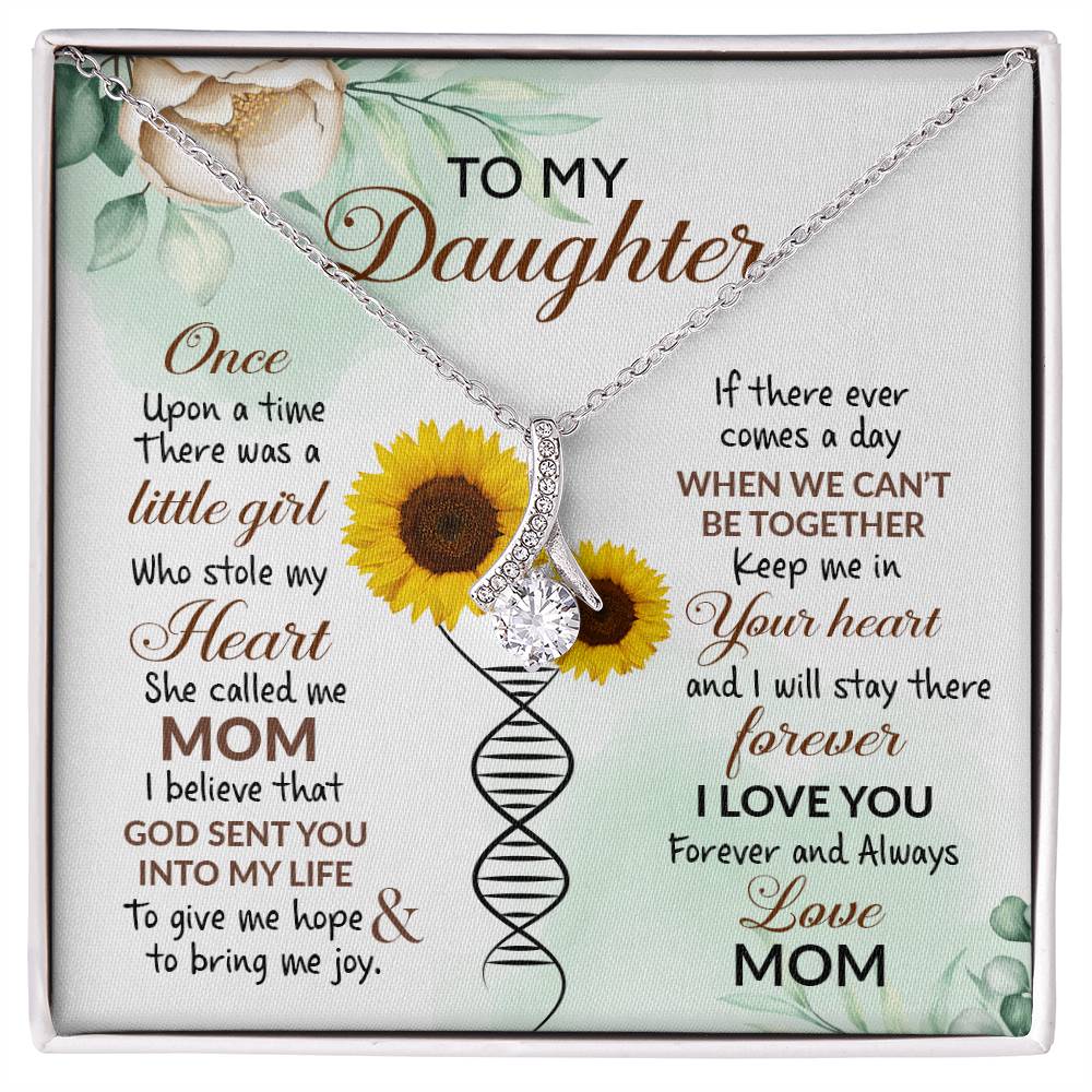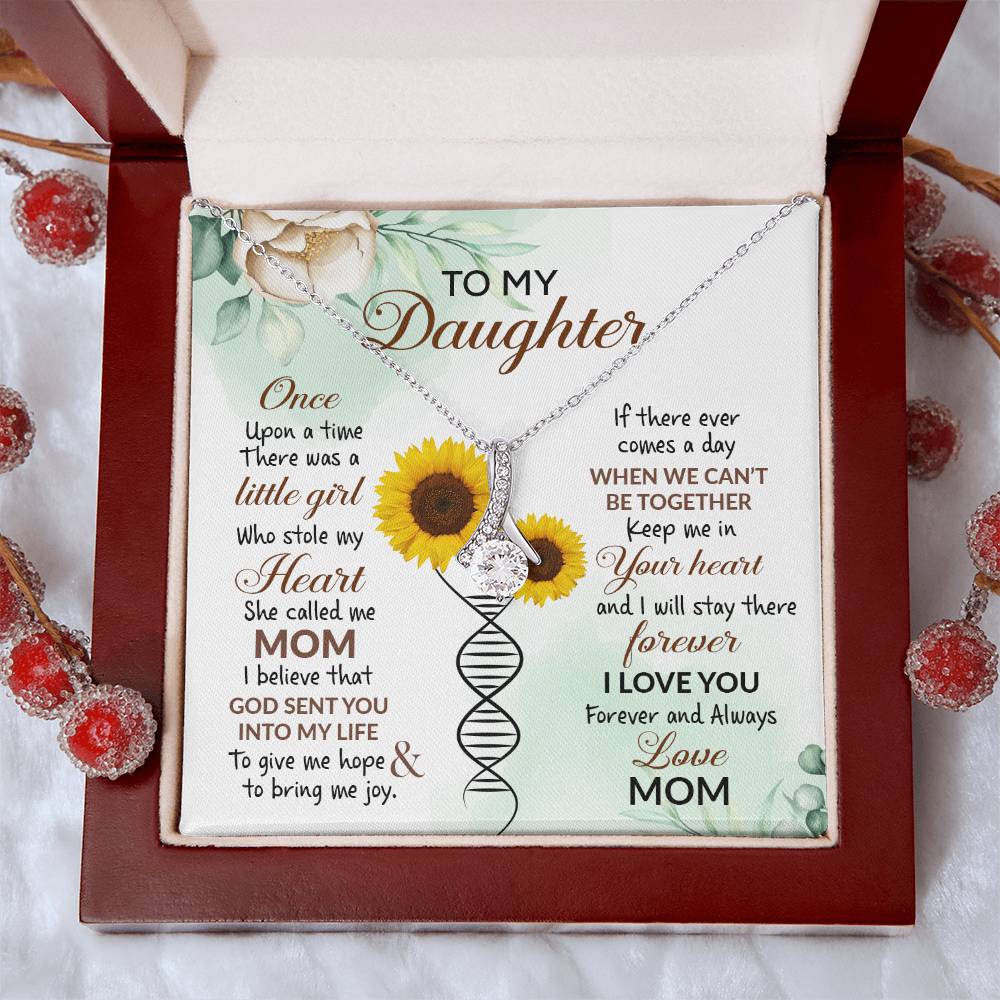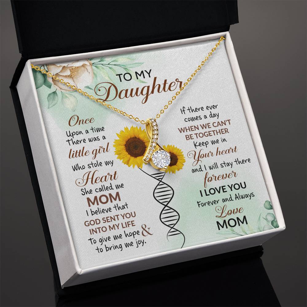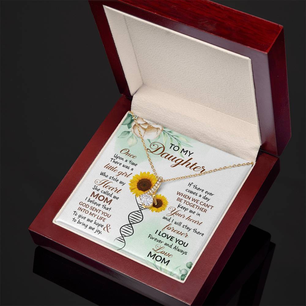 Little Girl Stole My Heart Daughter Gift 18K Yellow Gold Finish Alluring Beauty Necklace Jewelry Heartfelt Present from Mom with Sunflower DNA Card