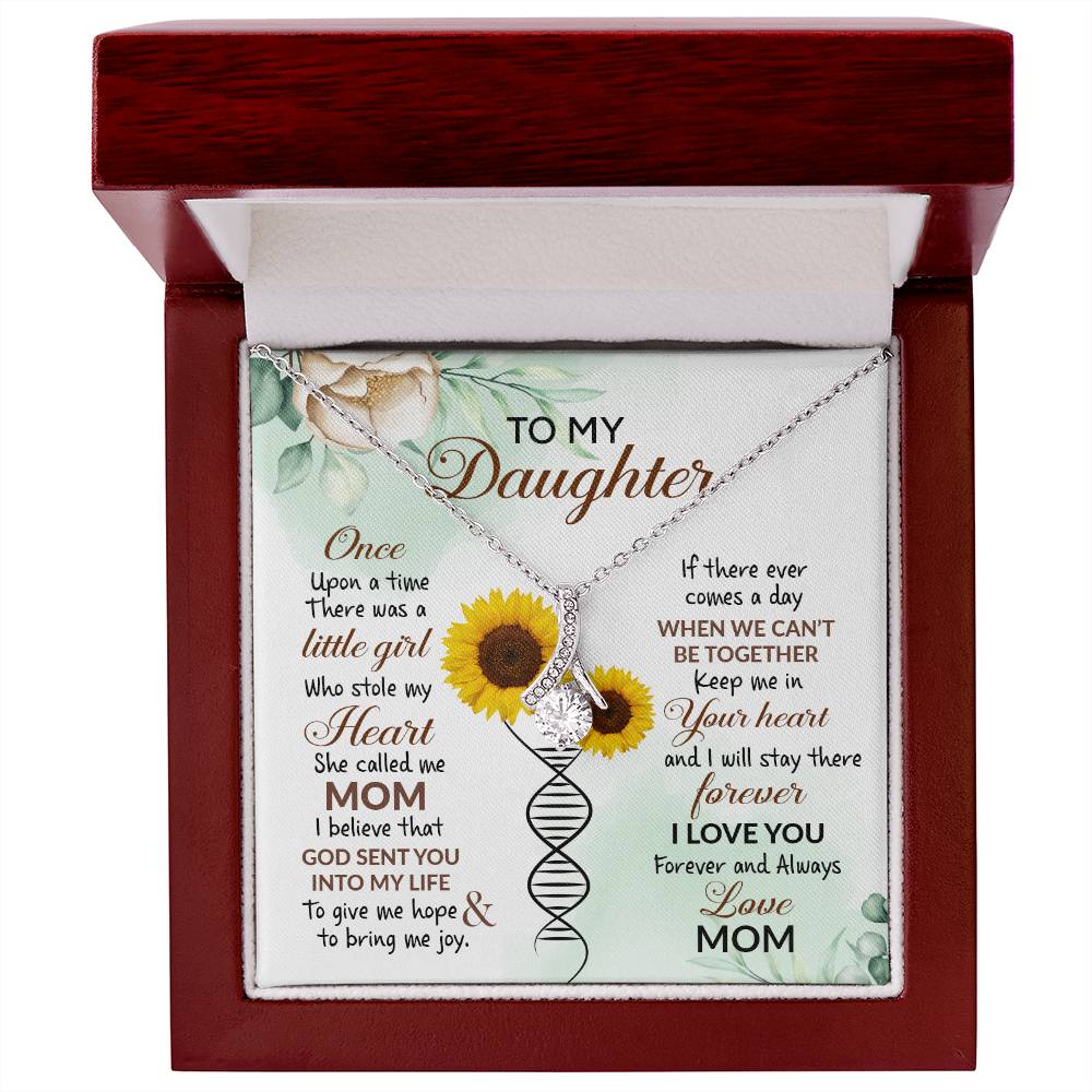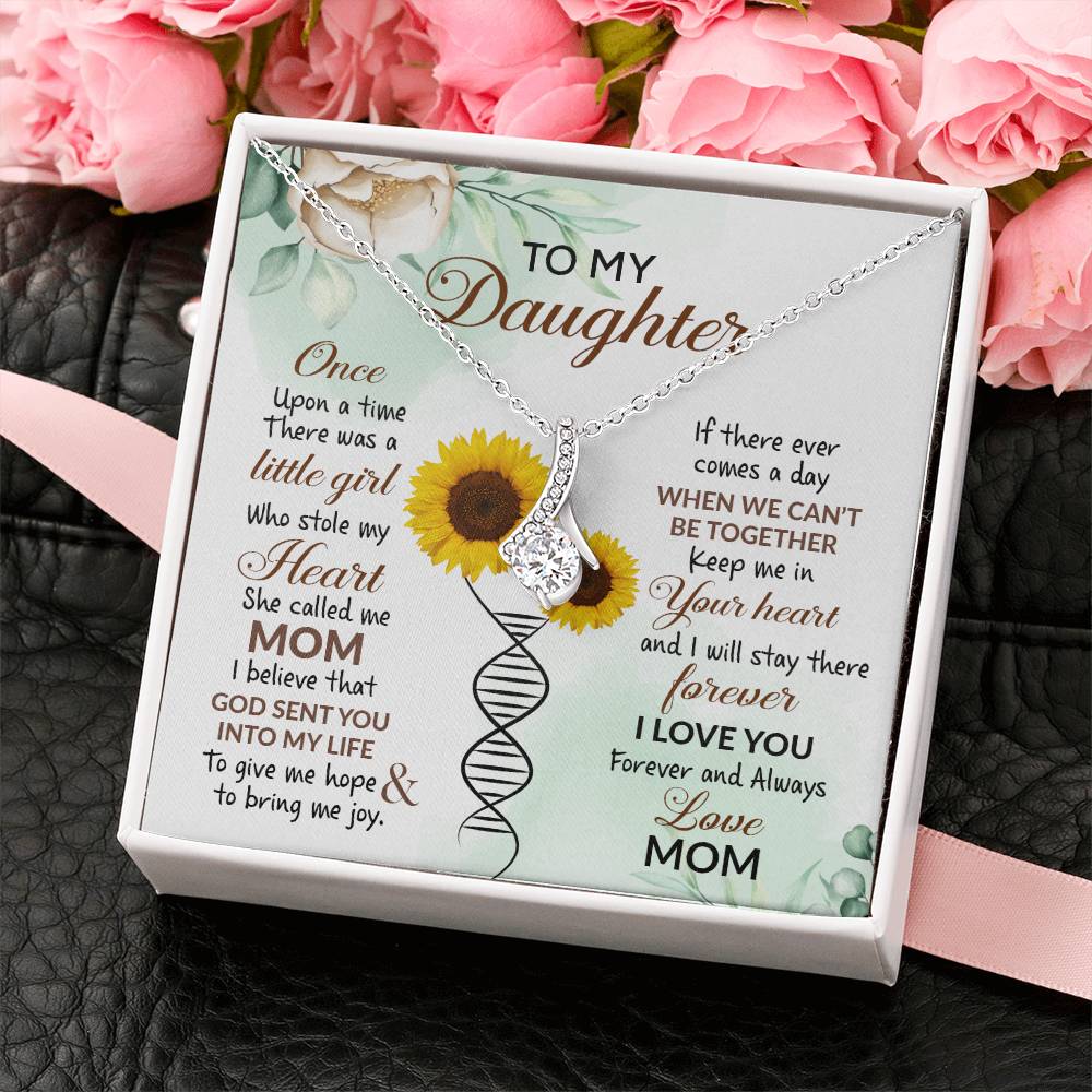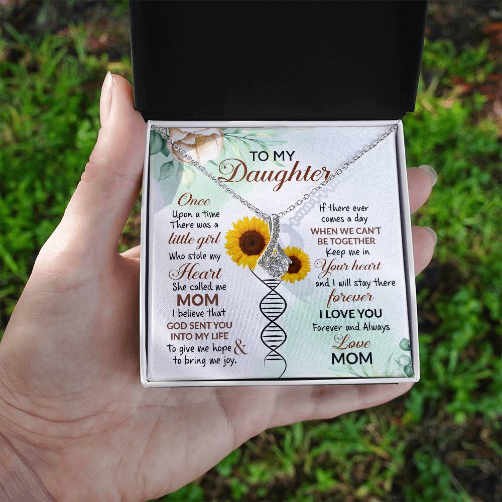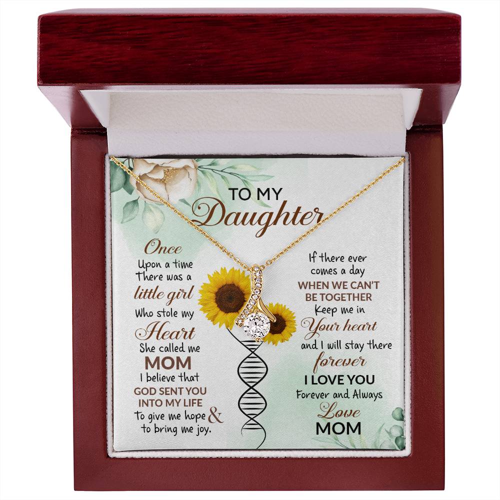 Little Girl Stole My Heart Daughter Gift 18K Yellow Gold Finish Alluring Beauty Necklace Jewelry Heartfelt Present from Mom with Sunflower DNA Card