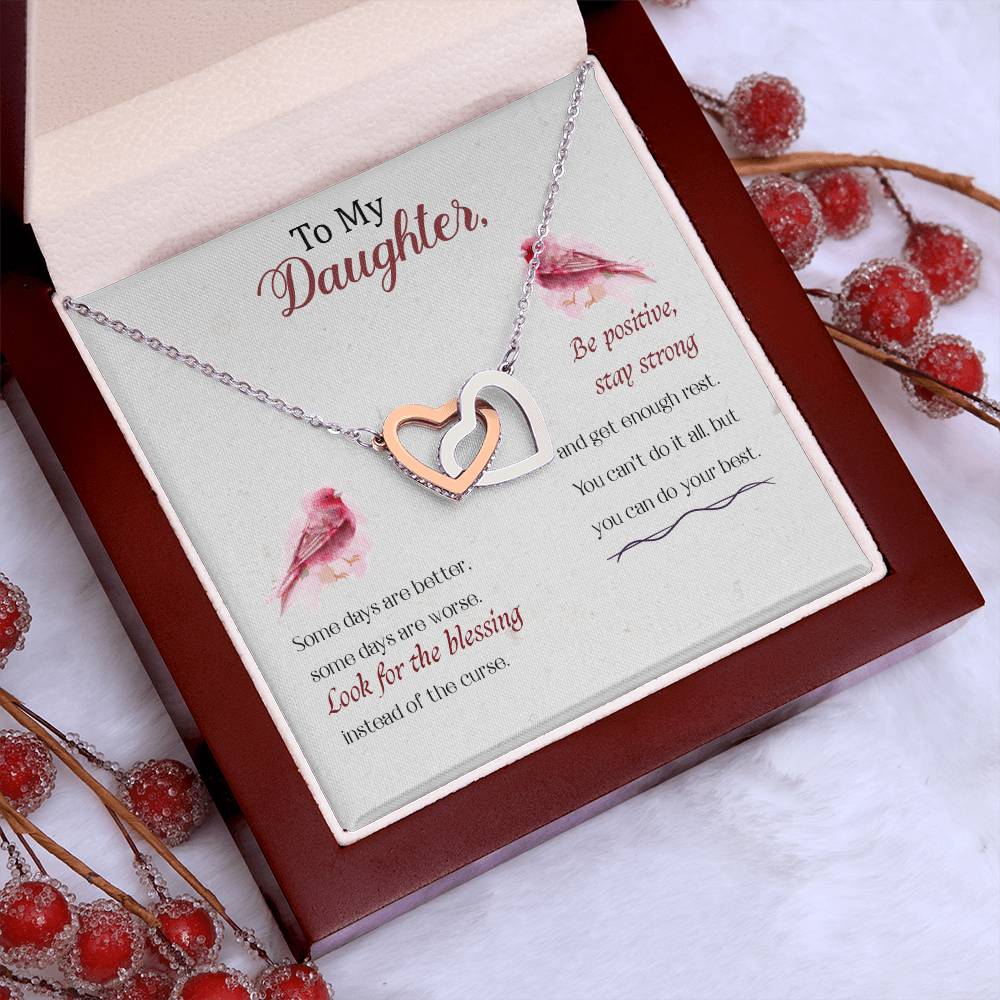 Look For The Blessing Instead Of The Curse 18K Rose Gold Interlocking Hearts Necklace Jewelry Encouragement Gift for Daughter Birthday