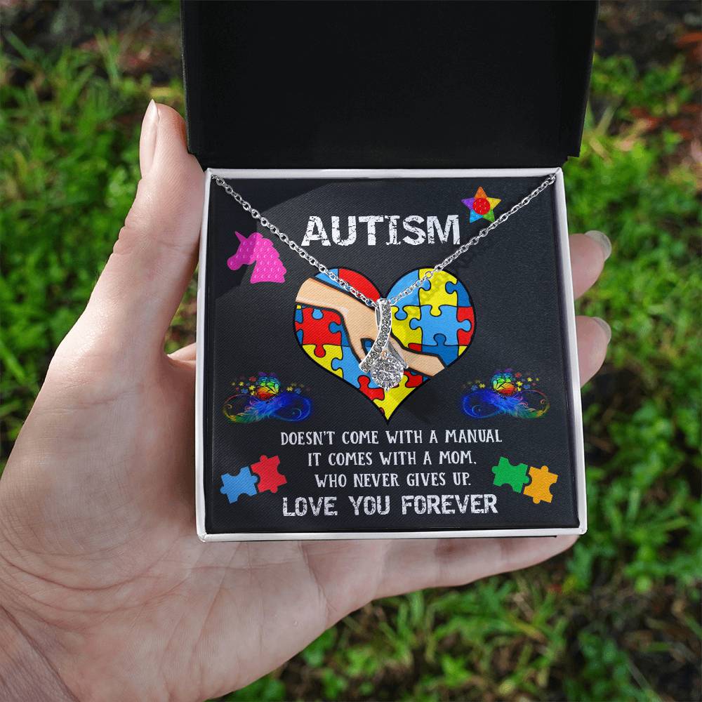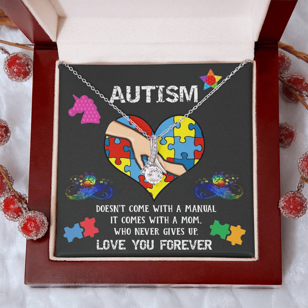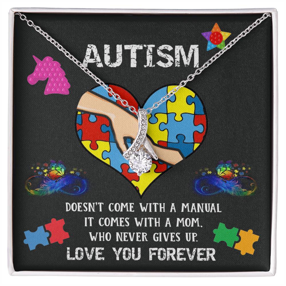 Love You Forever Autism Mommy 14K White Gold Finish Alluring Beauty Necklace Jewelry Heartfelt Gift for Mom Special Day