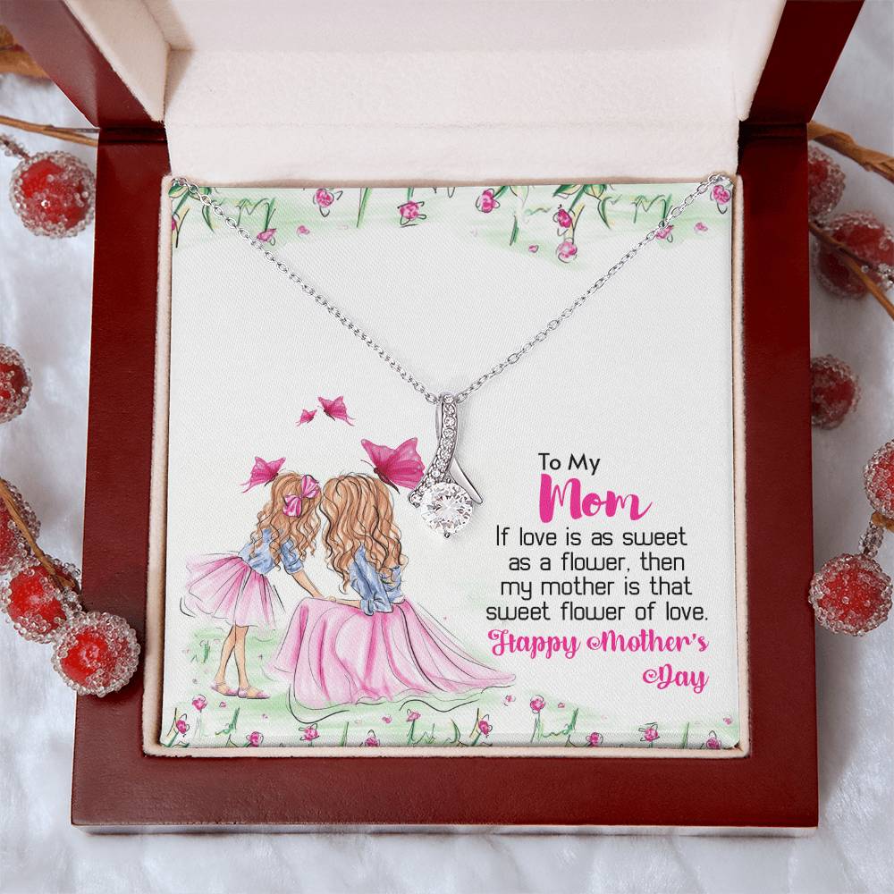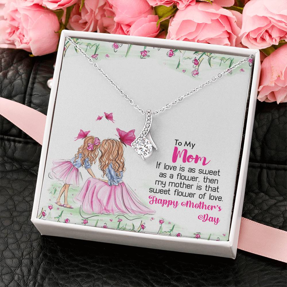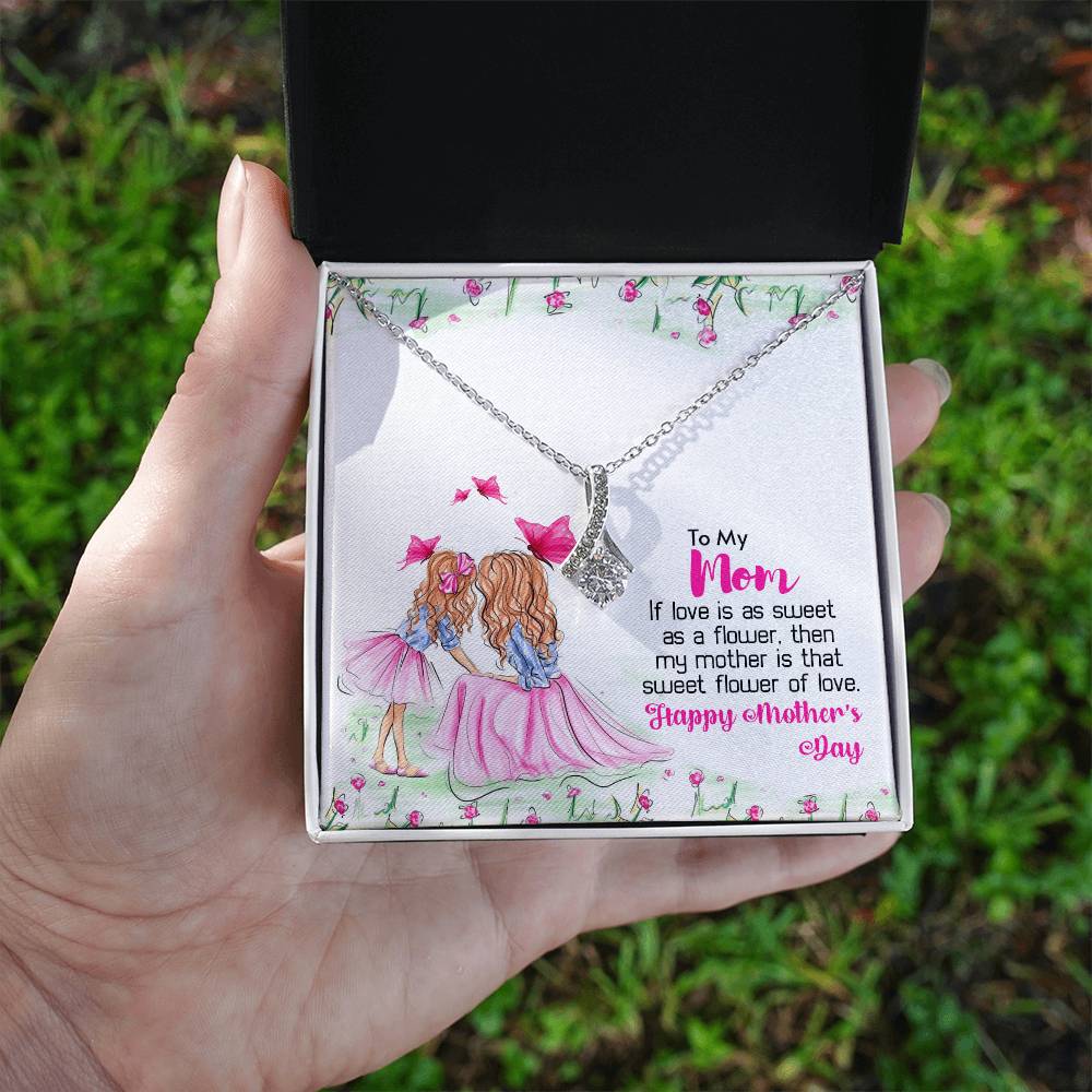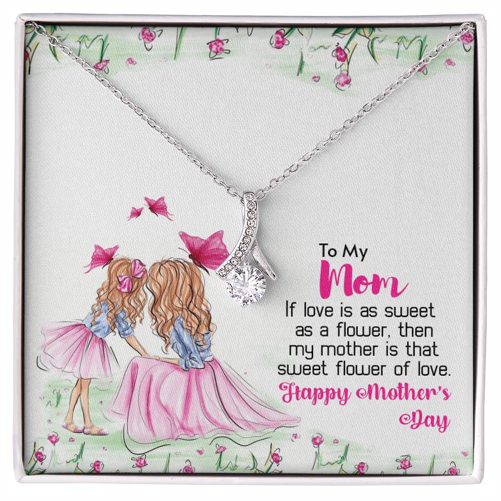 Mom Sweet Flower Of Love Always 14K White Gold Finish Alluring Beauty Necklace Jewelry Perfect Gift for Beautiful Mom