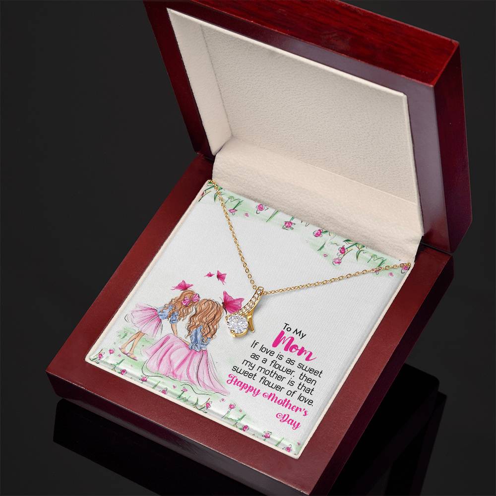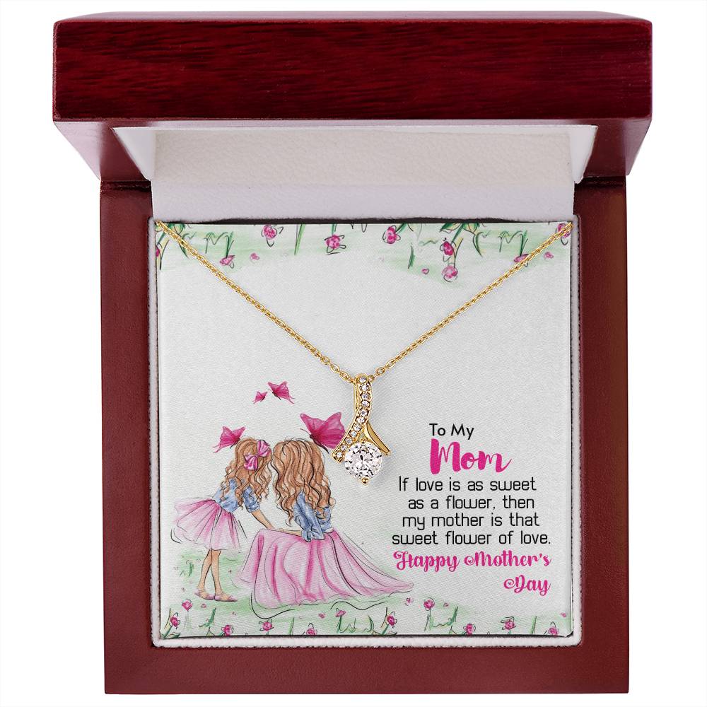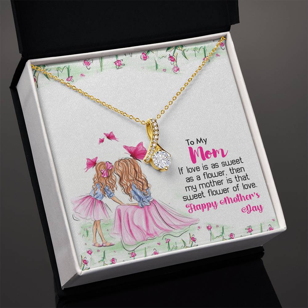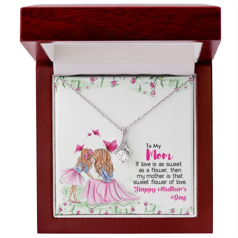 Mom Sweet Flower Of Love Always 14K White Gold Finish Alluring Beauty Necklace Jewelry Perfect Gift for Beautiful Mom