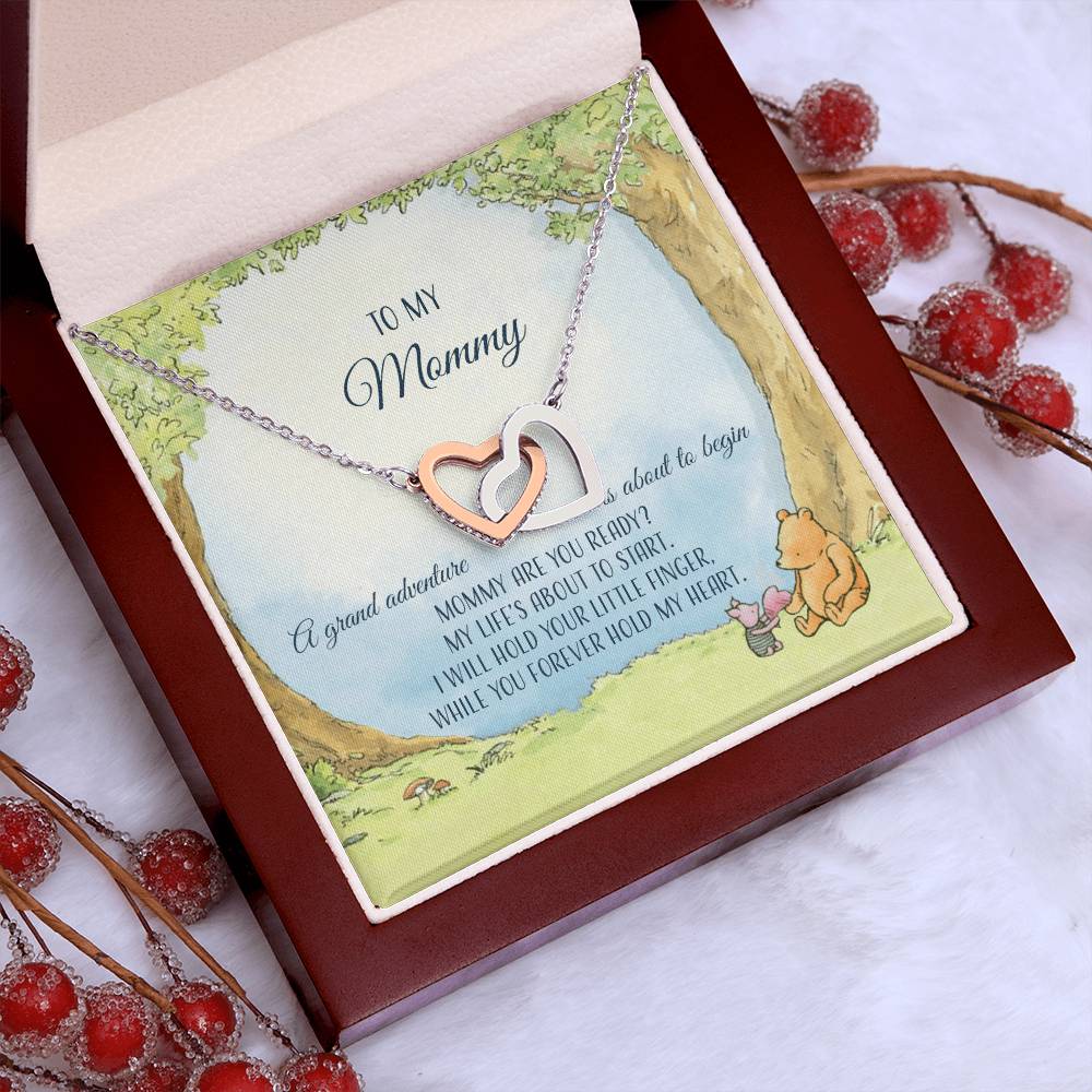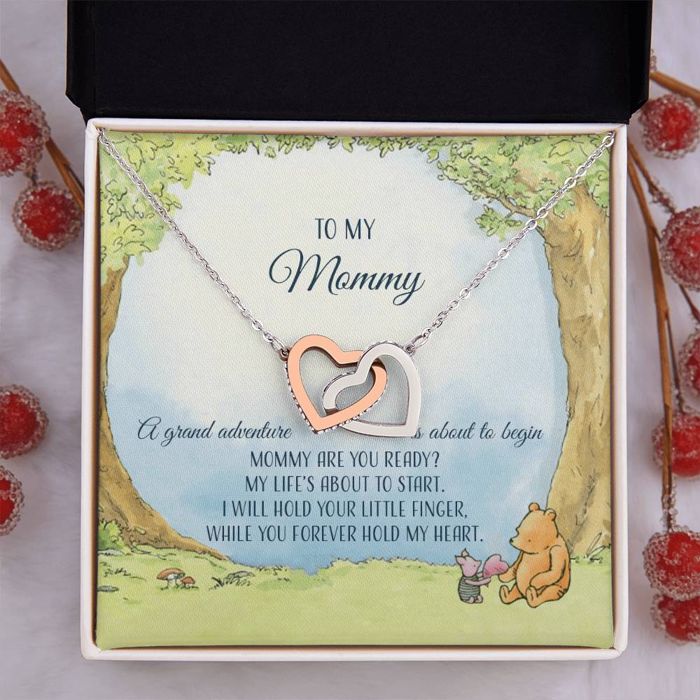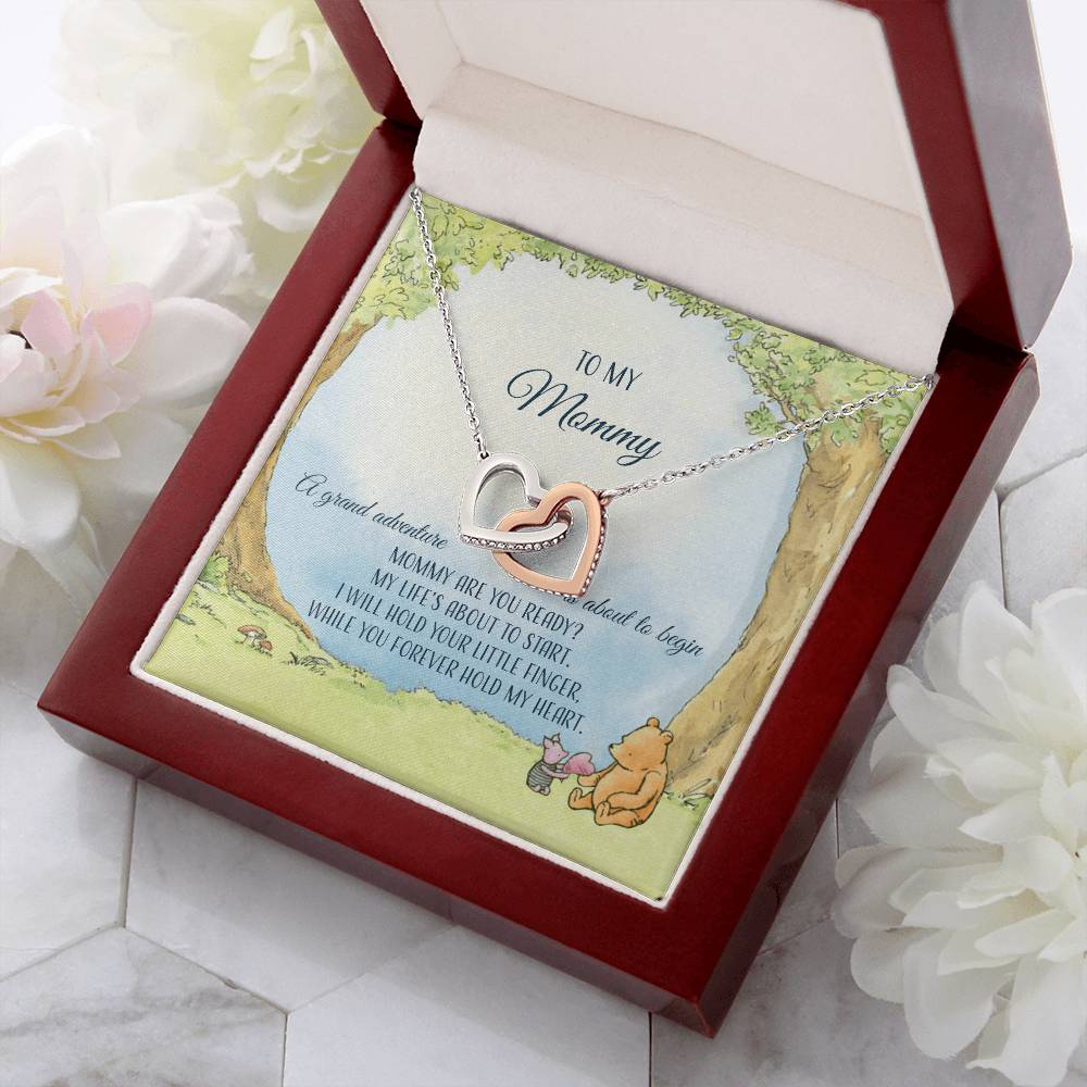 Mommy Are You Ready My Life’s About To Start 18K Rose Gold Interlocking Hearts Necklace Jewelry – Beautiful New Mom Gift from Your Little One